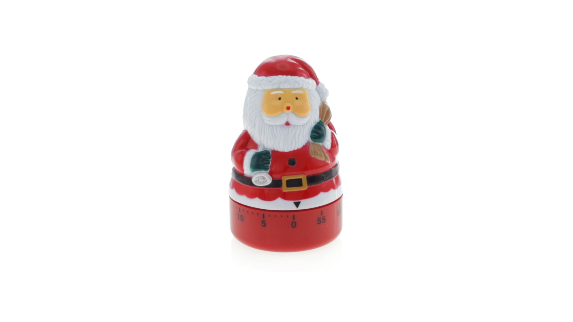 Analoger Timer mit originellem Weihnachtsmann-Design. Timing von bis zu 60 Minuten. Präsentiert in einer attraktiven Designbox.