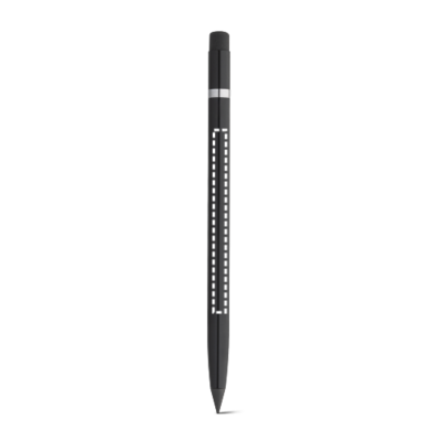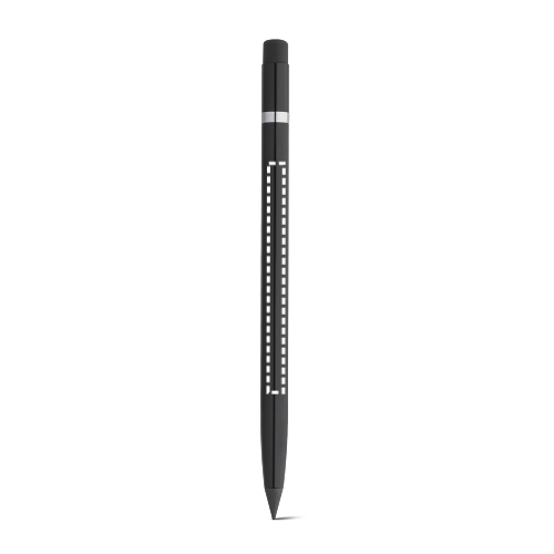 Tintenfreier Stift mit recycelt Aluminiumgehäuse (100% rAL) und PE-Kappe mit einer graphit Spitze. Geeignet für den Langzeitgebrauch, ohne dass er nachgespitzt werden muss. In der Spitze befindet sich ein Radiergummi, mit dem sich das Geschriebene leicht ausradieren lässt. ø8 x 150 mm