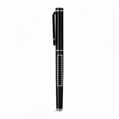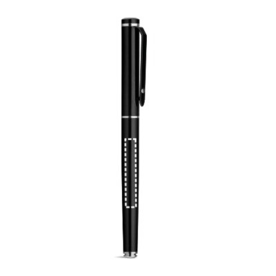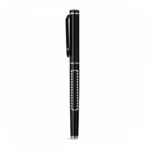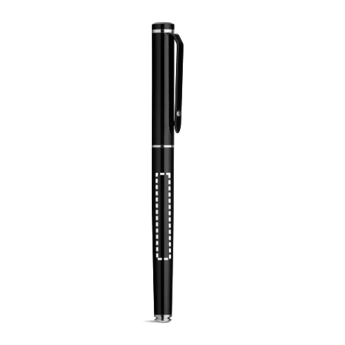Rollerball aus Metall mit Clip und glänzendem Detail an der Spitze. Blauschreibende Mine. Geliefert in einem Geschenketui.Kugelschreiber Kugelschreiber: ø10 x 136 mm | Schachtel: 182 x 22 x 42 mm
