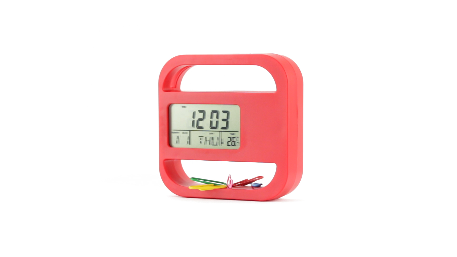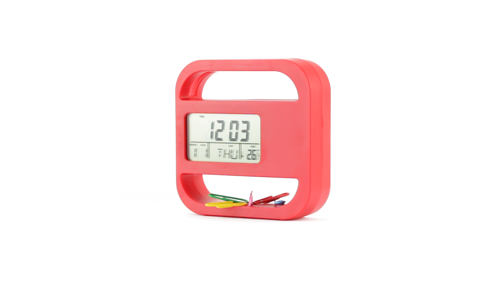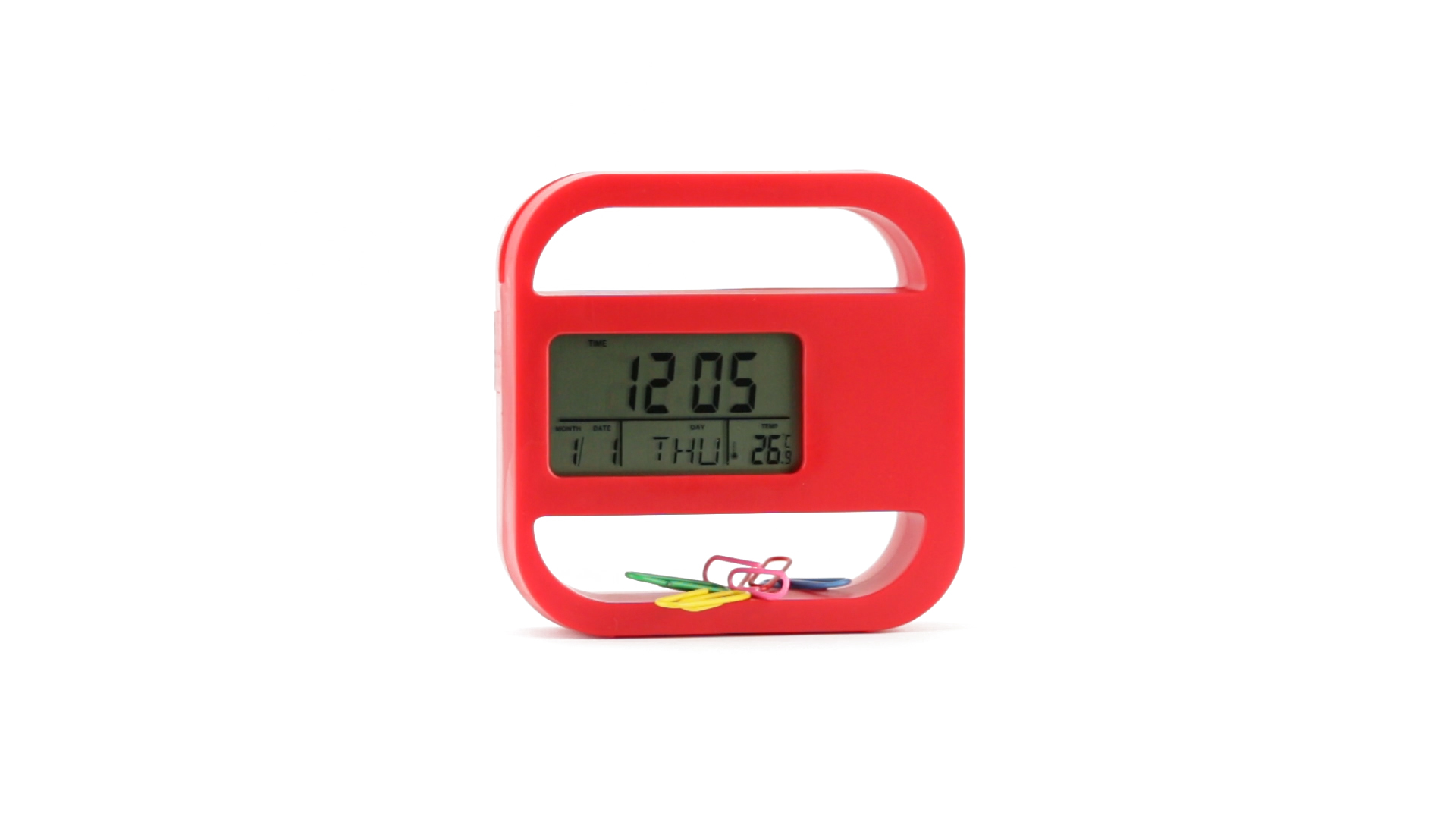 Digitale Tischuhr mit integrierter Wetterstation und Multifunktions-Display. Batteriebetrieben - Typ AAA nicht inklusive. Präsentiert in einer individuellen Box.