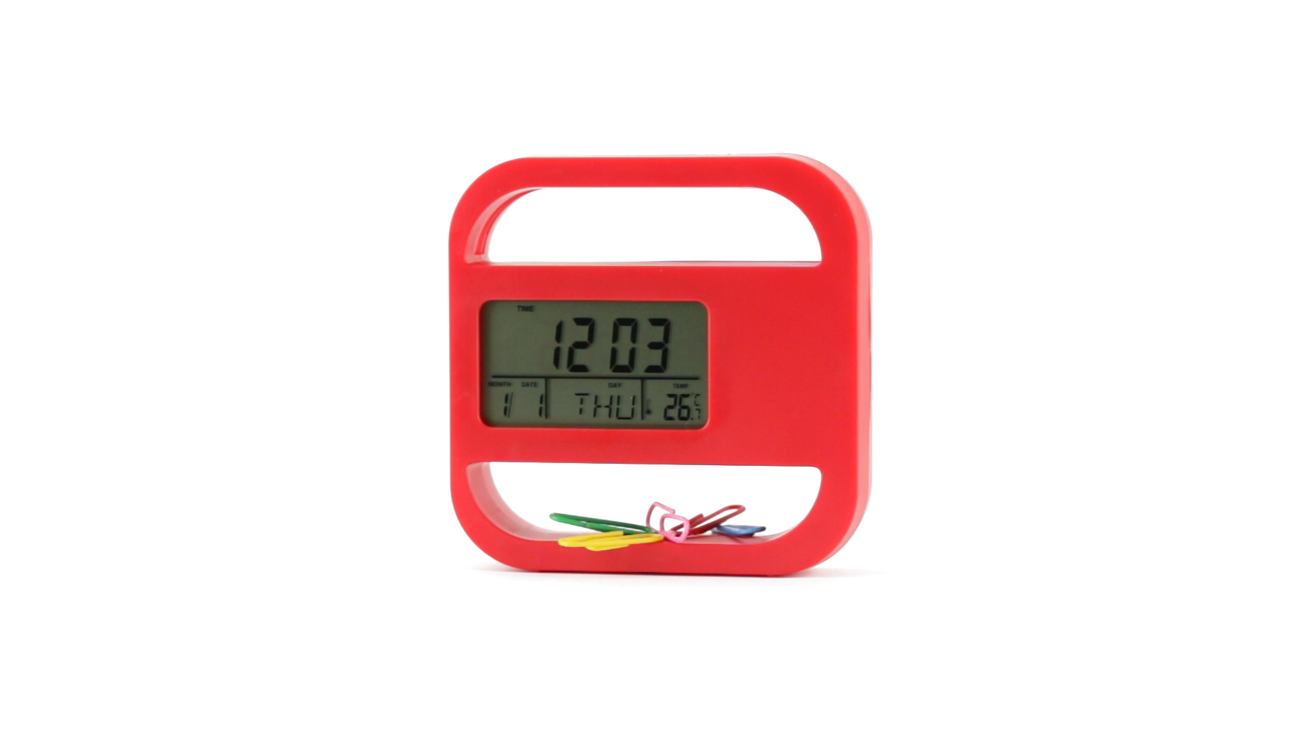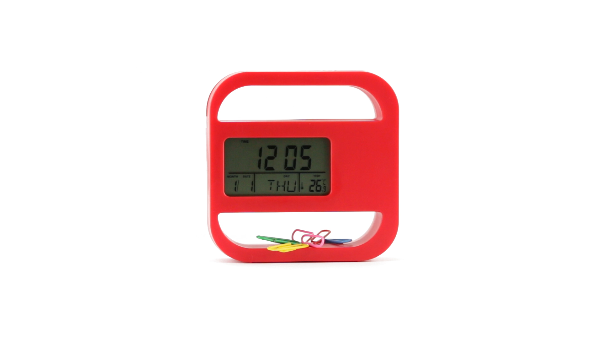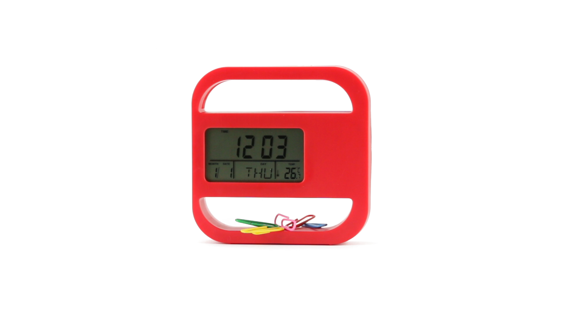 Digitale Tischuhr mit integrierter Wetterstation und Multifunktions-Display. Batteriebetrieben - Typ AAA nicht inklusive. Präsentiert in einer individuellen Box.