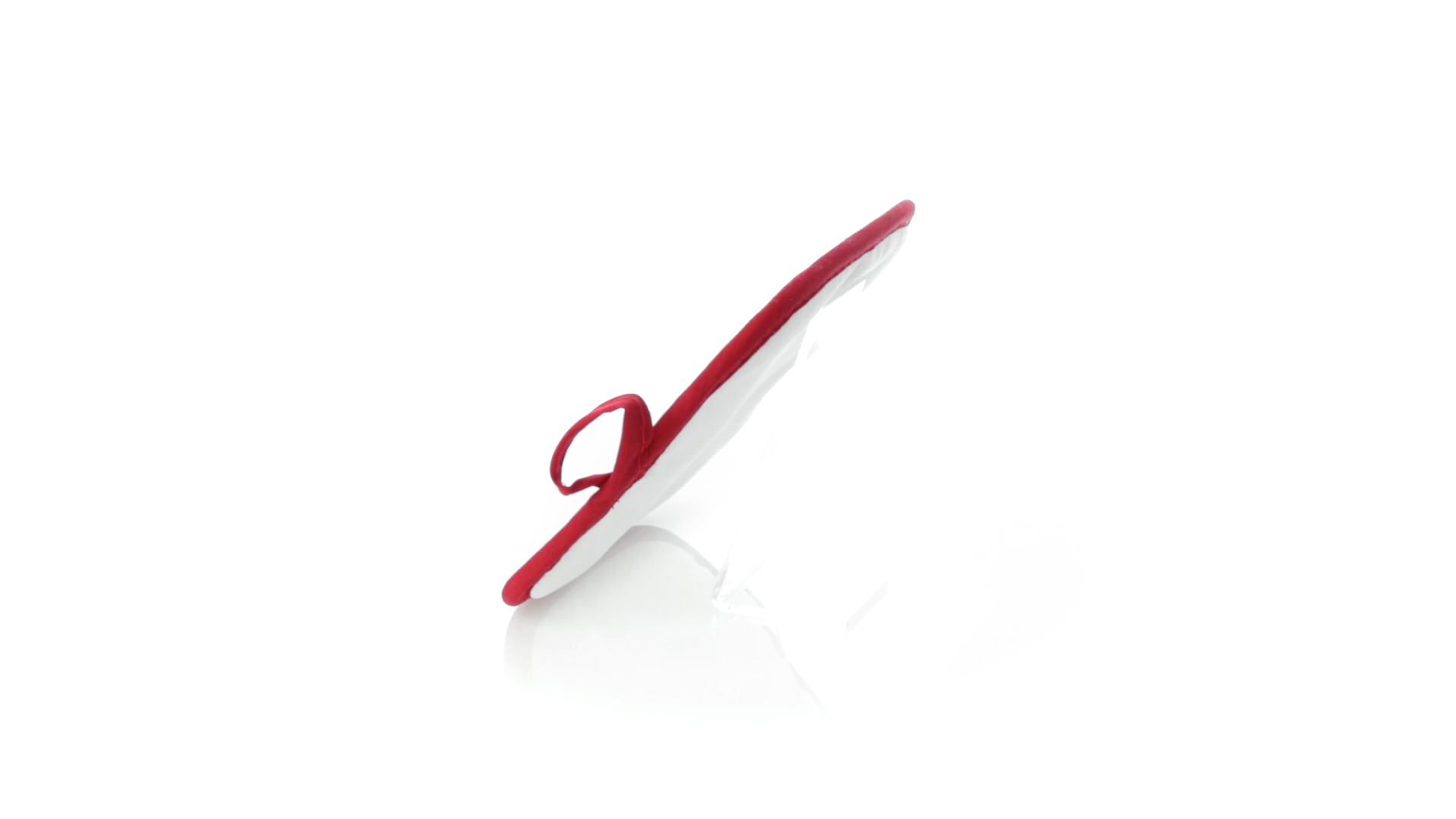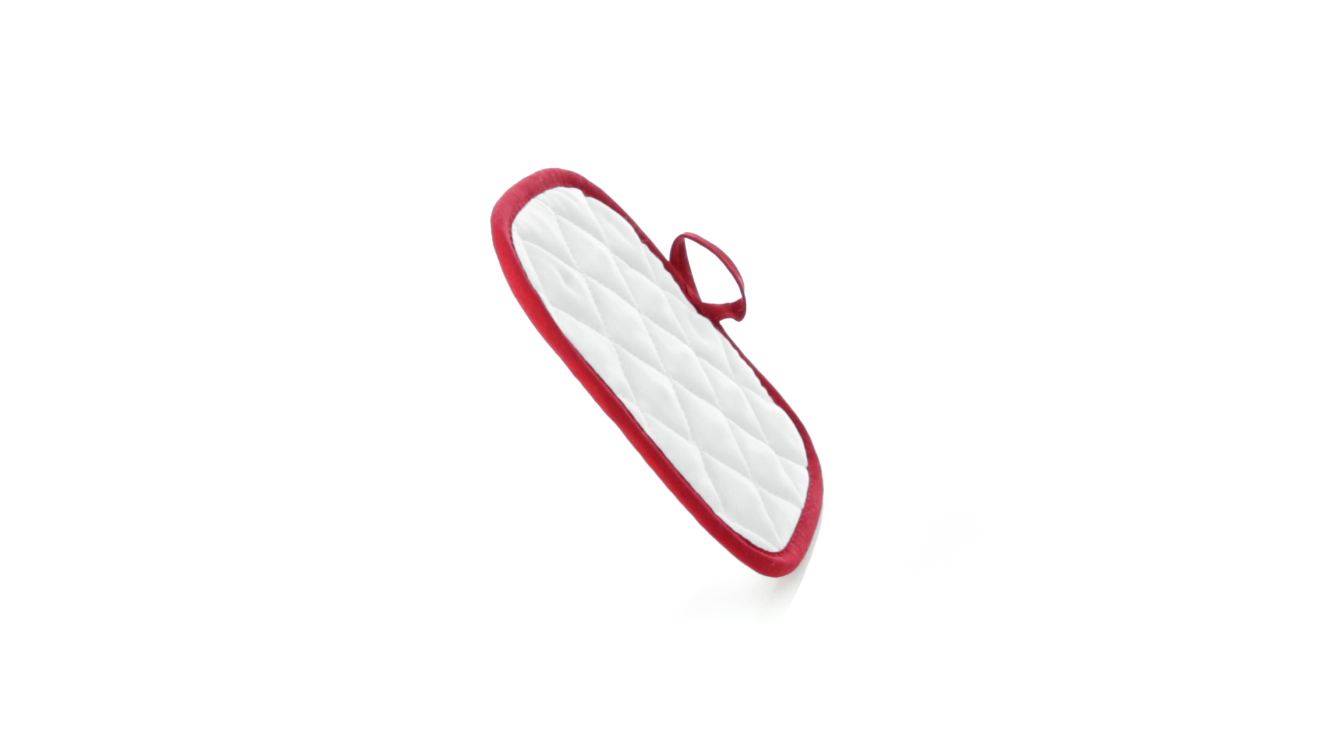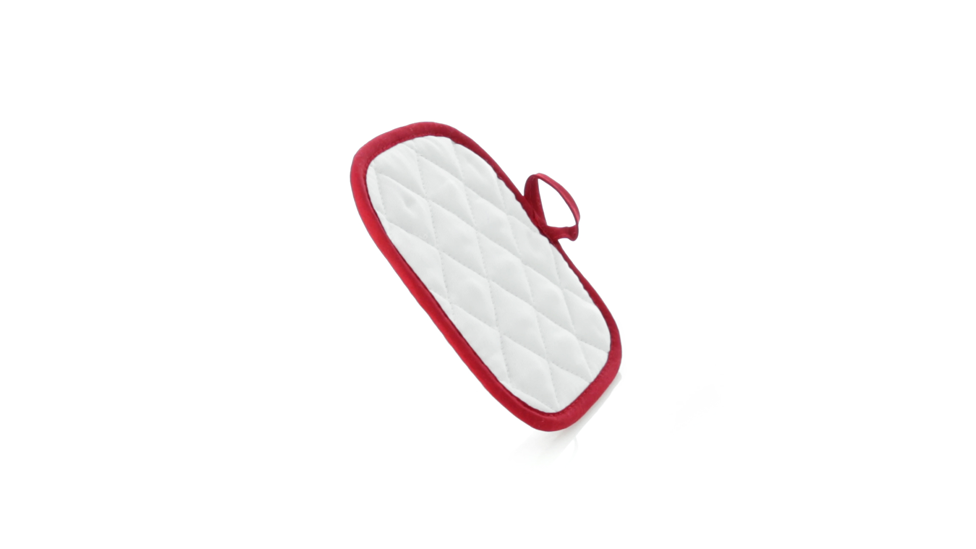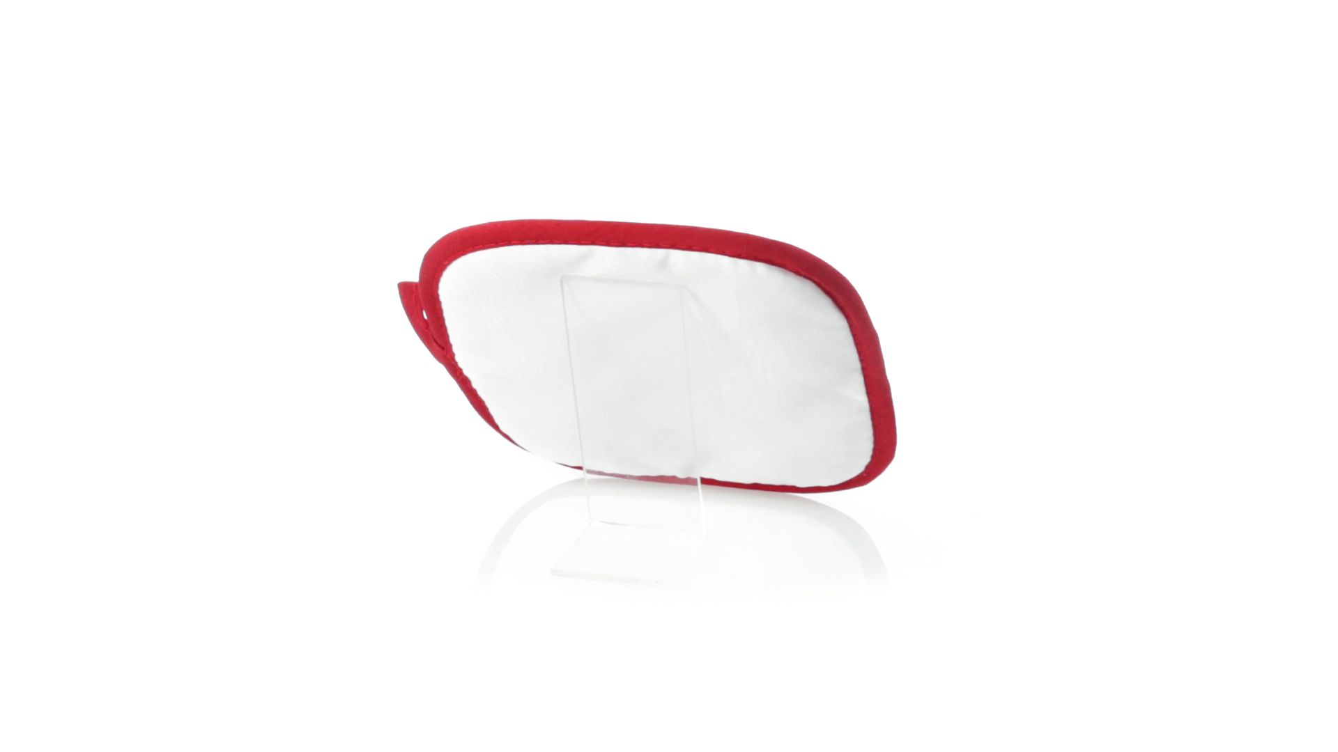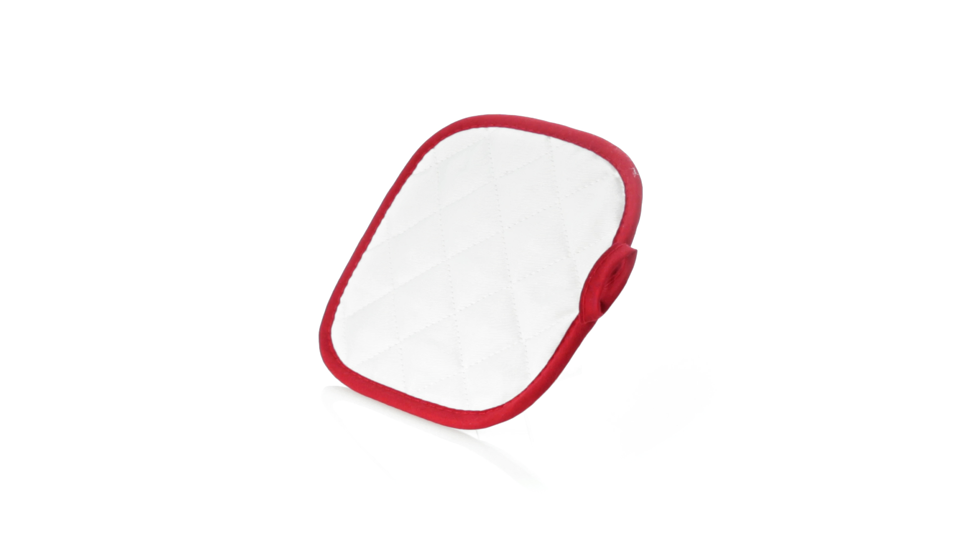 Weicher Topflappen aus 100 % Polyester in Weiss, mit Rändern in kräftigen Farben. Mit Schlaufe zum Aufhängen und einer glatten Seite - speziell für den Sublimationsdruck entwickelt.