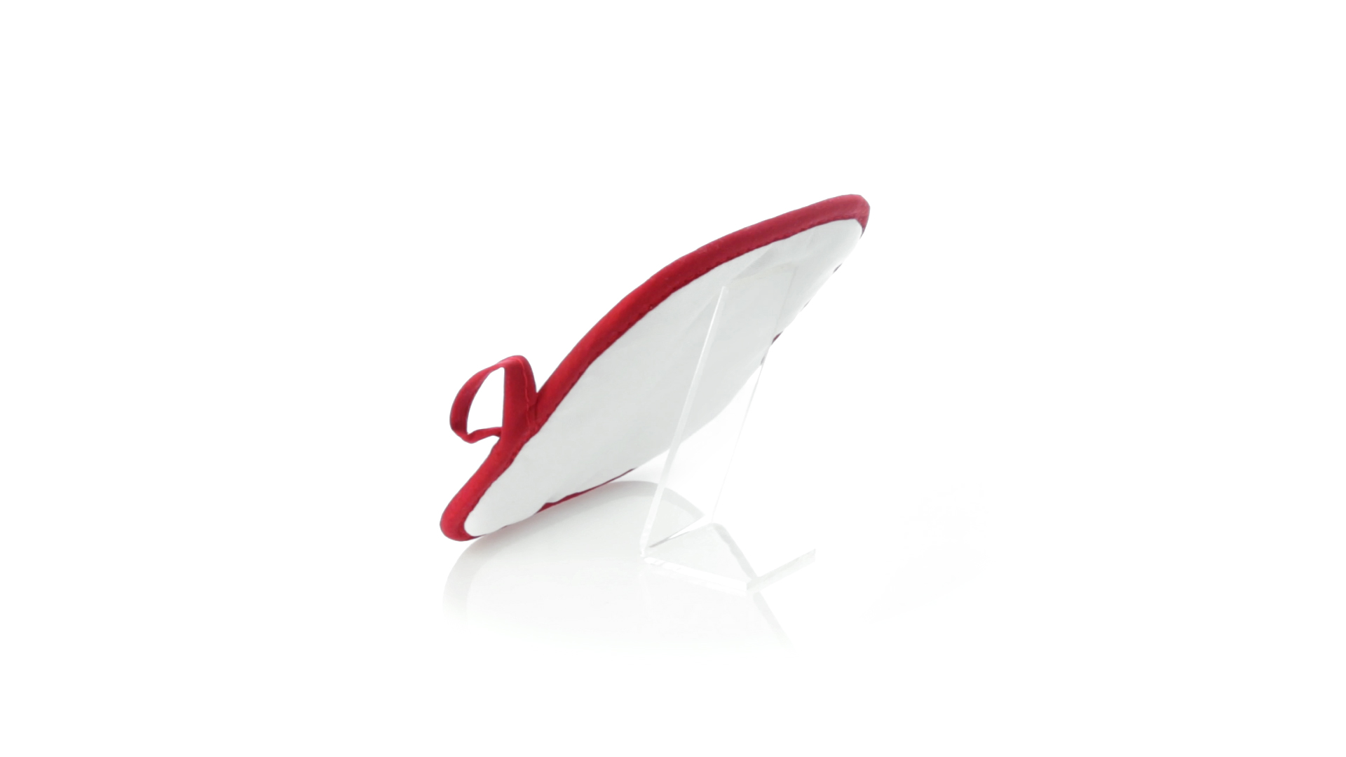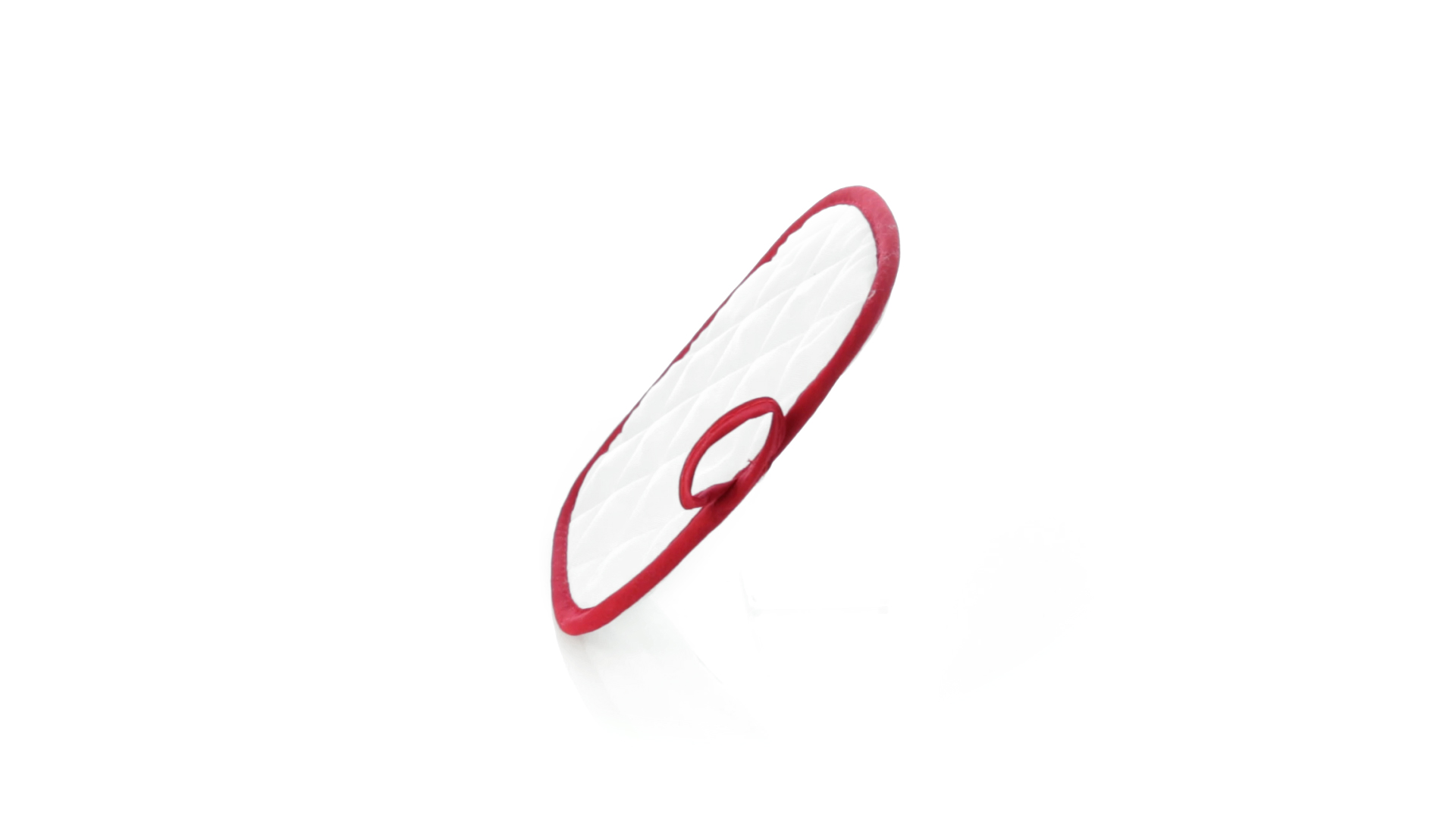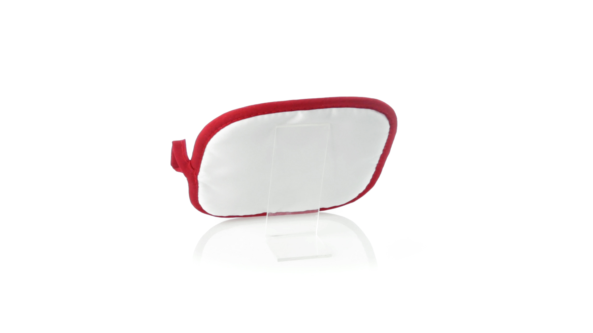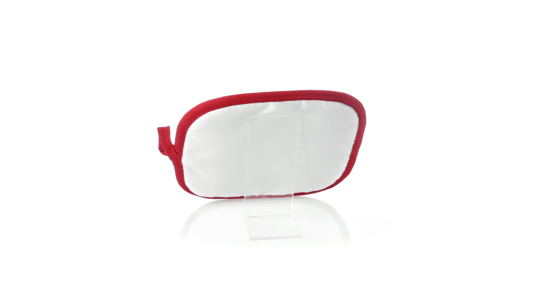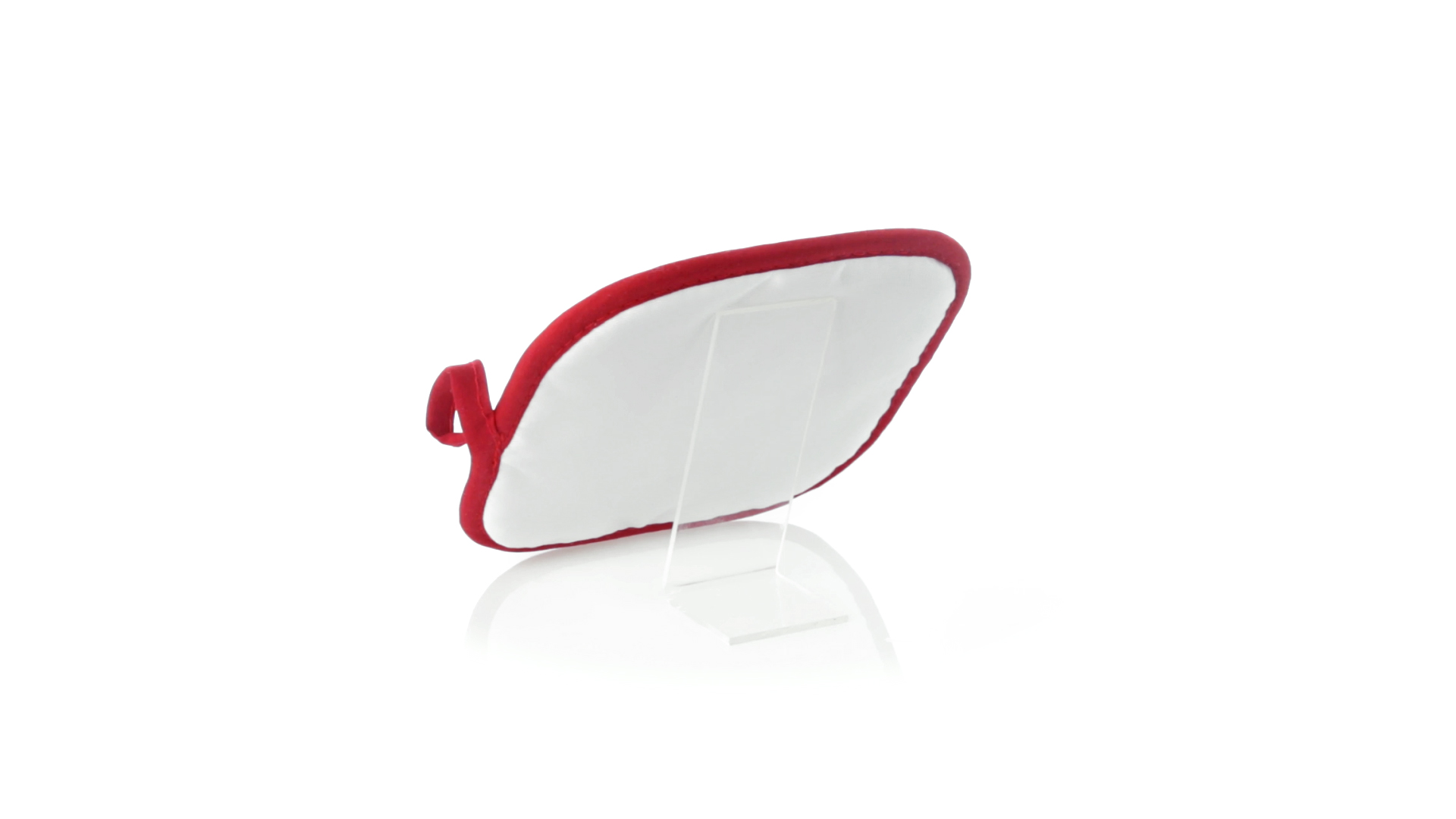 Weicher Topflappen aus 100 % Polyester in Weiss, mit Rändern in kräftigen Farben. Mit Schlaufe zum Aufhängen und einer glatten Seite - speziell für den Sublimationsdruck entwickelt.
