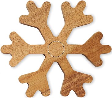 Set mit 2 Topfuntersetzern aus Akazienholz. Motiv: Schneeflocke. Holz ist ein natürliches Produkt, es kann daher zu leichten Abweichungen in Farbe, Dekor und Massen kommen.
