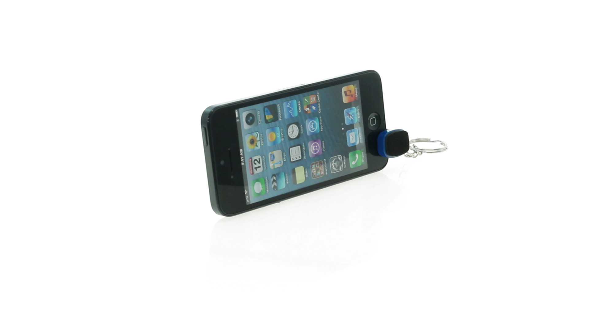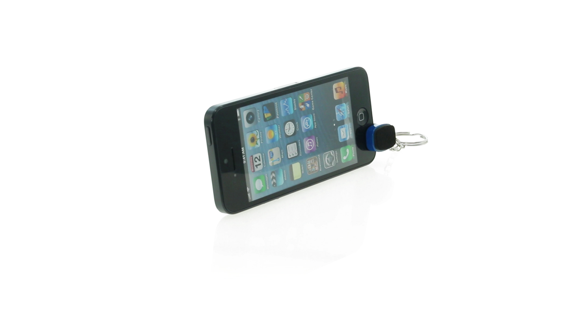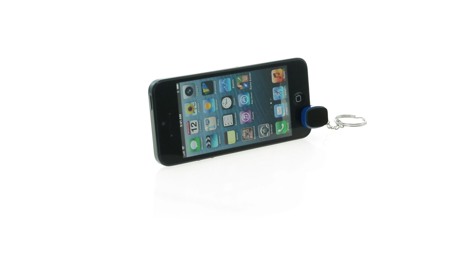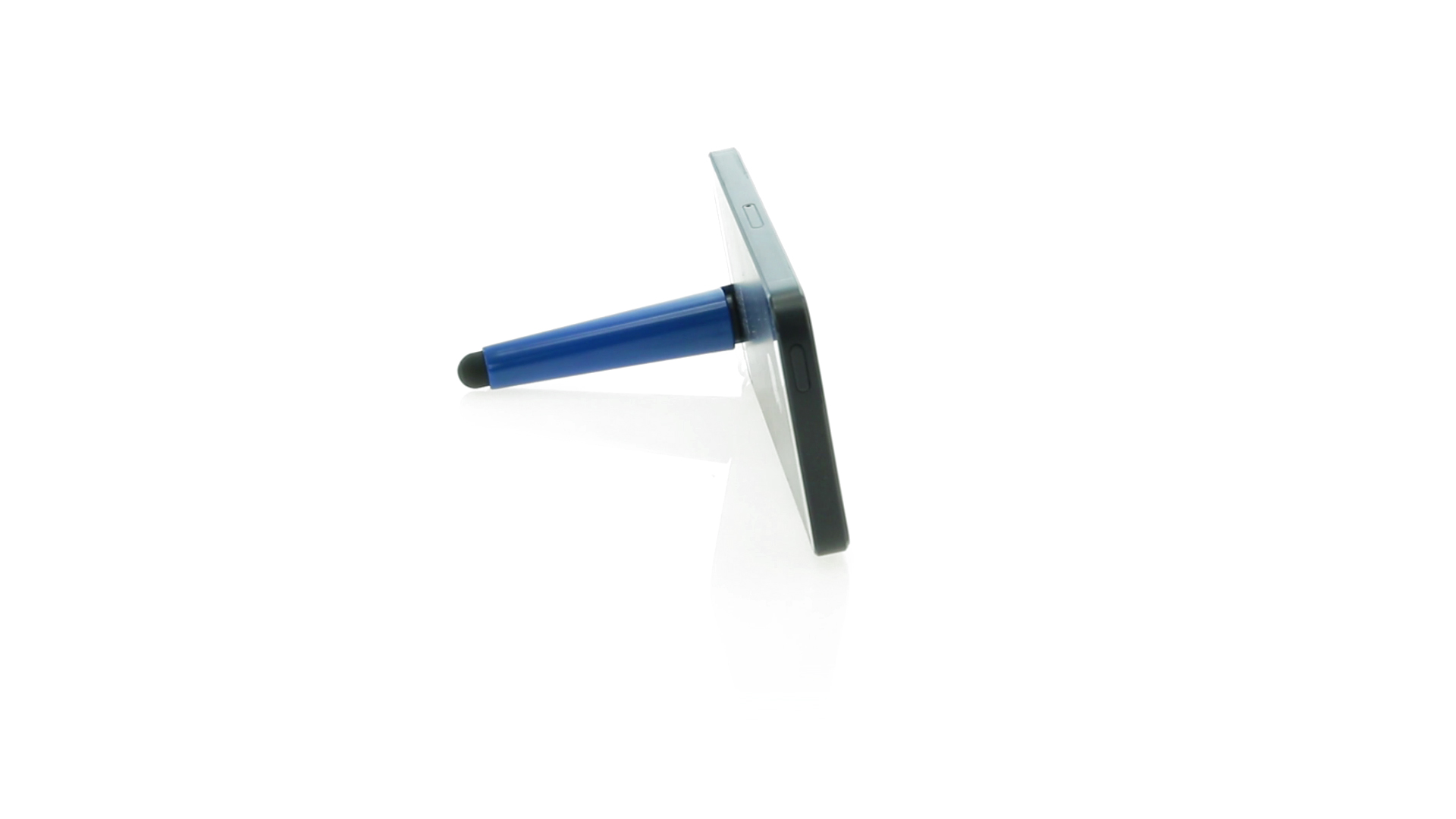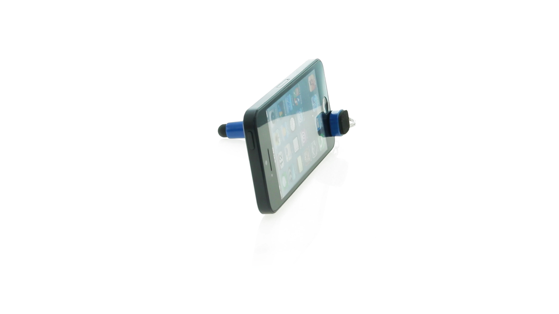 Multifunktions-Schlüsselanhänger mit Smartphone-Ständer und integriertem Stylus. Gehäuse in kräftigen, glänzenden Farben.
