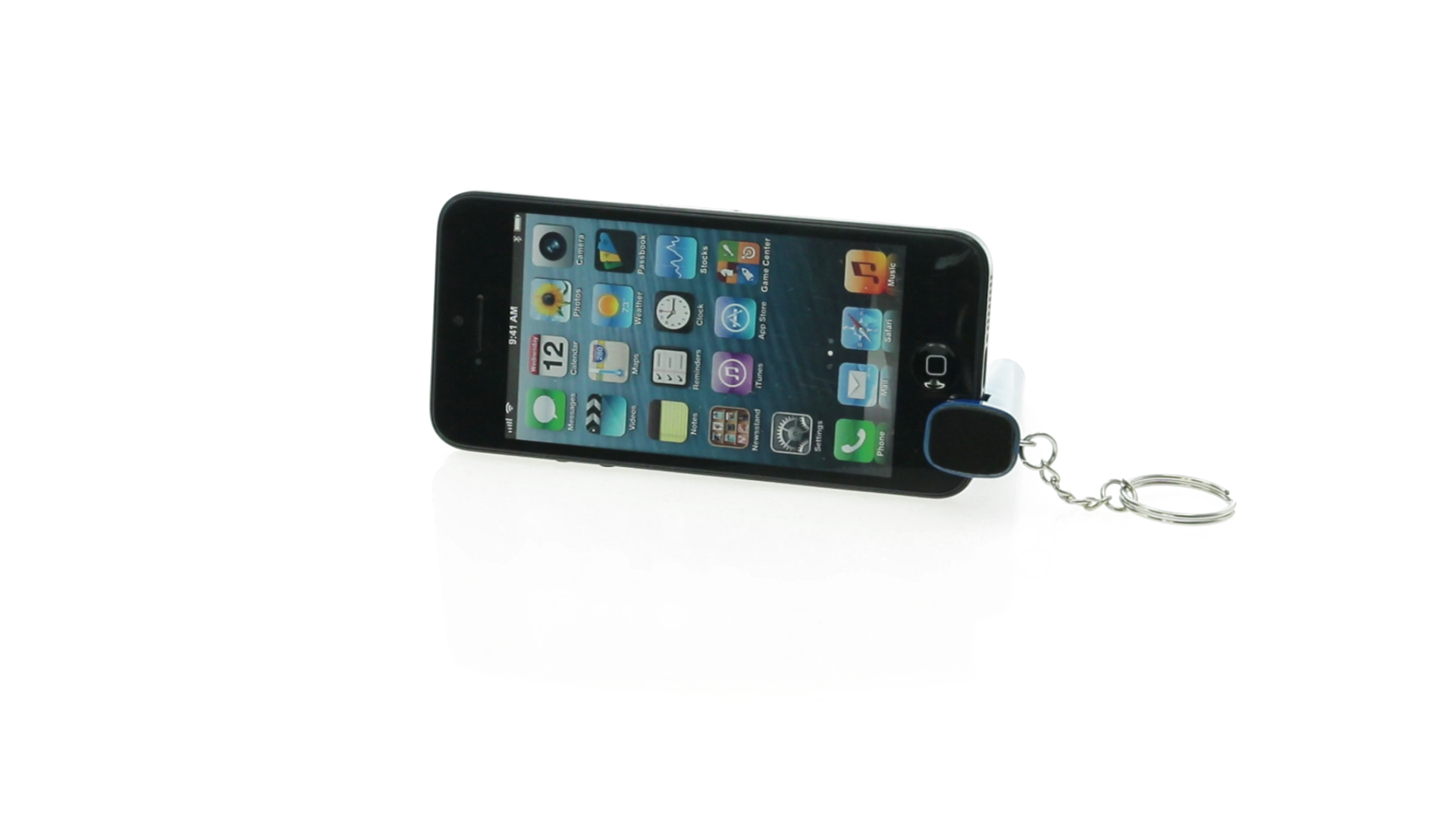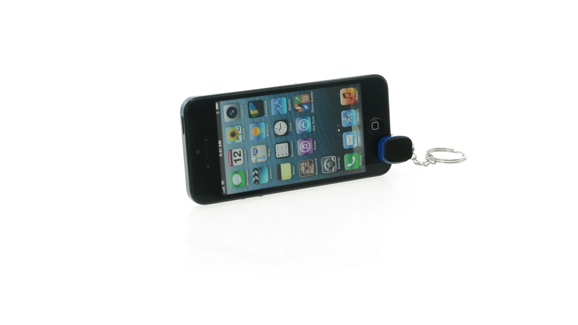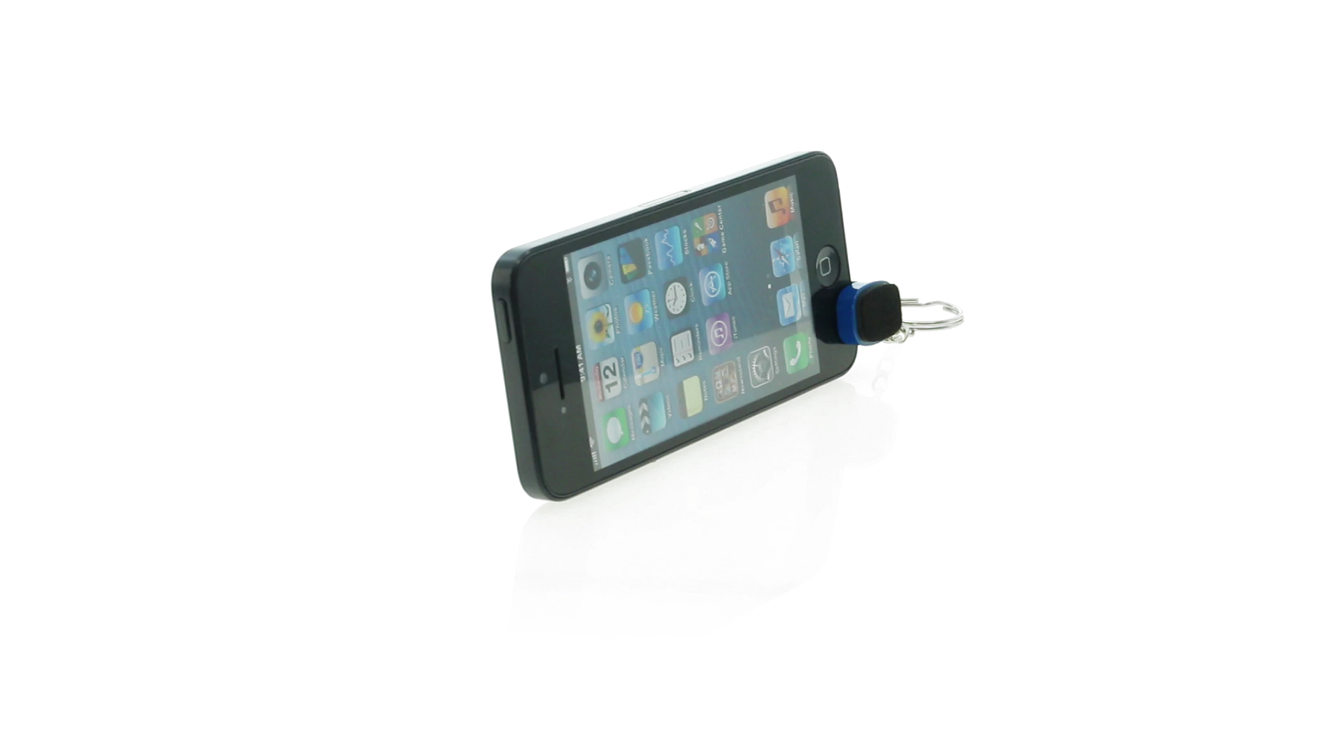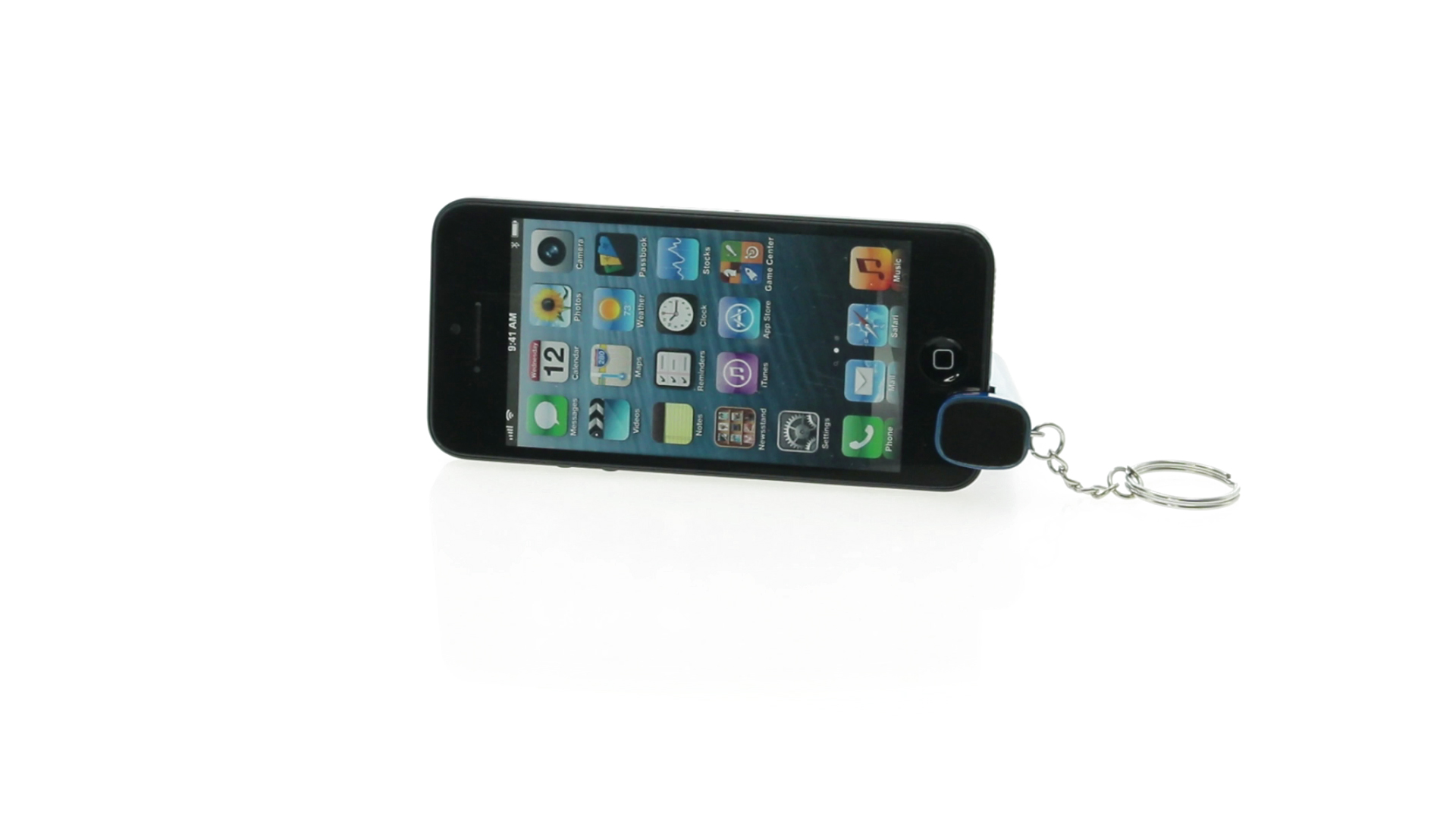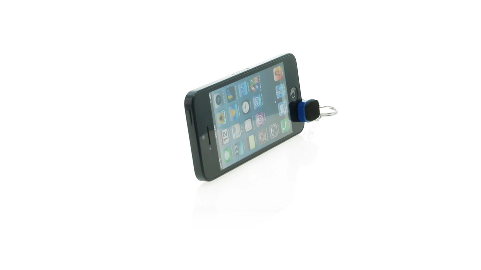 Multifunktions-Schlüsselanhänger mit Smartphone-Ständer und integriertem Stylus. Gehäuse in kräftigen, glänzenden Farben.