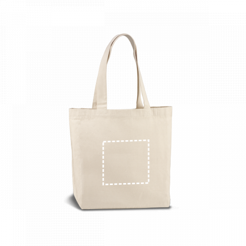 Tragetasche aus 100% Canvas-Baumwolle (280 g/m²) mit Innentaschen und 65 cm langen Henkeln. Das Produkt wird unter zertifiziertem Standard für die Verwendung von Schadstoffen in Textilien hergestellt. 450 x 380 x 105 mm