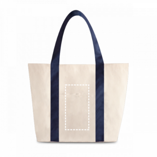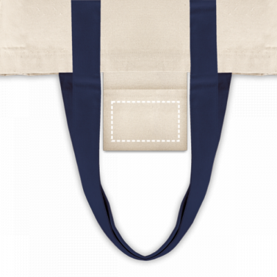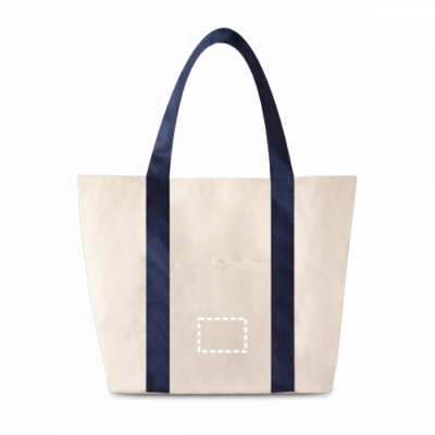 Tragetasche aus 100% Canvas Baumwolle (280 g/m²) mit Magnetverschluss, Innentasche mit Reissverschluss sowie einer Vordertasche und 60 cm langen Henkeln. 530 x 380 x 170 mm