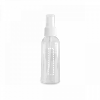 Kulturbeutel aus transparentem PVC mit 3 Flaschen (2 x 65 mL und 1 x 60 mL), 1 Sprühflasche (80 mL) und 1 Trichter. Geeignet für das Handgepäck. 190 x 155 x 40 mm