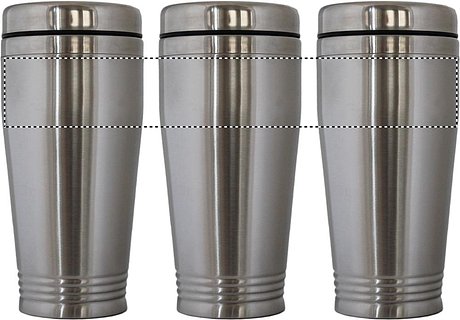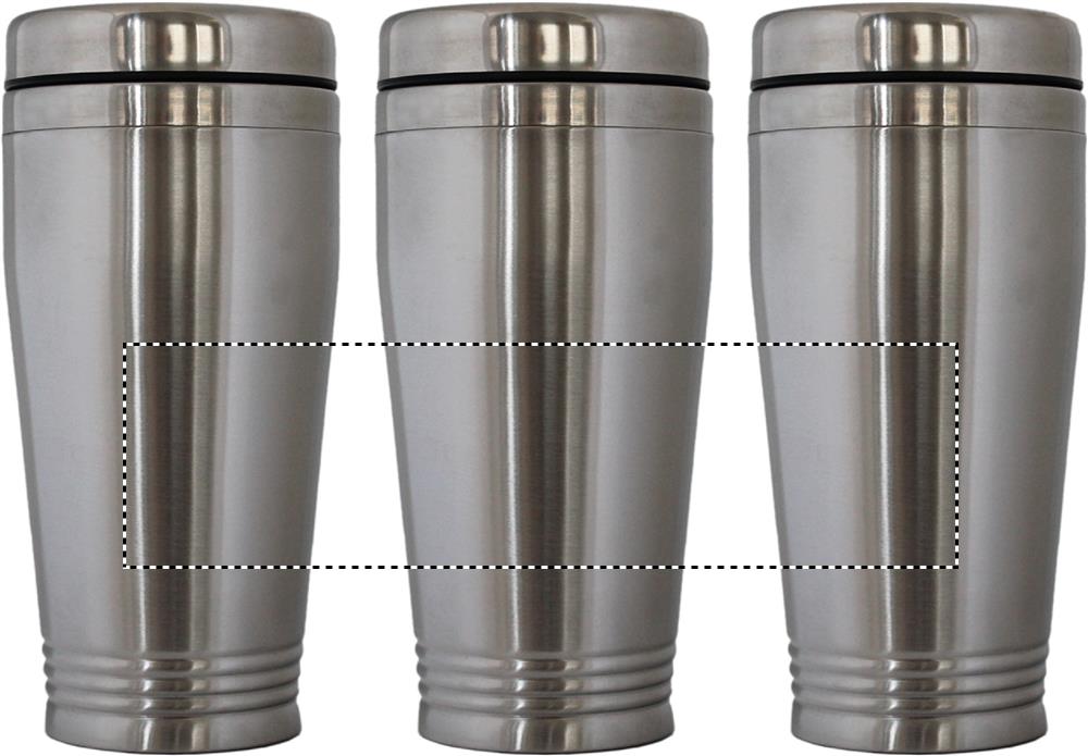 Doppelwandiger Trinkbecher aus Edelstahl mit schwarzen PP Deckel. Füllmenge: 400 ml.