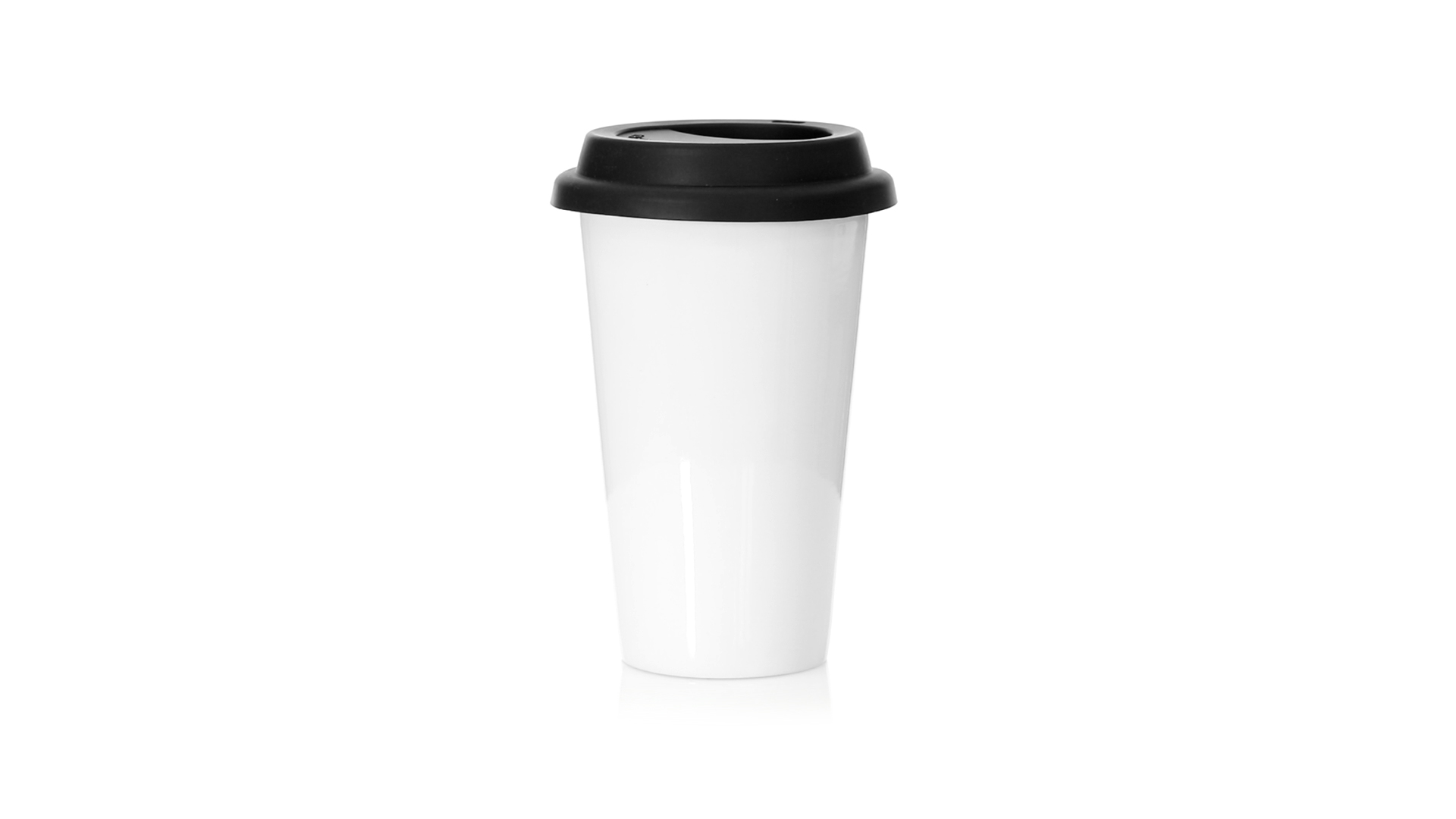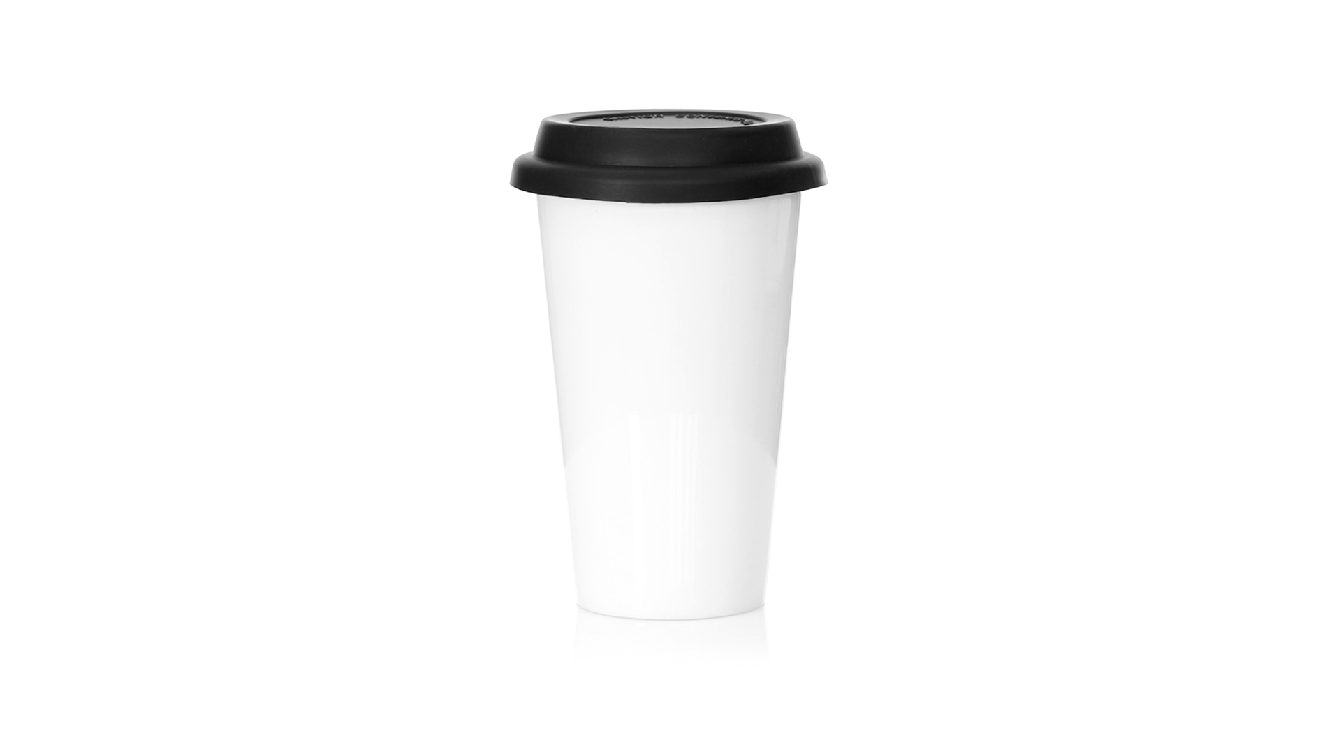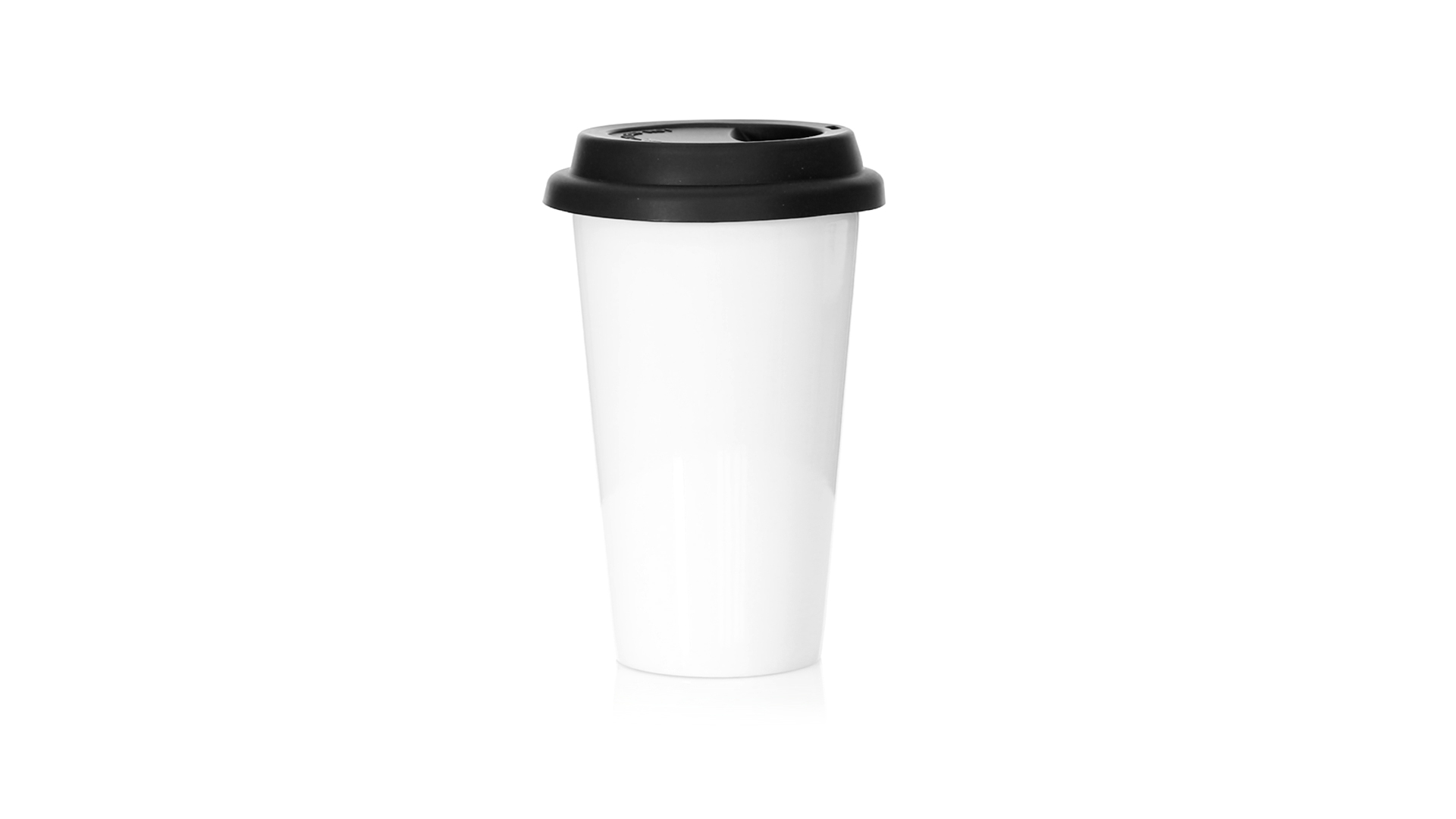 Vaso de cerámica de 400ml de capacidad original diseño bicolor, con vaso en color blanco y tapadera de silicona en variada gama de colores. Presentado en caja individual.