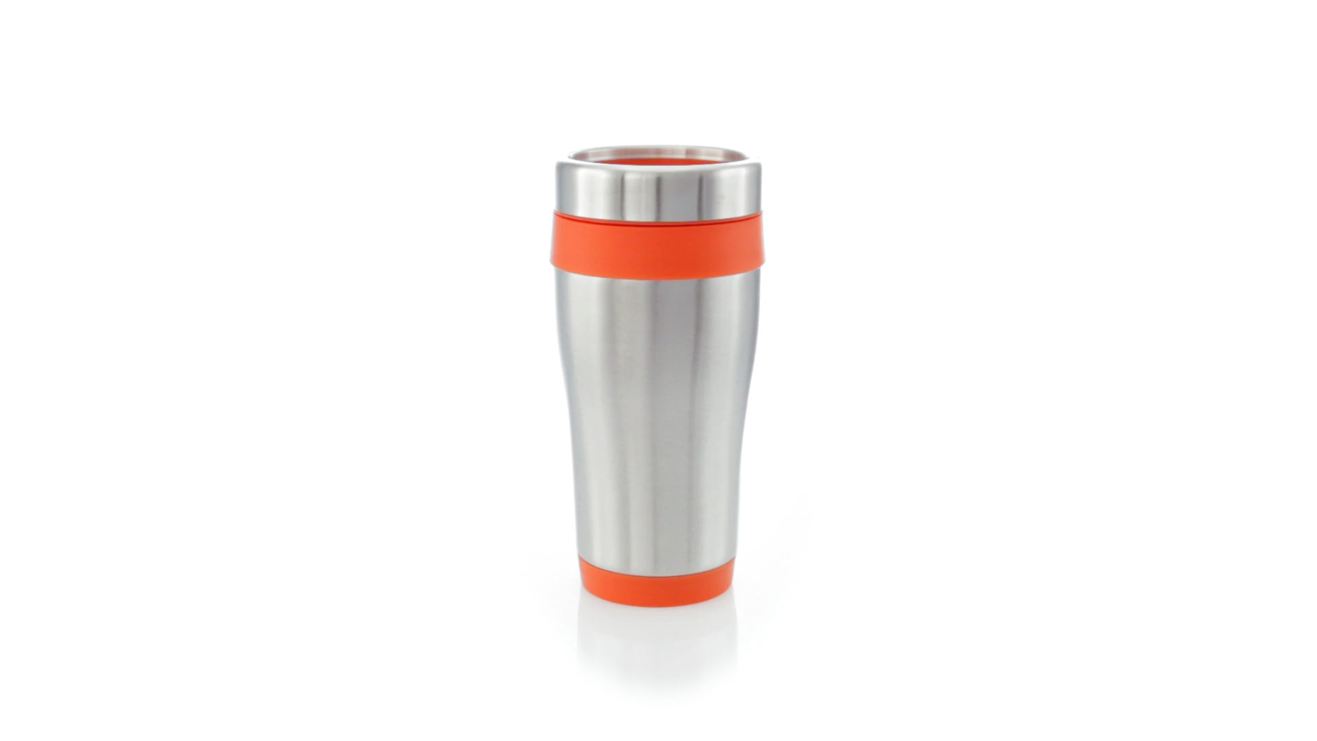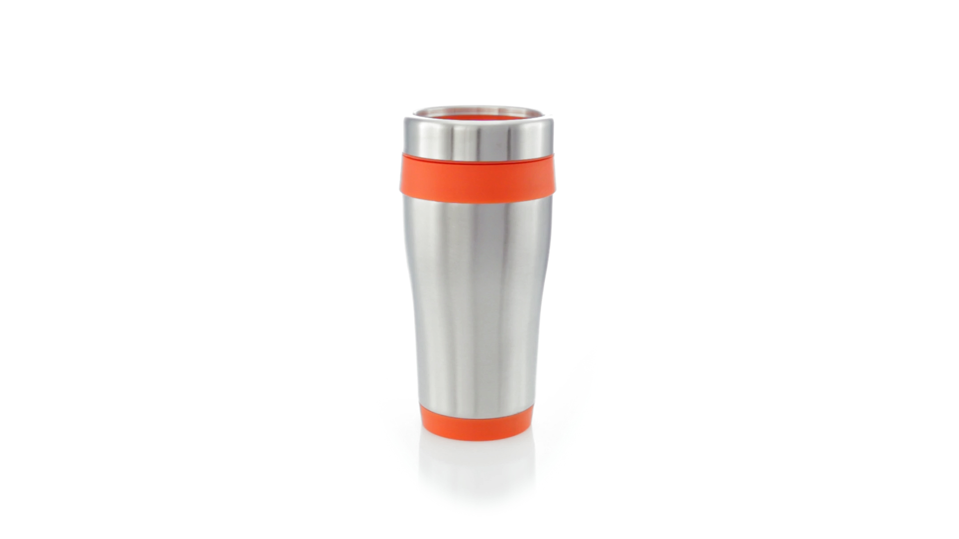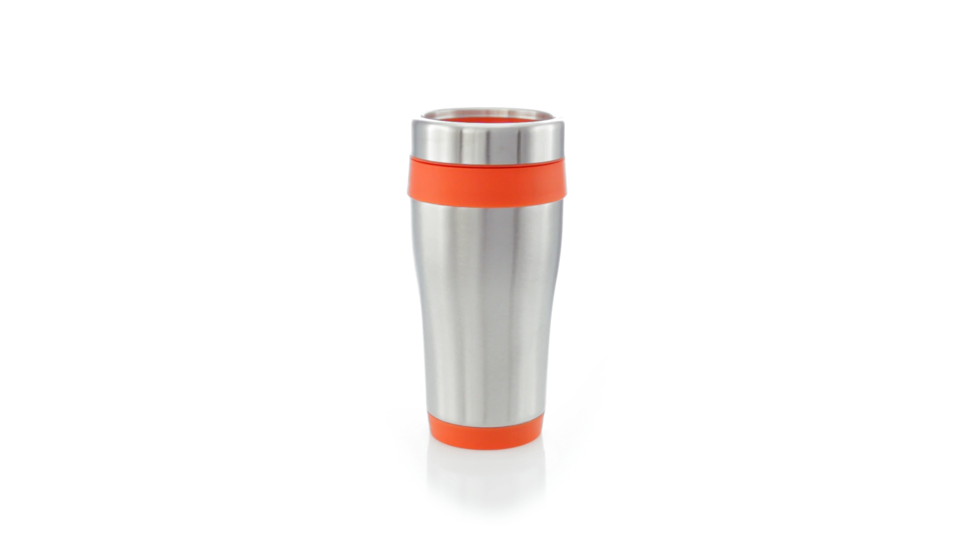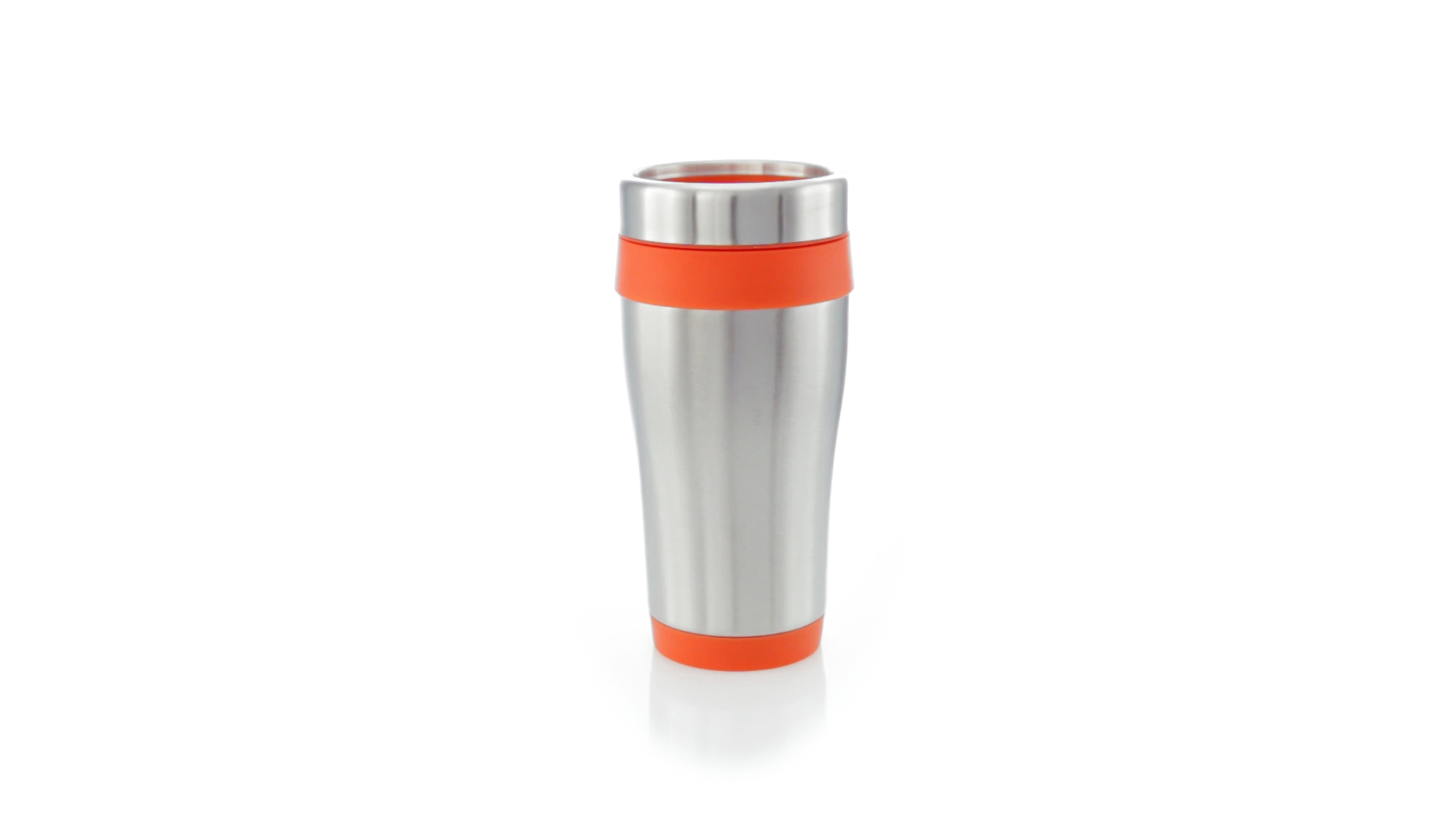 Trinkbecher aus Edelstahl mit 450 ml Fassungsvermögen, glänzendem Korpus und passendem Zubehör in leuchtenden Farben. Leicht zu öffnender Deckel mit Trinköffnung. Es ist ideal für Ihren Schreibtisch, Tisch oder jede andere Oberfläche, auf der Sie in Ruhe Ihr Lieblingsgetränk geniessen können.