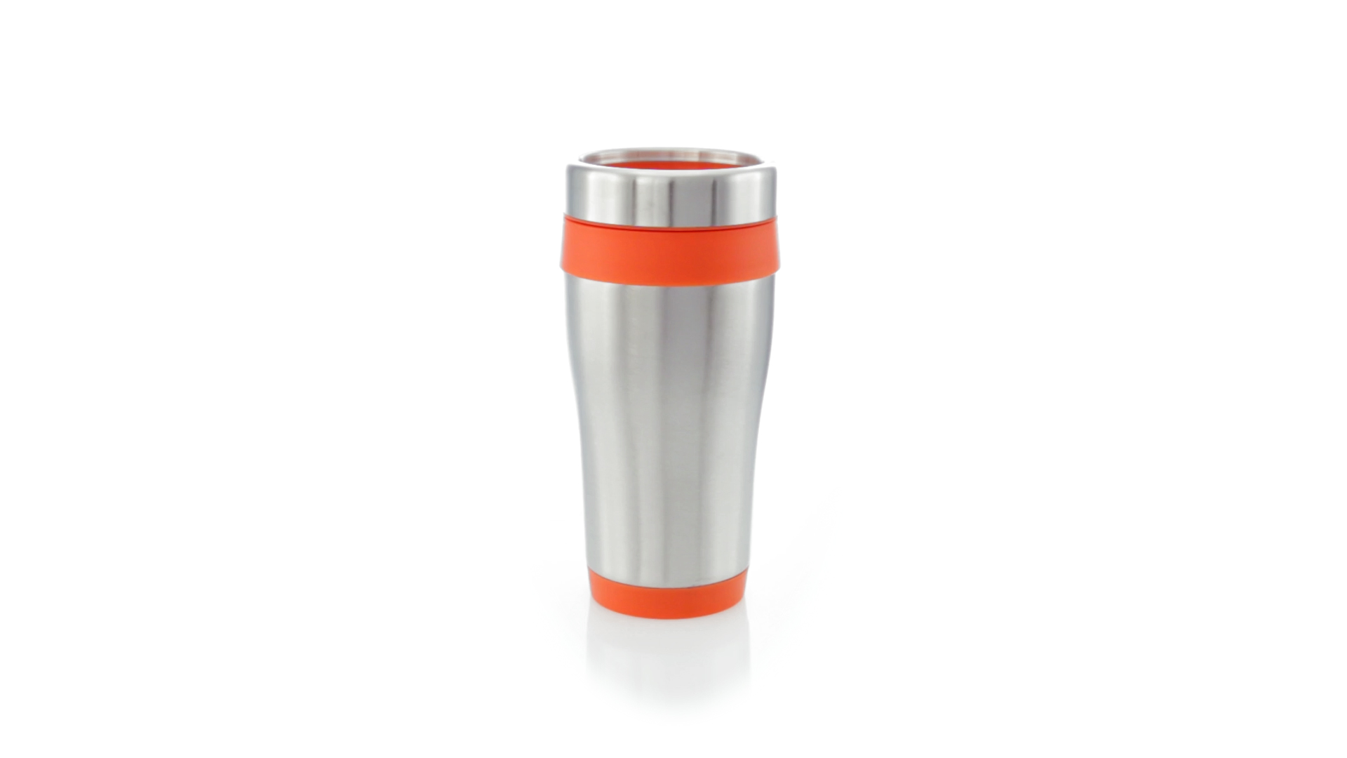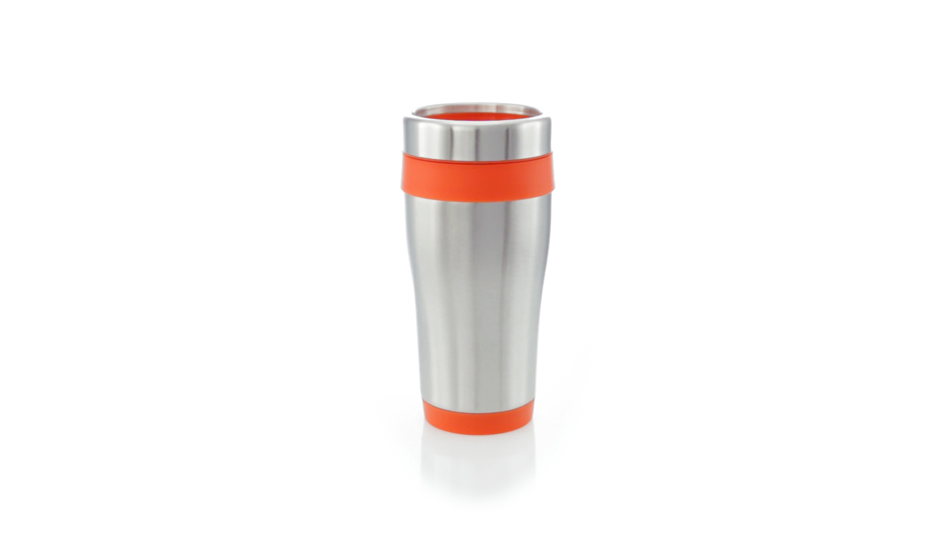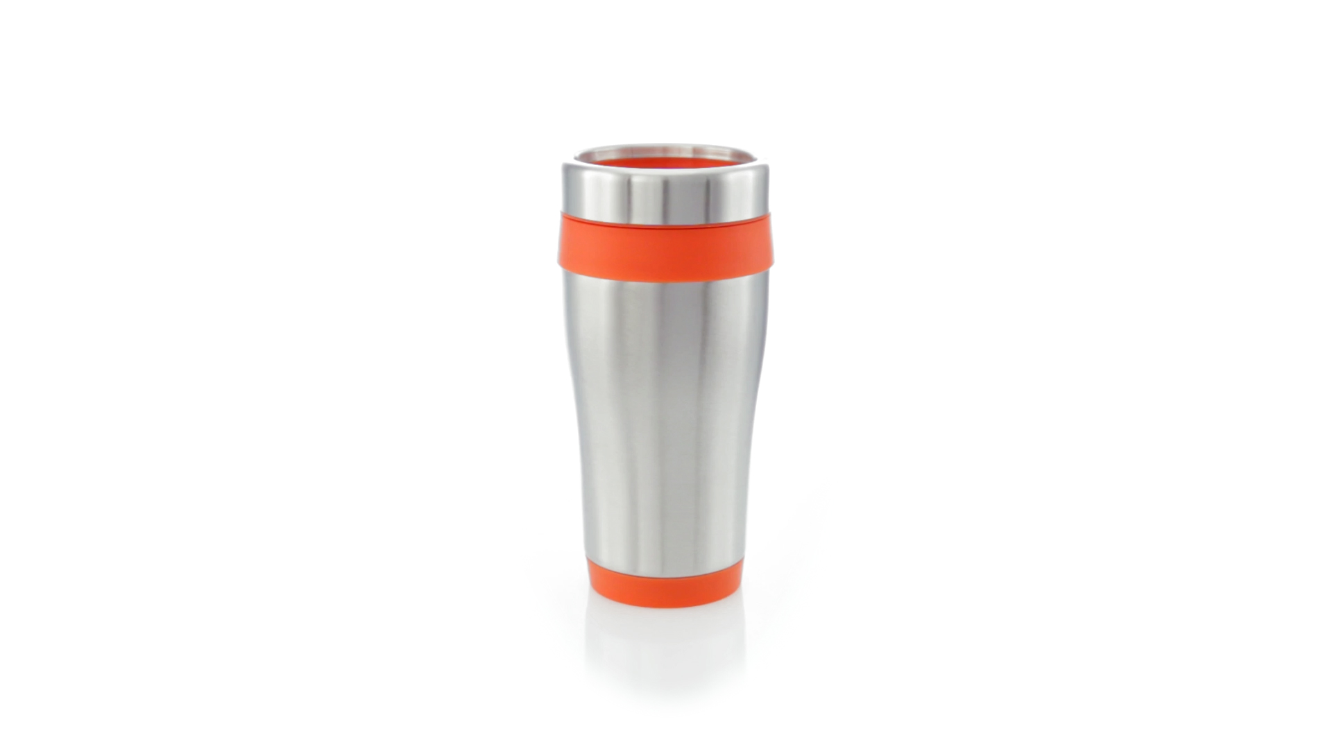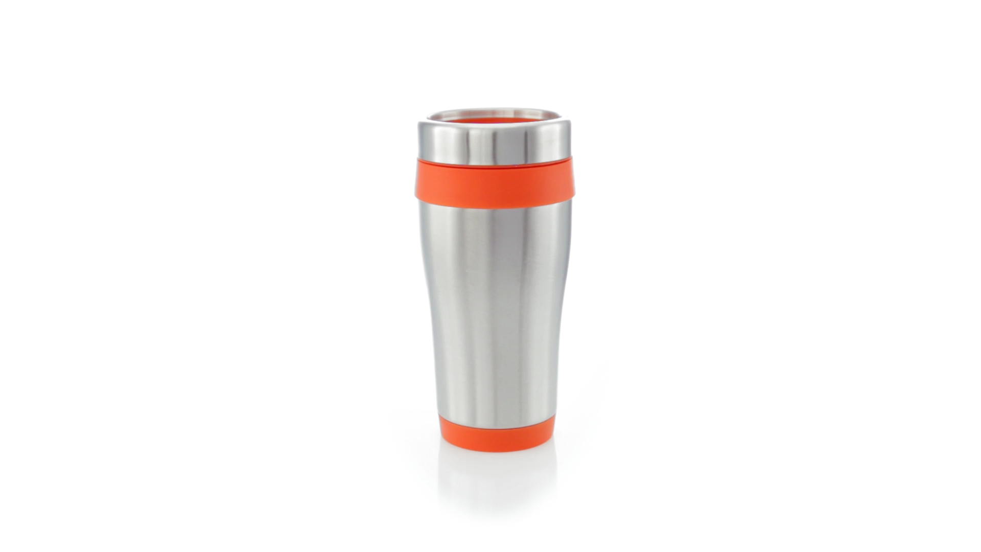 Trinkbecher aus Edelstahl mit 450 ml Fassungsvermögen, glänzendem Korpus und passendem Zubehör in leuchtenden Farben. Leicht zu öffnender Deckel mit Trinköffnung. Es ist ideal für Ihren Schreibtisch, Tisch oder jede andere Oberfläche, auf der Sie in Ruhe Ihr Lieblingsgetränk geniessen können.