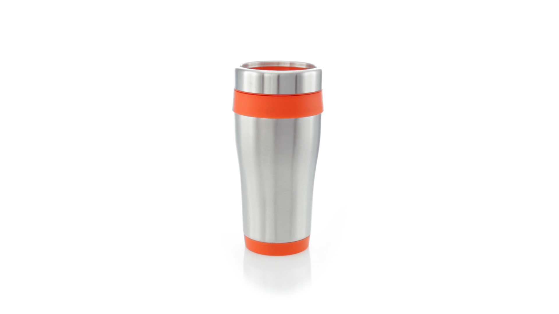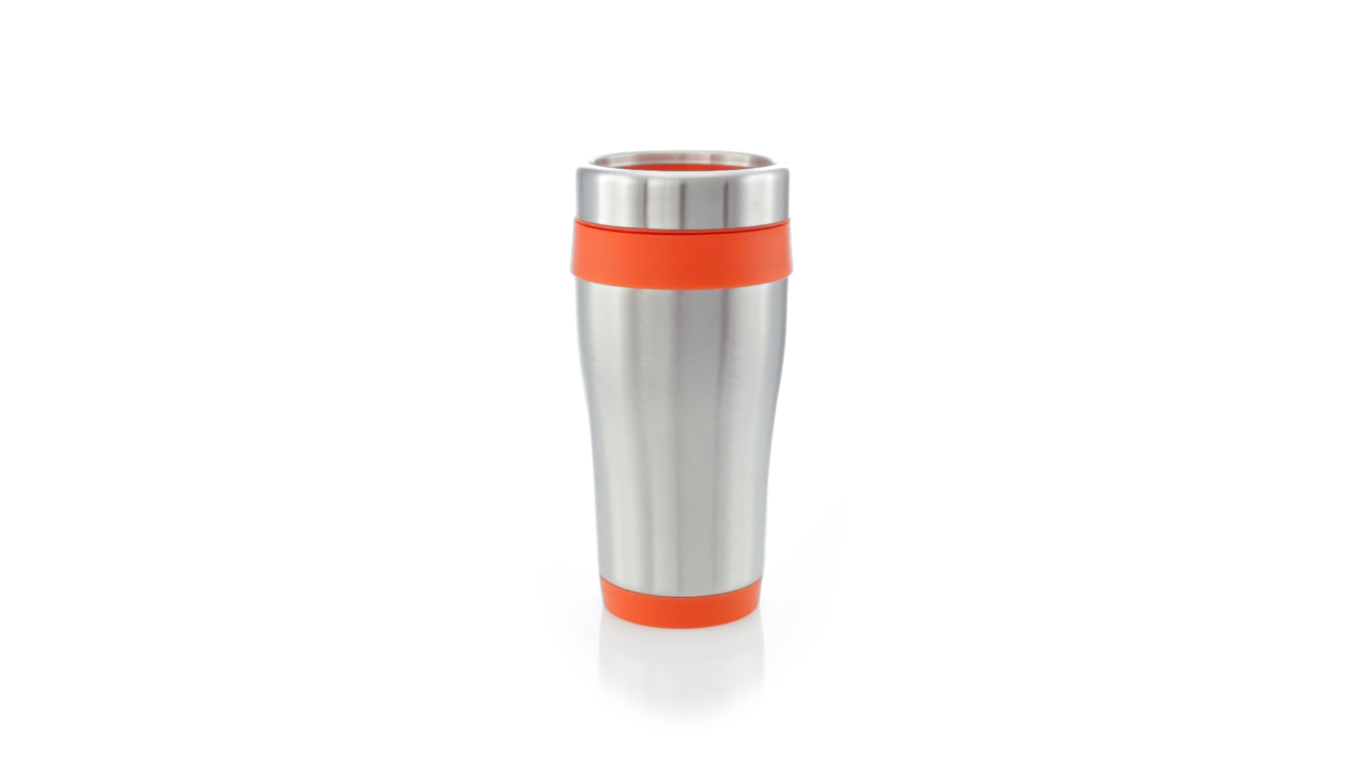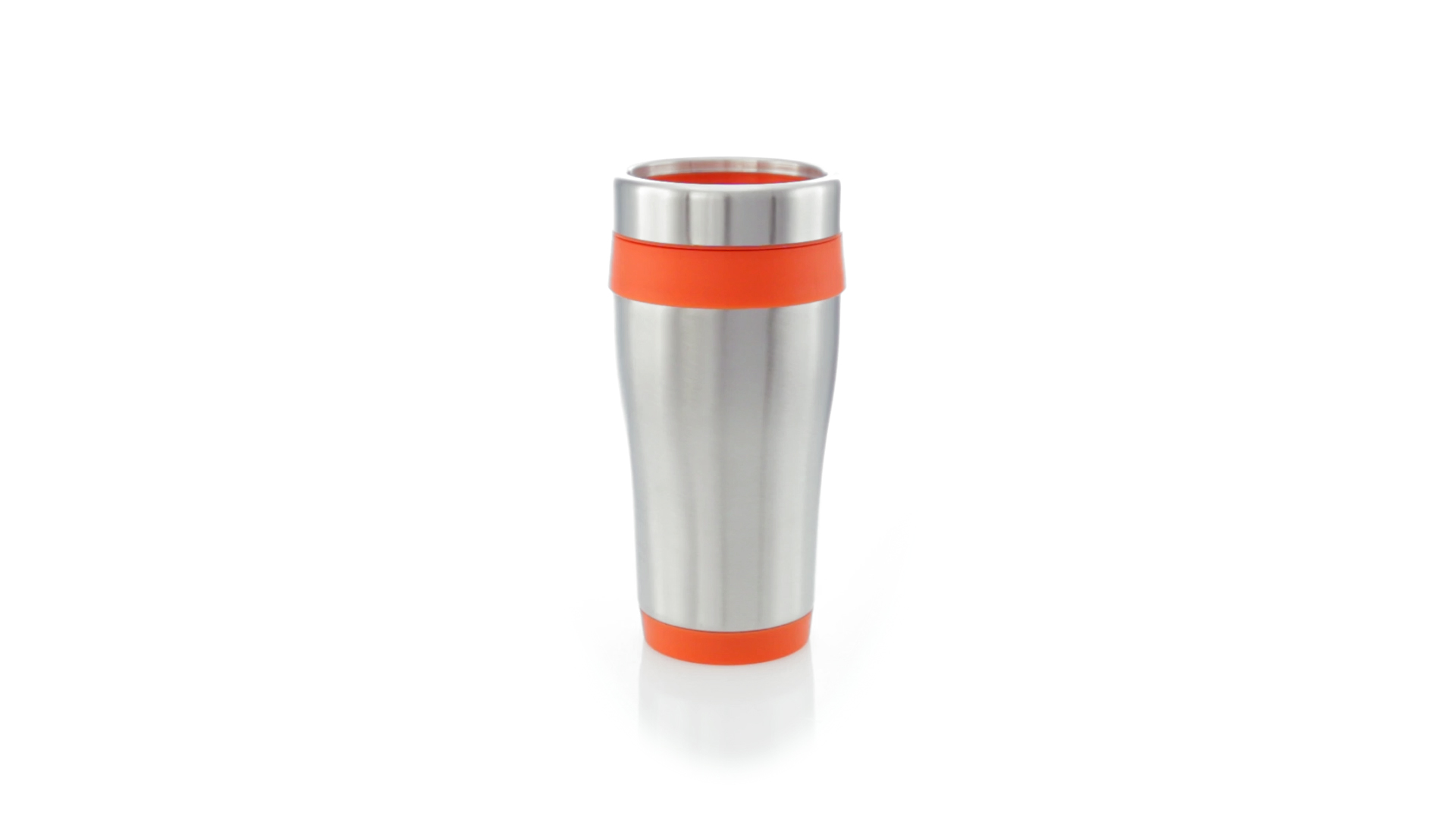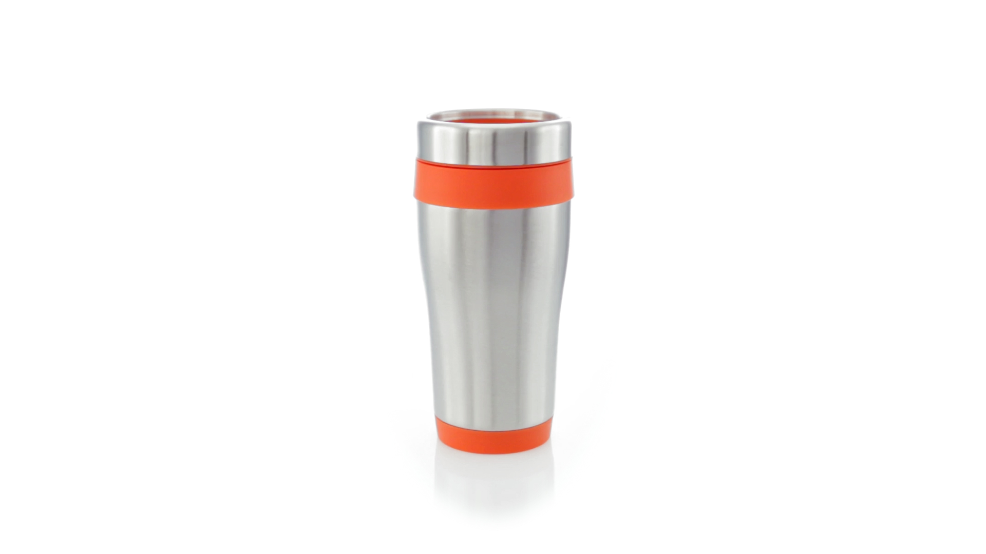 Trinkbecher aus Edelstahl mit 450 ml Fassungsvermögen, glänzendem Korpus und passendem Zubehör in leuchtenden Farben. Leicht zu öffnender Deckel mit Trinköffnung. Es ist ideal für Ihren Schreibtisch, Tisch oder jede andere Oberfläche, auf der Sie in Ruhe Ihr Lieblingsgetränk geniessen können.
