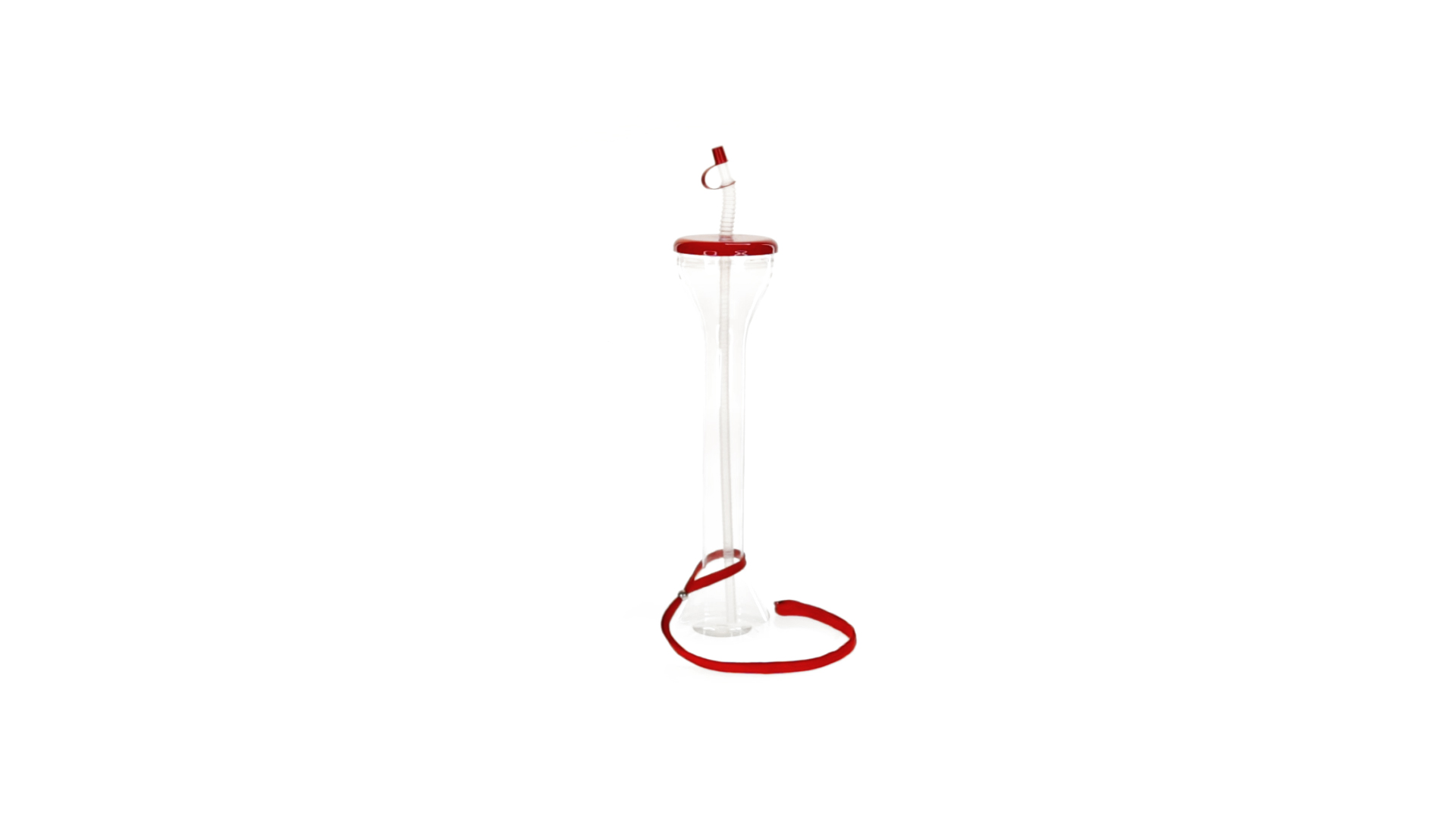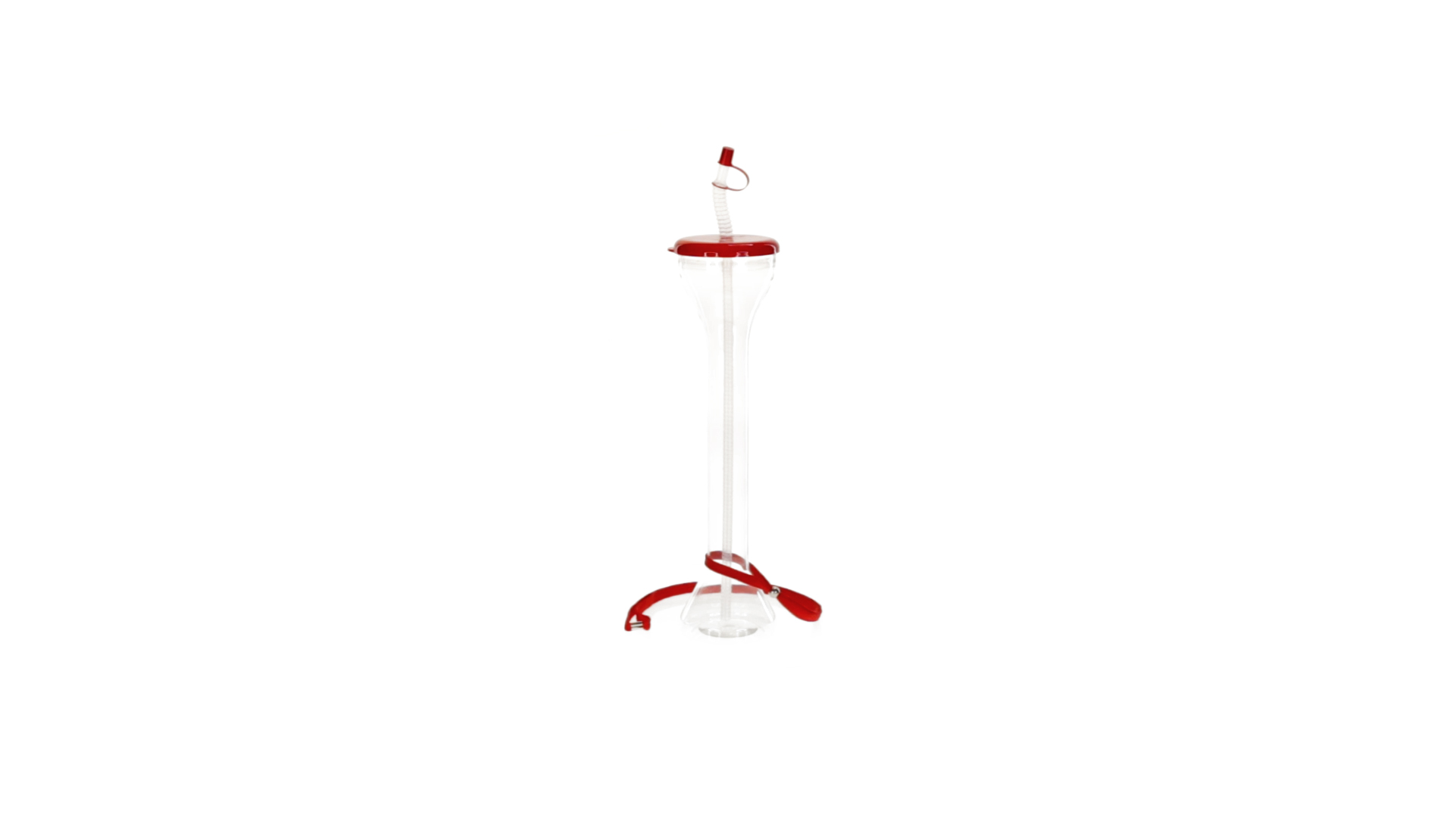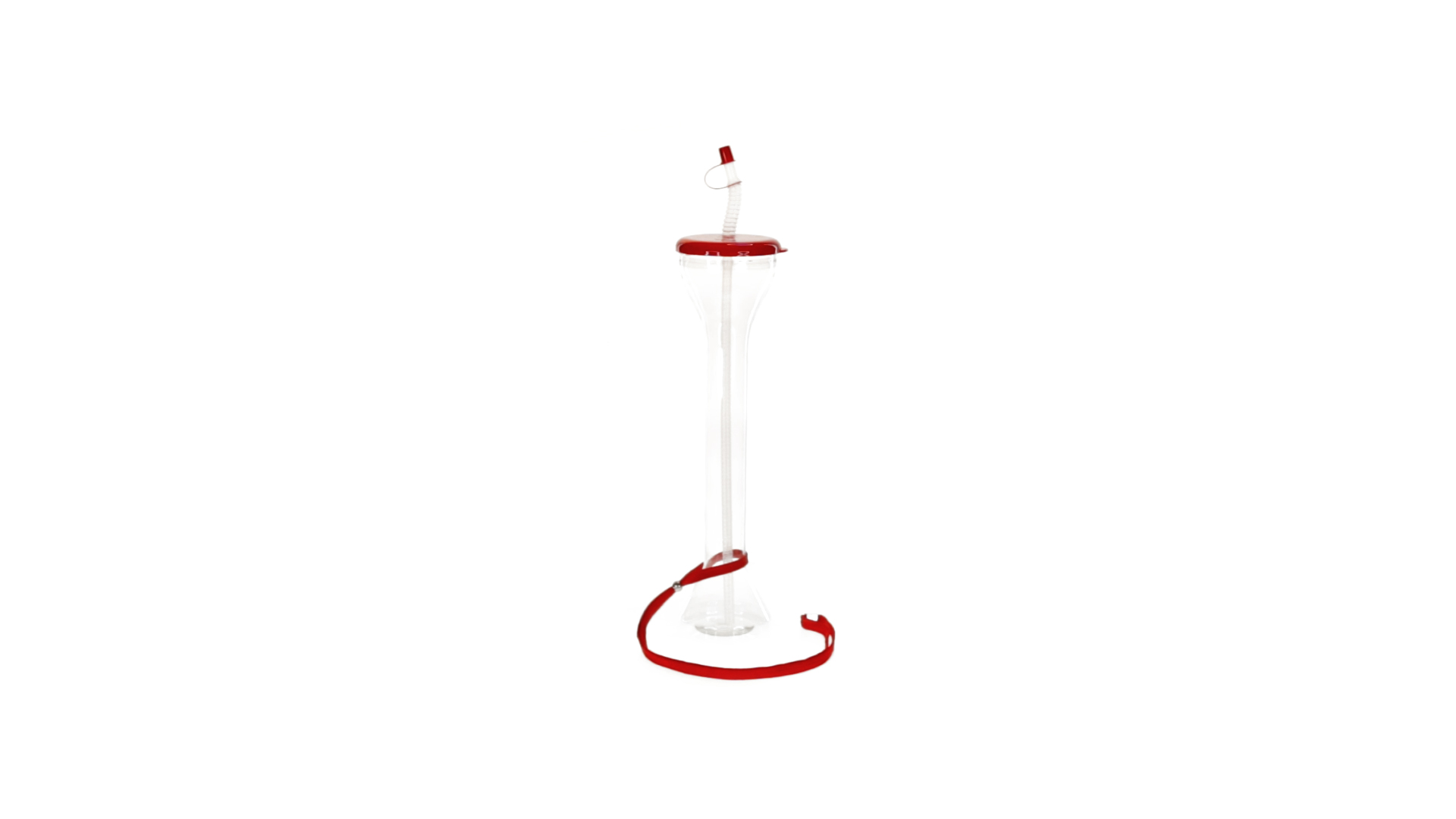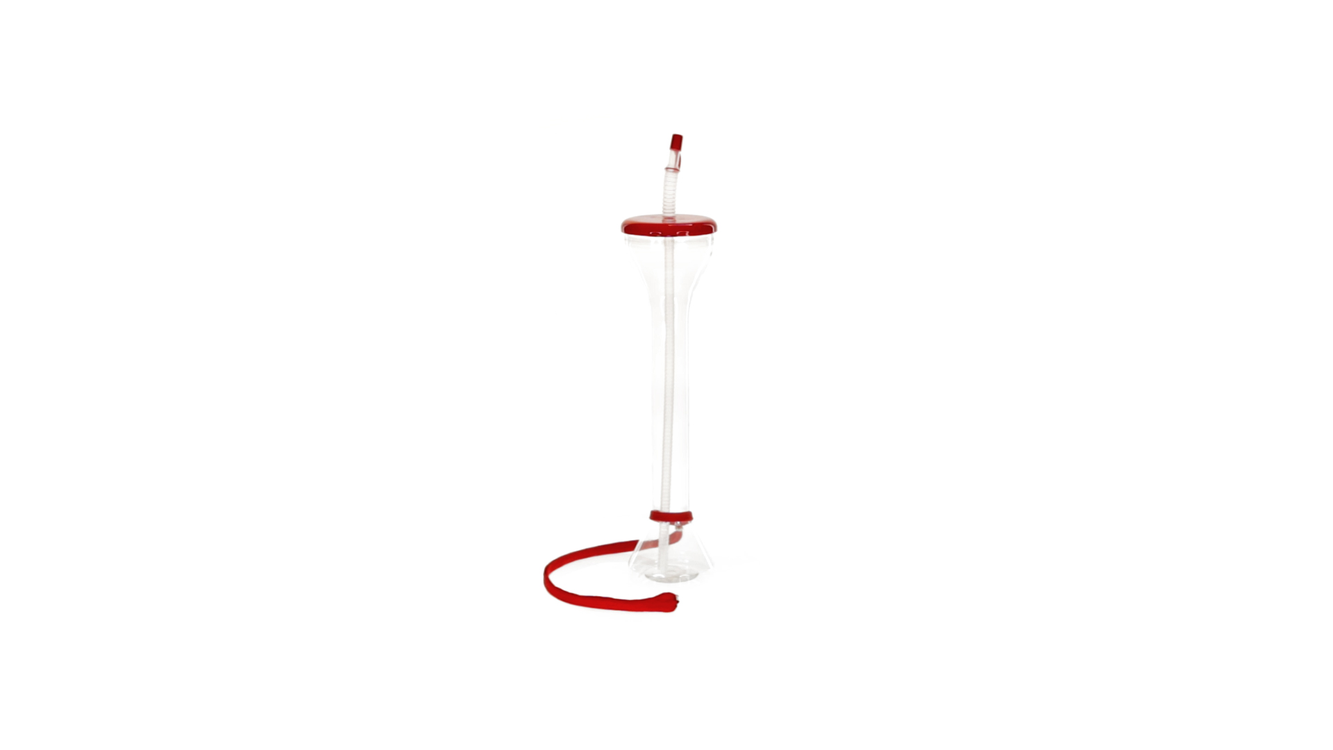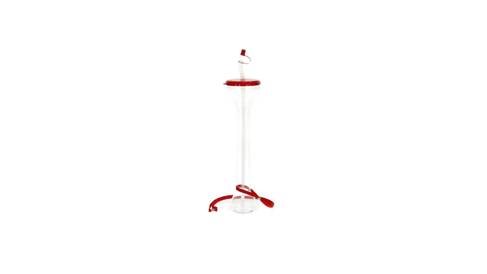 Aussergewöhnlicher PET-Becher mit 650 ml Fassungsvermögen, transparentem Körper und Kontrastdetails in verschiedenen kräftigen Farben. Mit flexiblem Strohhalm sowie Polyester-Trageschlaufe mit Stopper.
