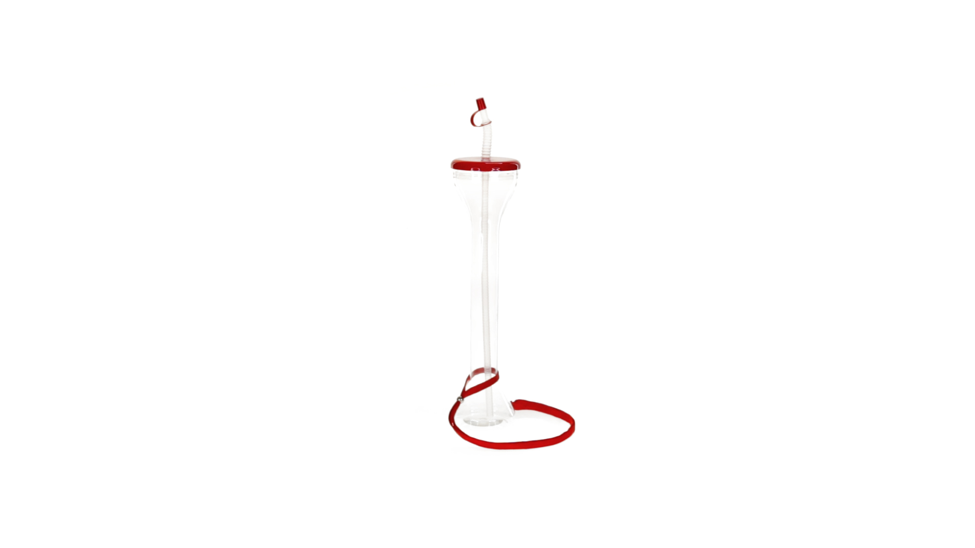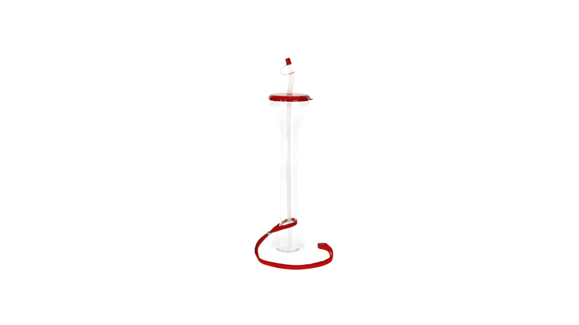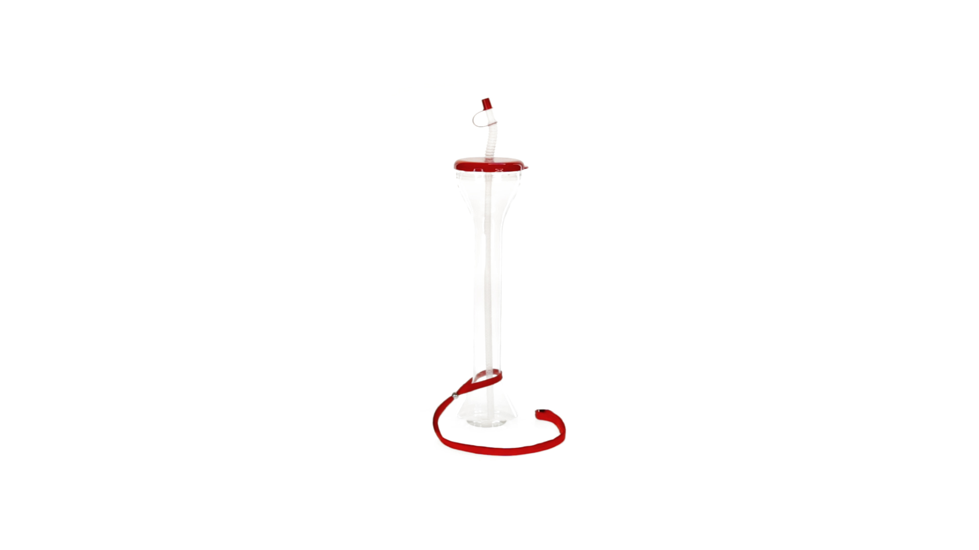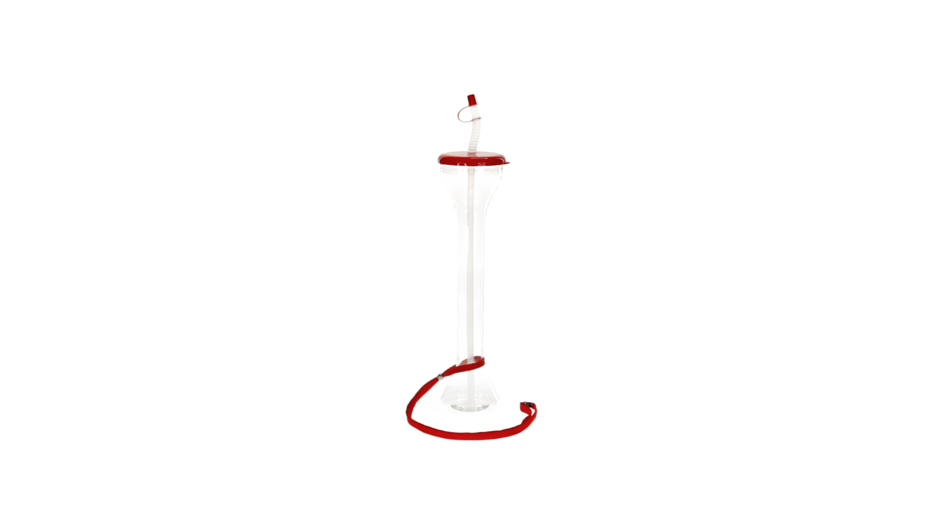 Aussergewöhnlicher PET-Becher mit 650 ml Fassungsvermögen, transparentem Körper und Kontrastdetails in verschiedenen kräftigen Farben. Mit flexiblem Strohhalm sowie Polyester-Trageschlaufe mit Stopper.