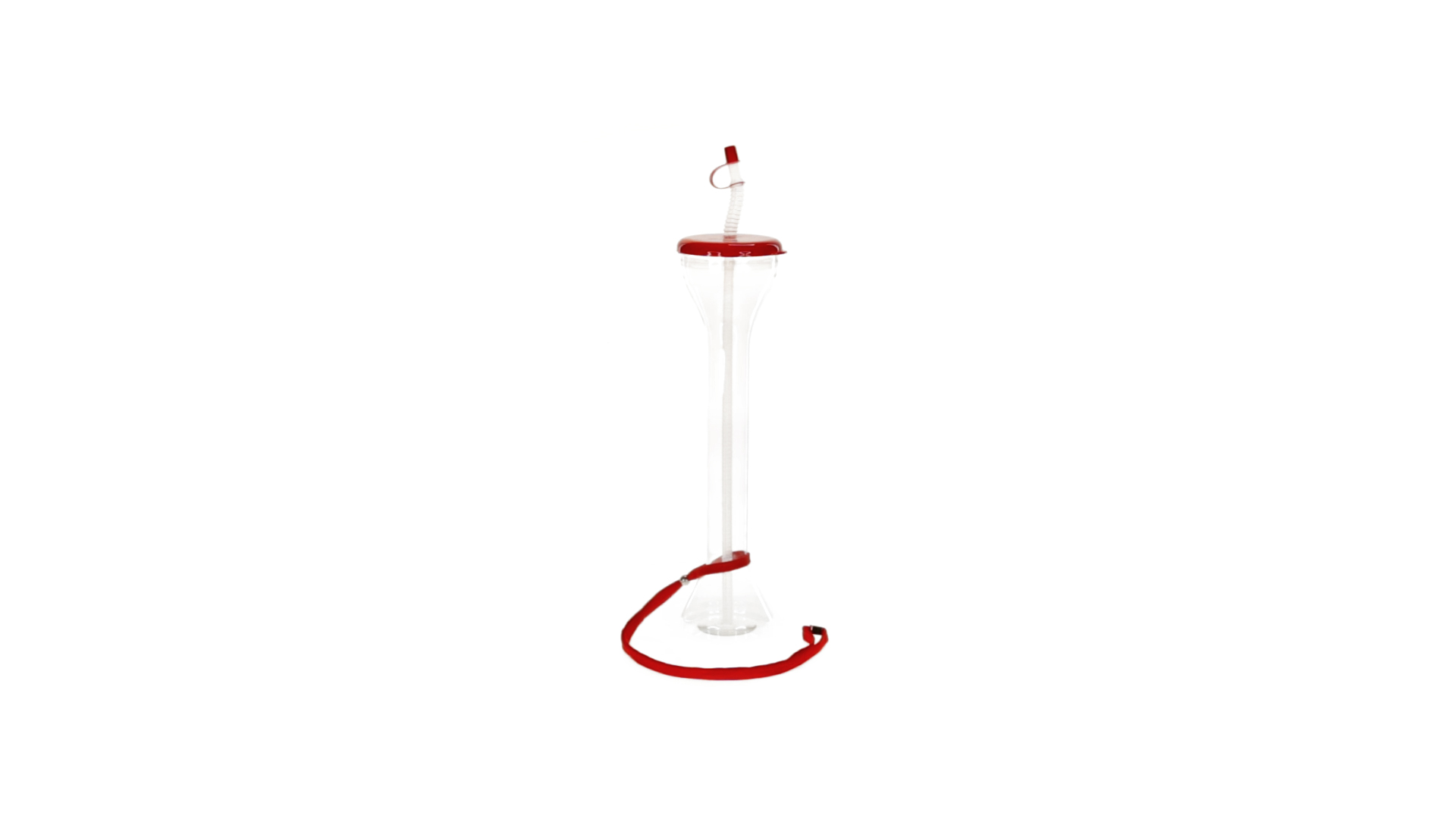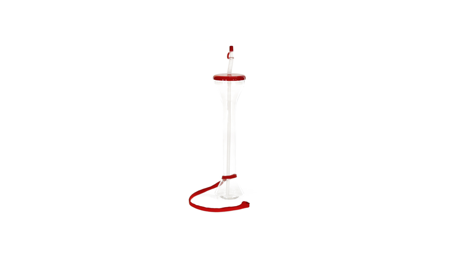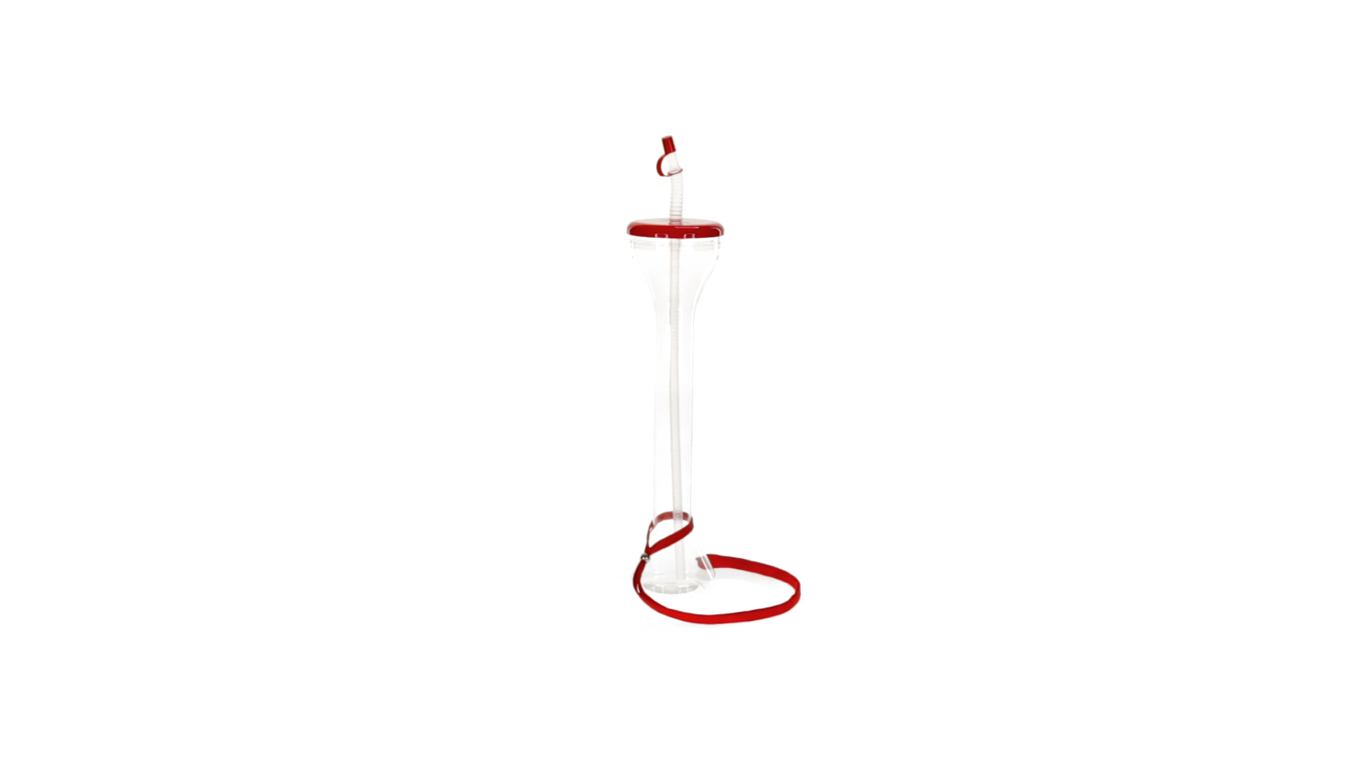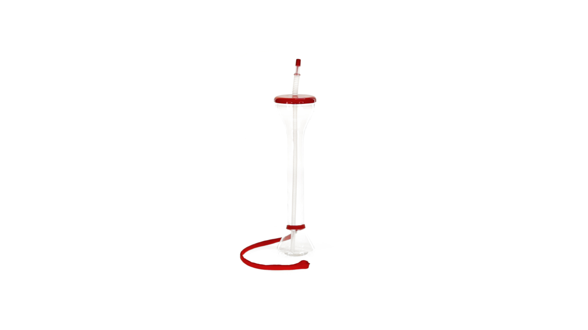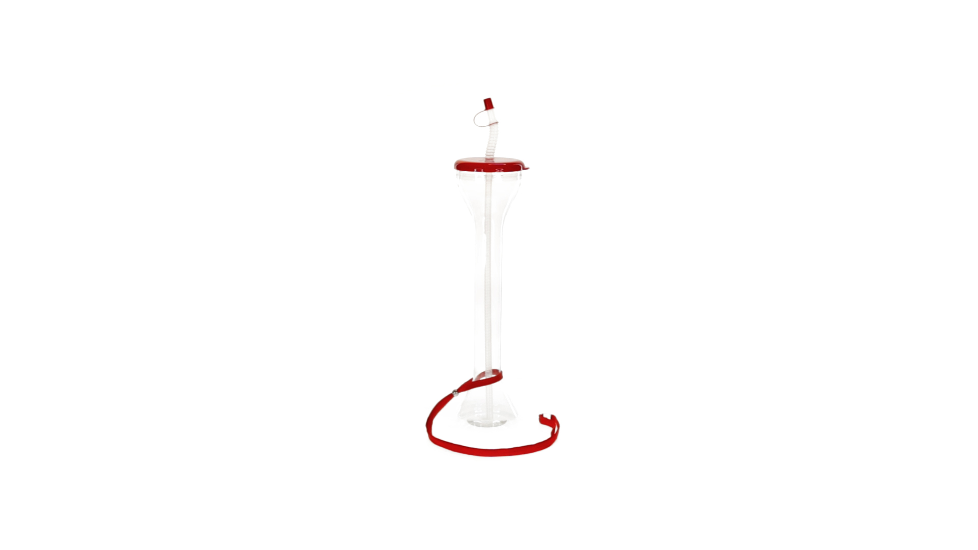 Aussergewöhnlicher PET-Becher mit 650 ml Fassungsvermögen, transparentem Körper und Kontrastdetails in verschiedenen kräftigen Farben. Mit flexiblem Strohhalm sowie Polyester-Trageschlaufe mit Stopper.