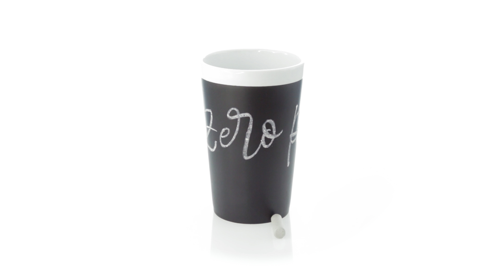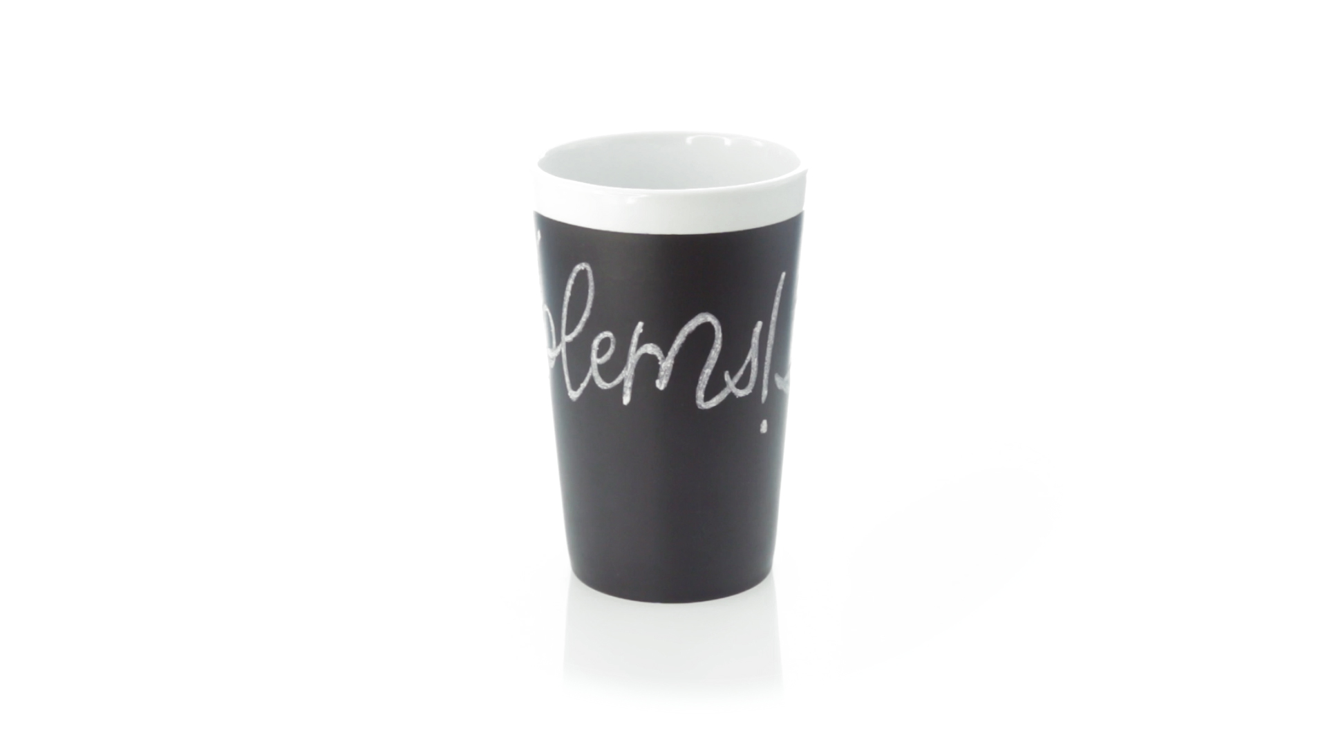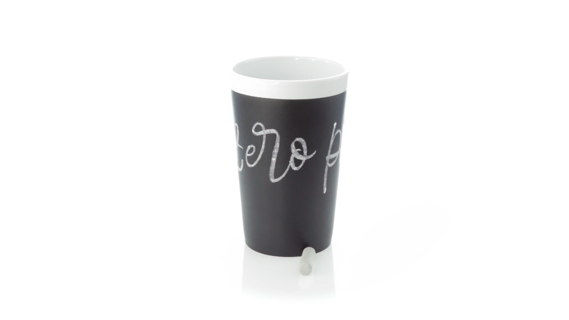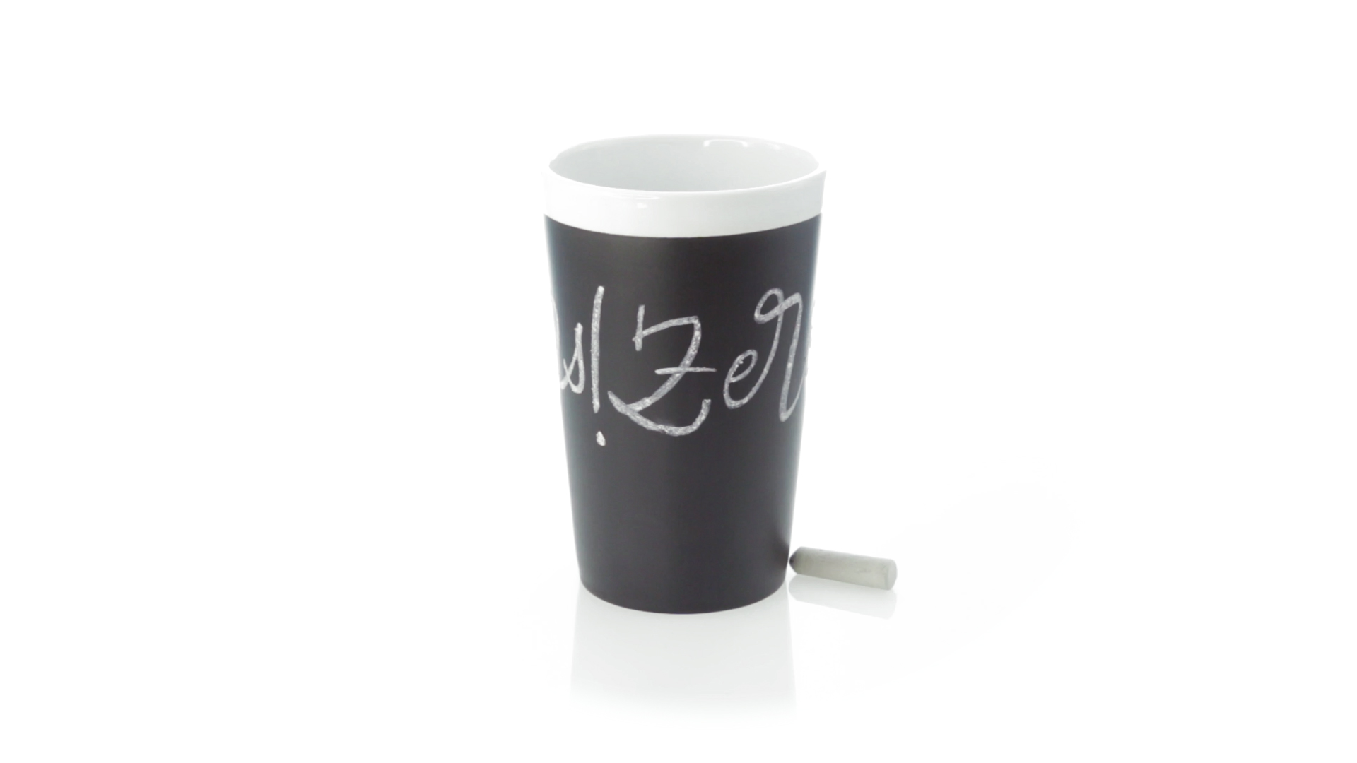 Keramiktasse mit 360 ml Fassungsvermögen und schwarzer Schieferfläche zum Bemalen. Kreide inklusive. Präsentiert in einer individuellen Box.