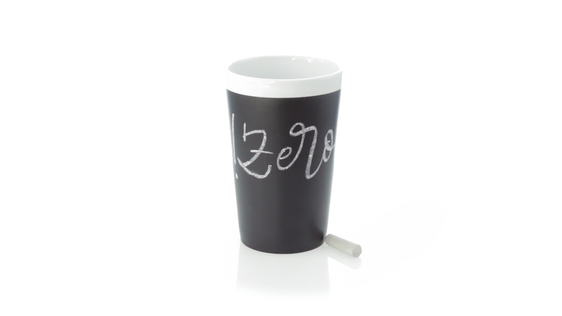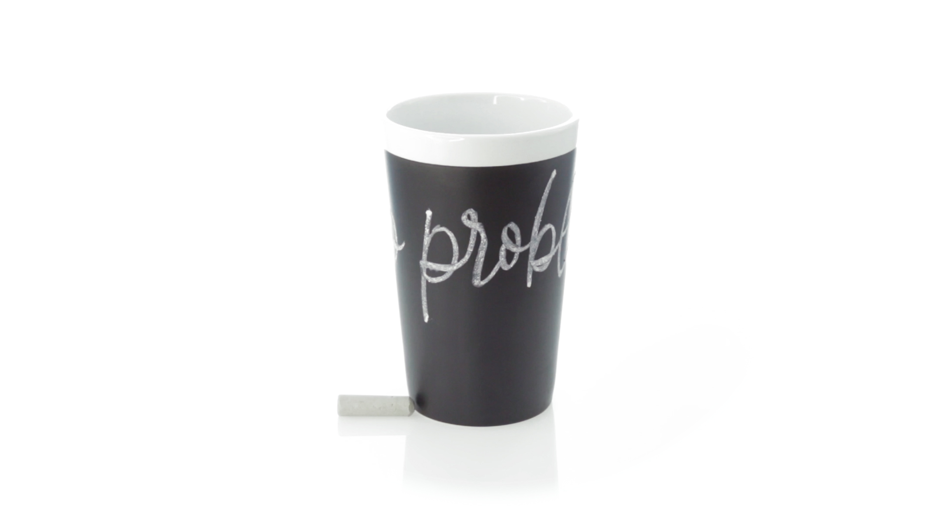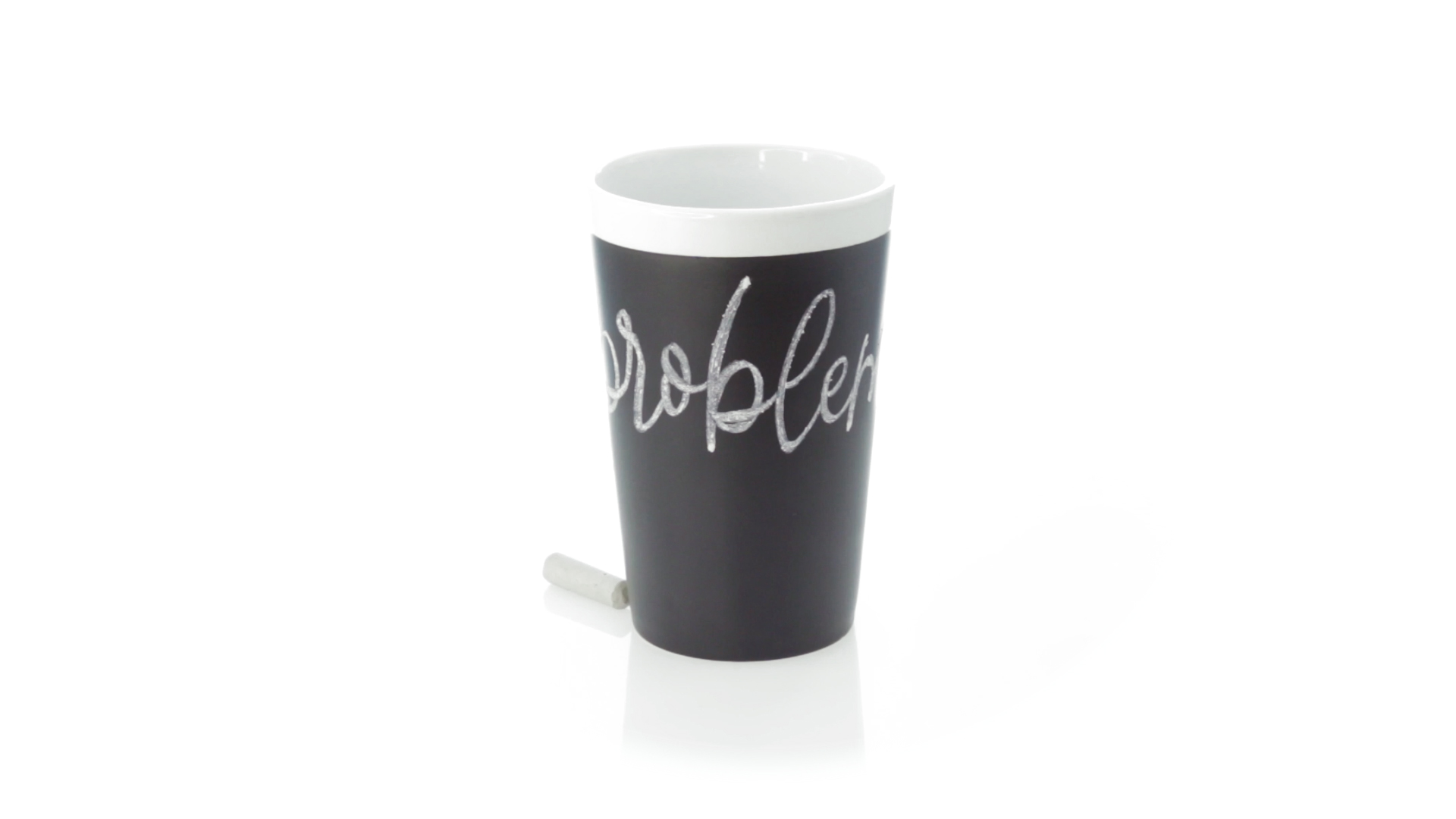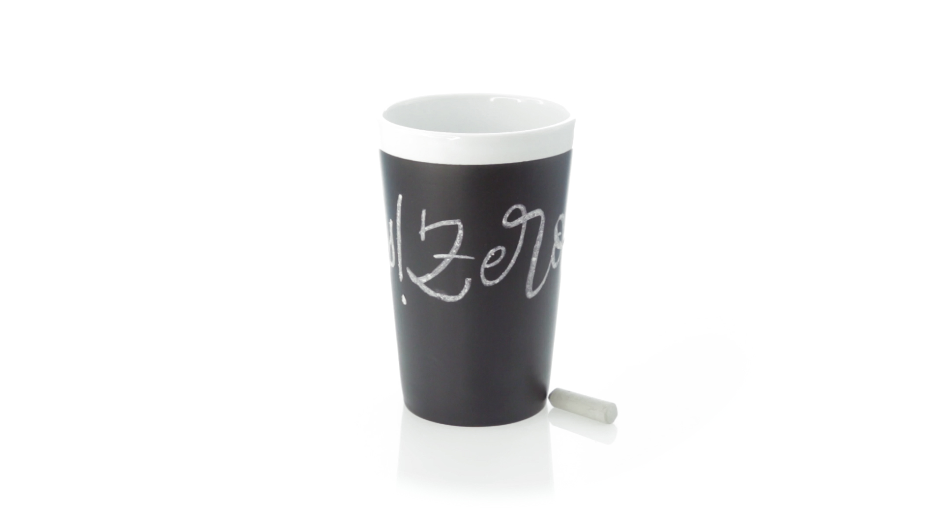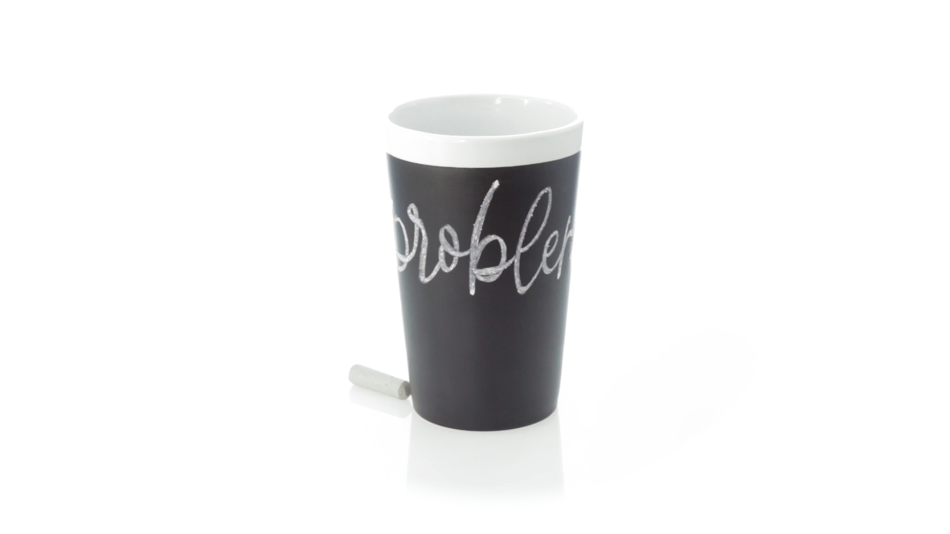 Keramiktasse mit 360 ml Fassungsvermögen und schwarzer Schieferfläche zum Bemalen. Kreide inklusive. Präsentiert in einer individuellen Box.