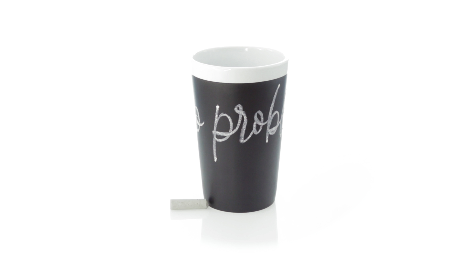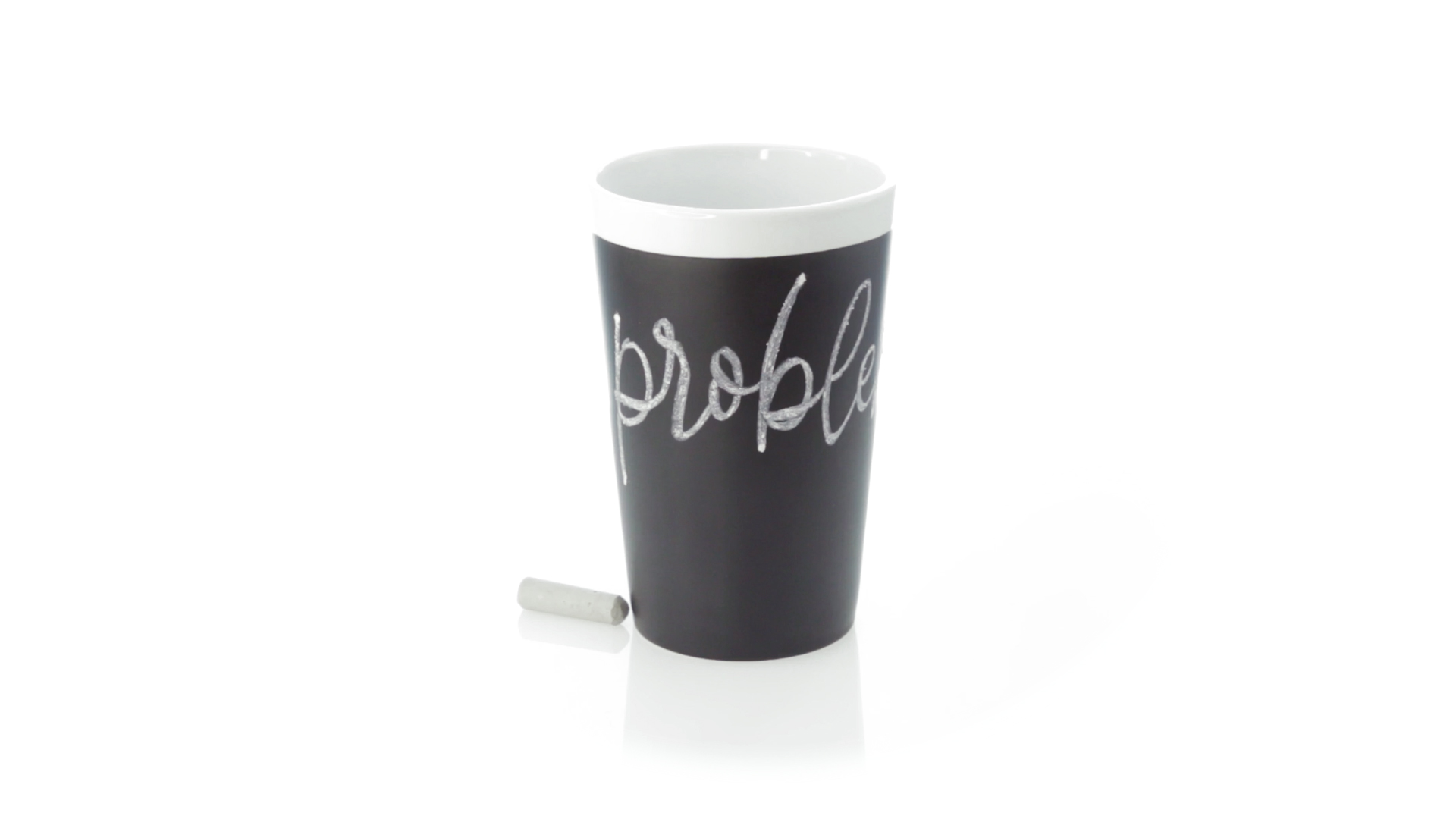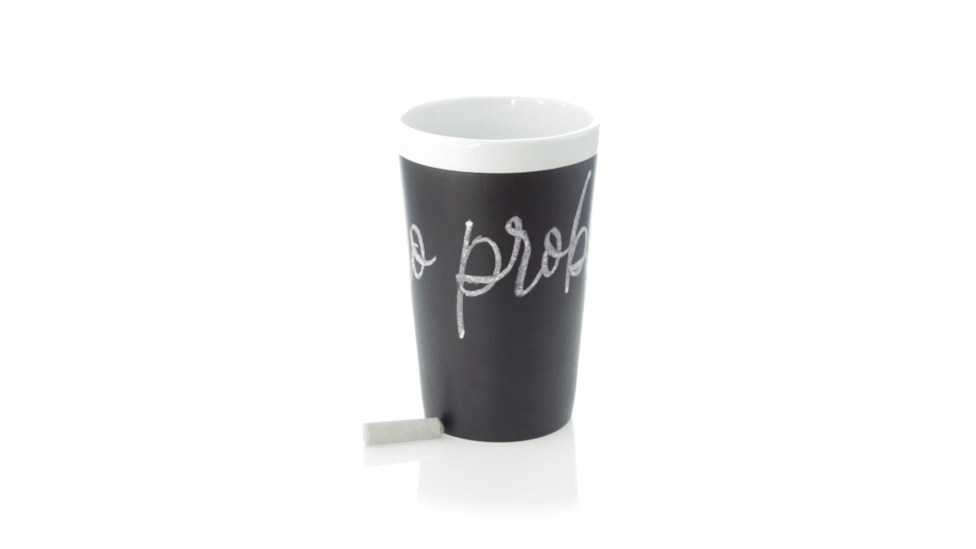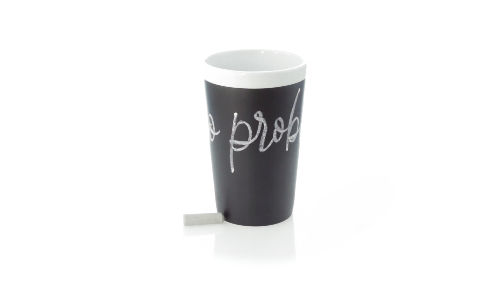 Keramiktasse mit 360 ml Fassungsvermögen und schwarzer Schieferfläche zum Bemalen. Kreide inklusive. Präsentiert in einer individuellen Box.