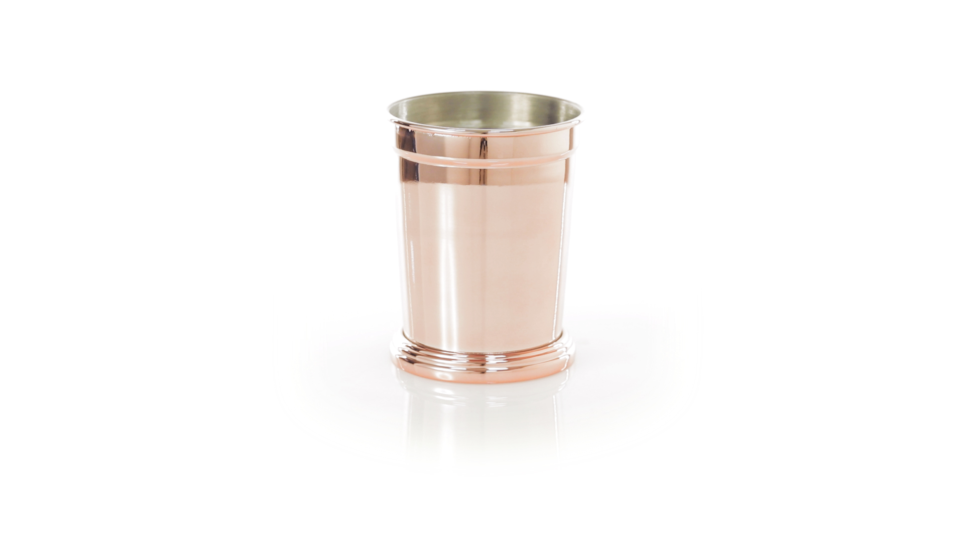 Becher aus rostfreiem Stahl mit 400 ml Fassungsvermögen und Aussenbeschichtung aus verzinktem Kupfer. Innovatives Design und präsentiert in einer individuellen Box.