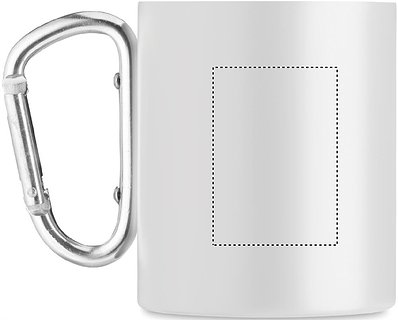 Doppelwandiger Trinkbecher aus Edelstahl. Henkel mit Karabiner. Füllmenge: 300 ml. Der Karabiner ist NICHT als Sicherung beim Klettern geeignet.