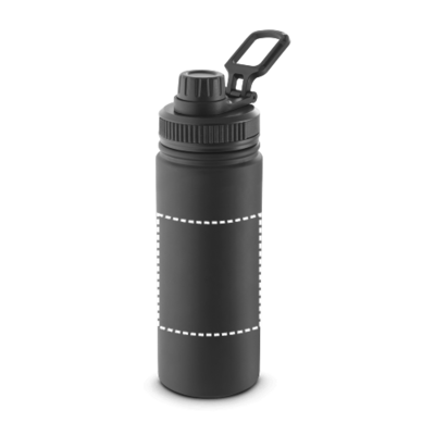 Doppelwandige Flasche aus (90% recyceltem) Edelstahl und PP-Verschluss. Der Deckel verfügt über eine Schraube und einen Griff für den einfachen Transport. Fassungsvermögen: bis zu 570 mL. Geliefert in einem Geschenkkarton aus Kraftpapier. ø73 x 227 mm