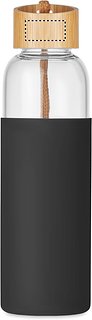 Trinkflasche aus Glas mit Silikon-Schutzhülle. Deckel aus Bambus und Baumwoll-Schlaufe. Nicht geeignet für kohlensäurehaltige Getränke. Auslaufsicher. Füllmenge: 500 ml. Bambus ist ein natürliches Produkt, es kann daher zu leichten Abweichungen in Farbe, Dekor und Massen kommen.