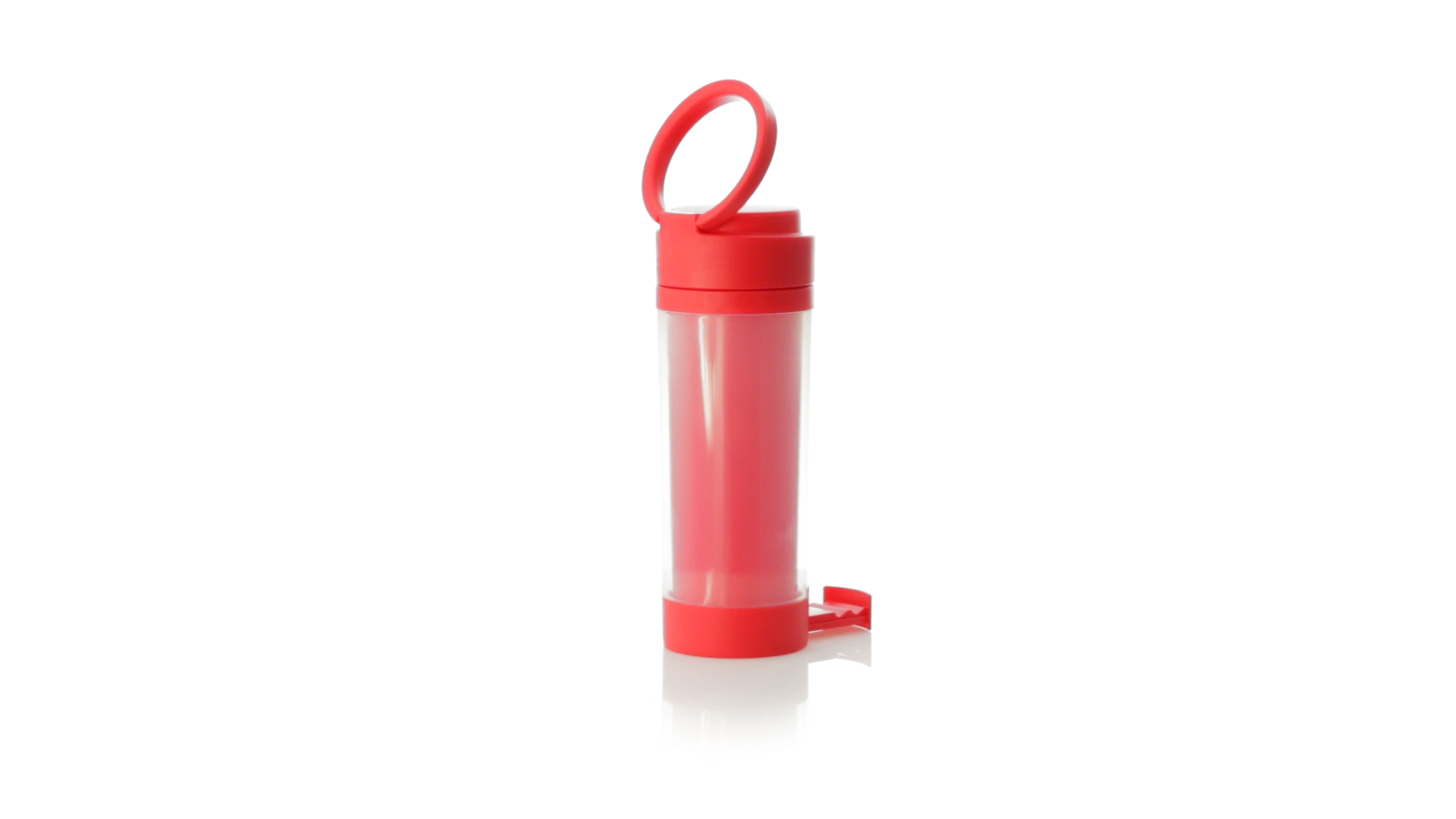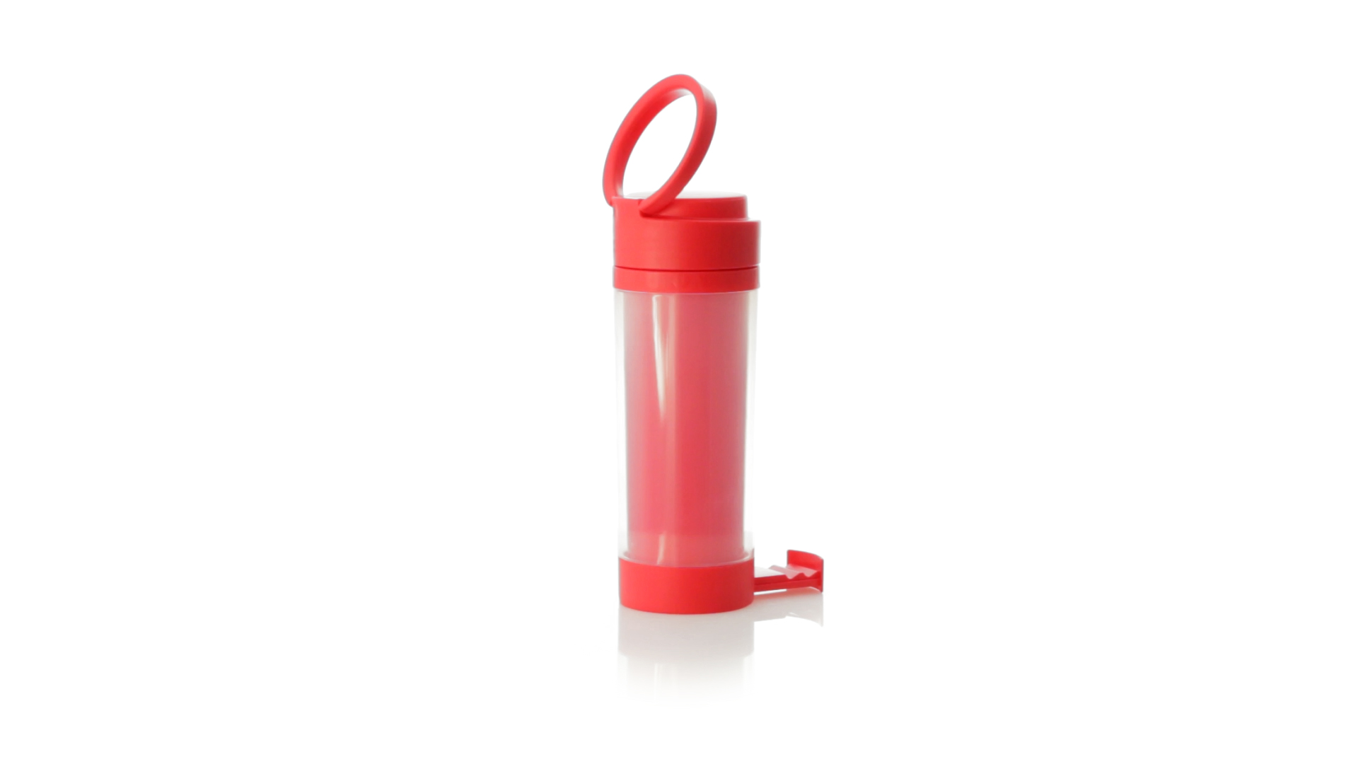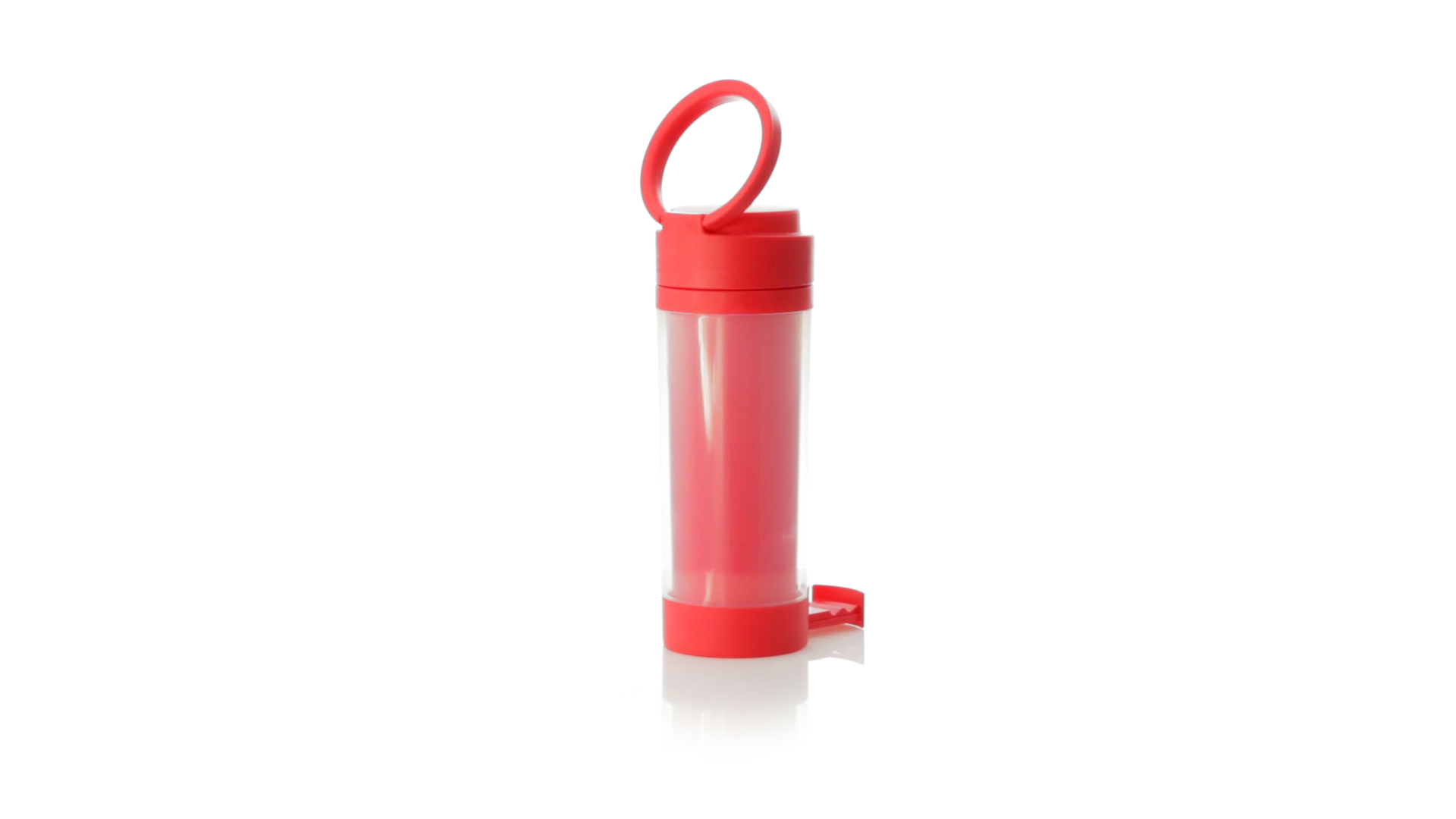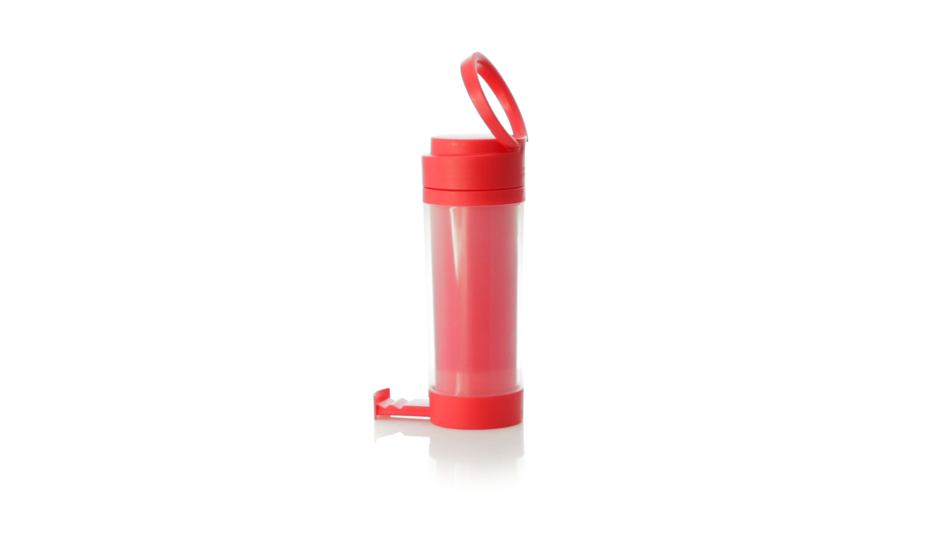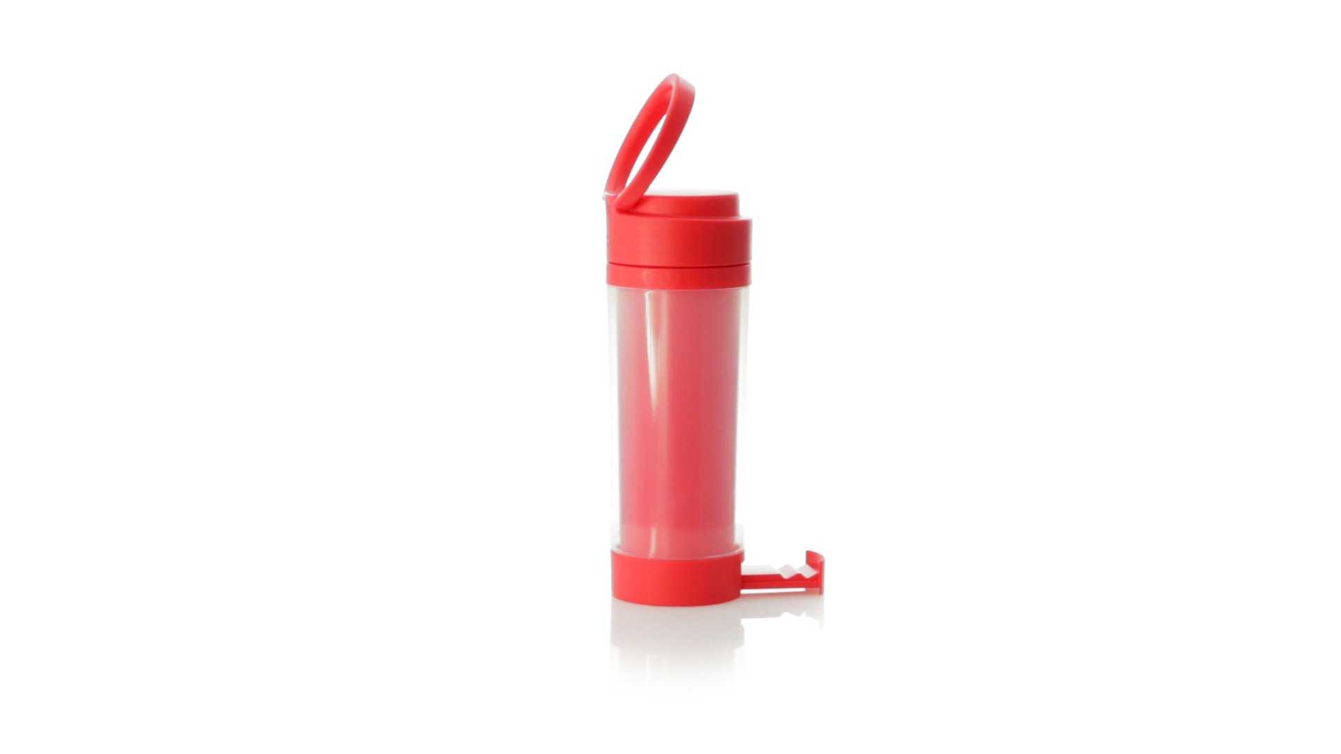 Originelle Trinkflasche mit im Boden integriertem Mobiltelefon-Ständer. Flasche mit 390 ml Fassungsvermögen und transparentem Körper aus Polypropylen (PP) sowie farblich passendem Interieur. Mit Sicherheitsverschluss und Tragegriff. Präsentiert in einer attraktiven Designbox.