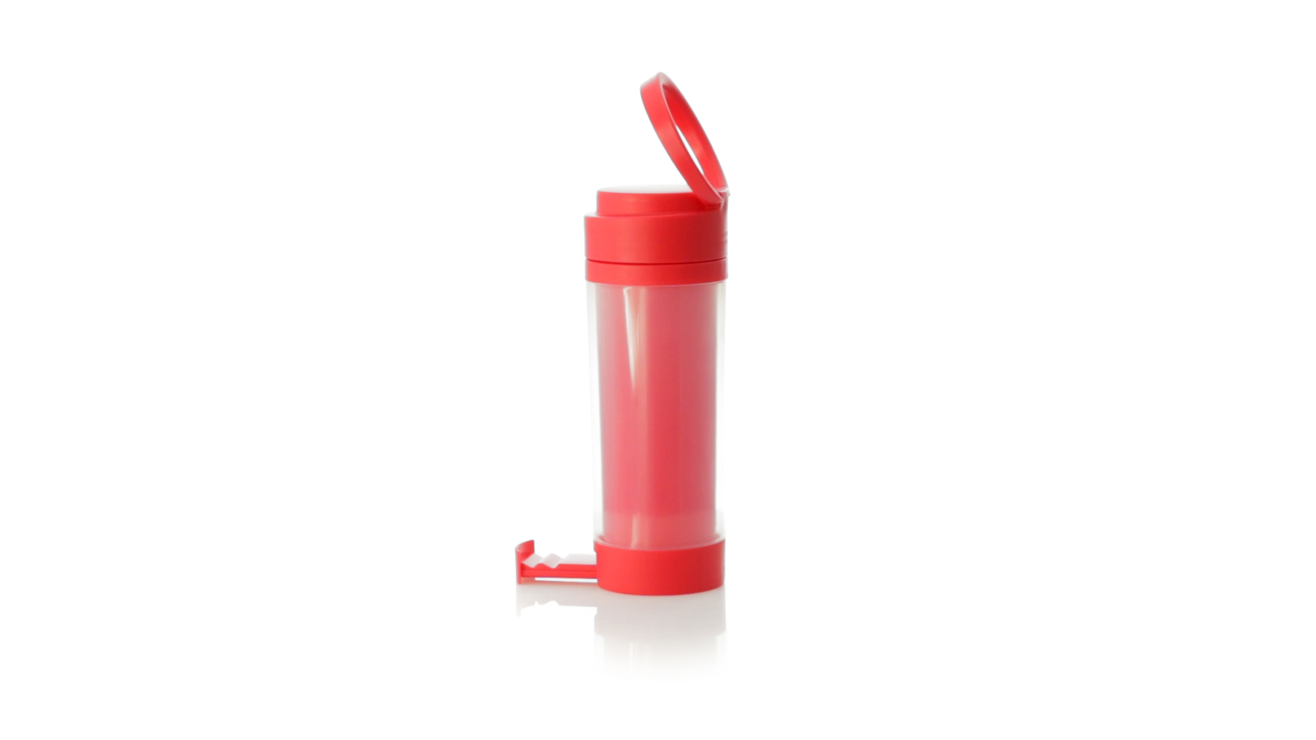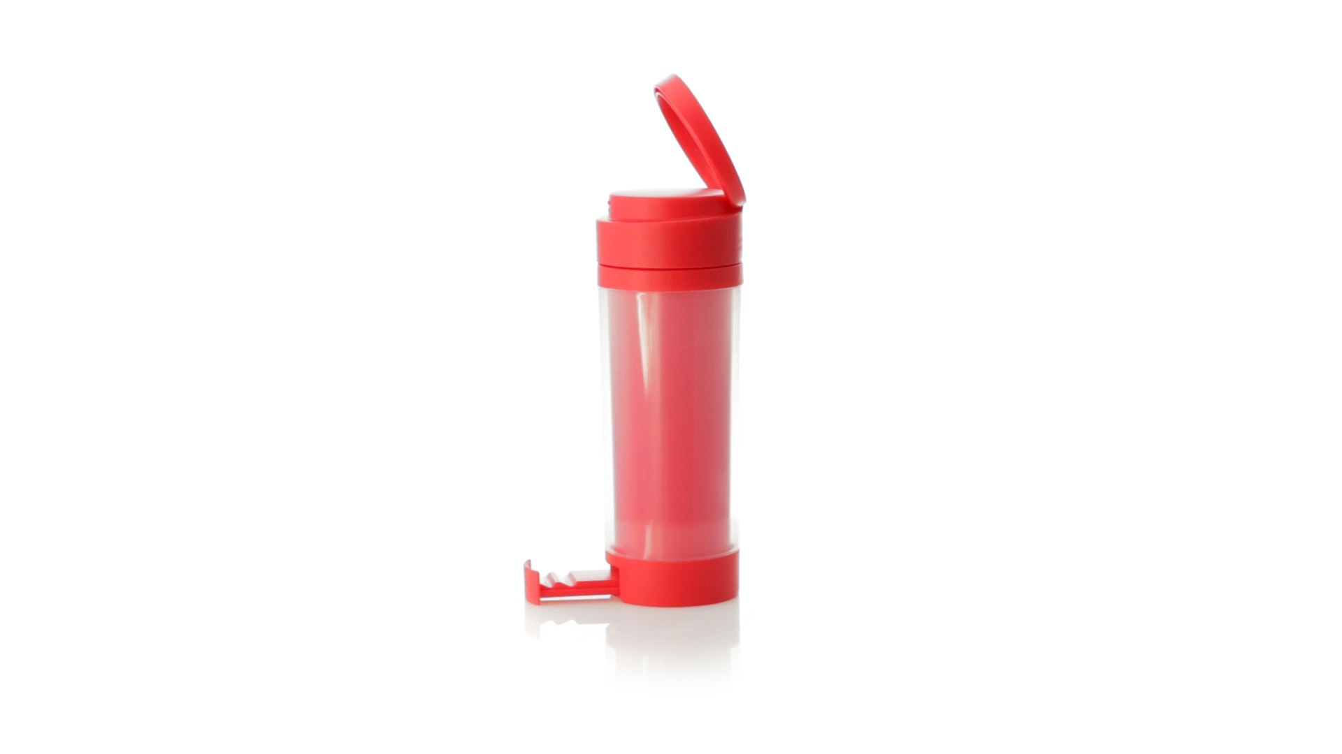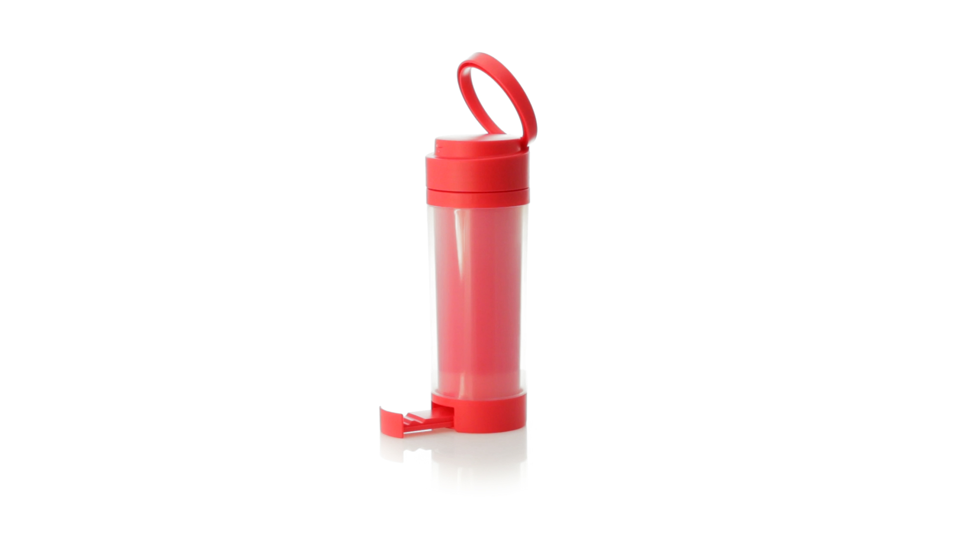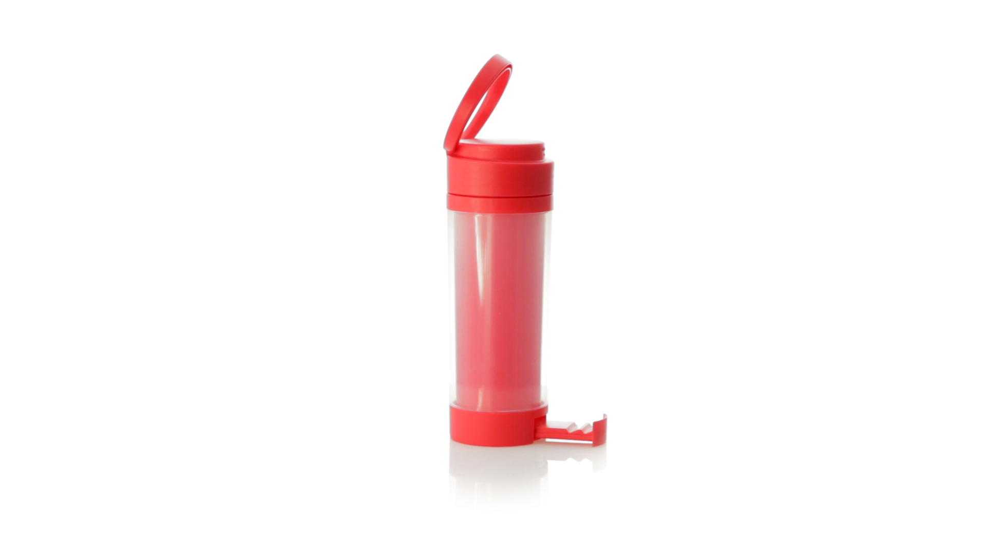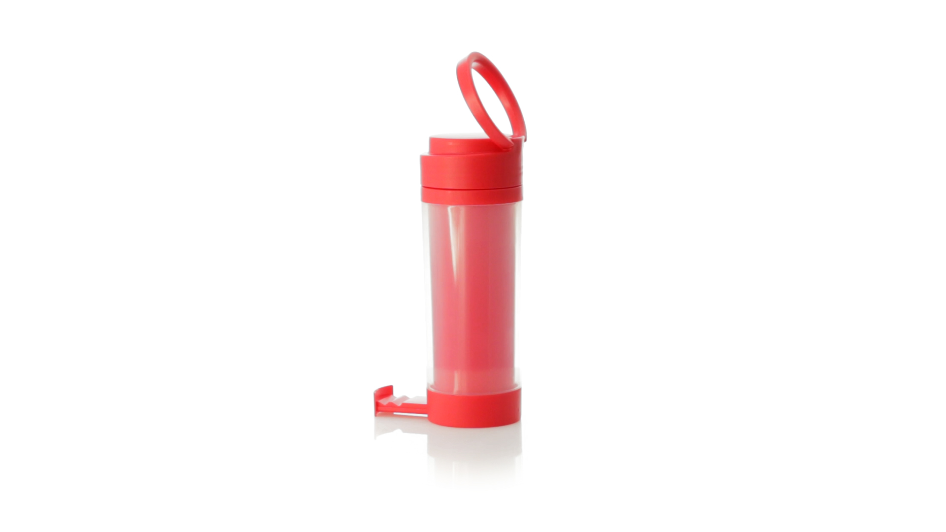 Originelle Trinkflasche mit im Boden integriertem Mobiltelefon-Ständer. Flasche mit 390 ml Fassungsvermögen und transparentem Körper aus Polypropylen (PP) sowie farblich passendem Interieur. Mit Sicherheitsverschluss und Tragegriff. Präsentiert in einer attraktiven Designbox.