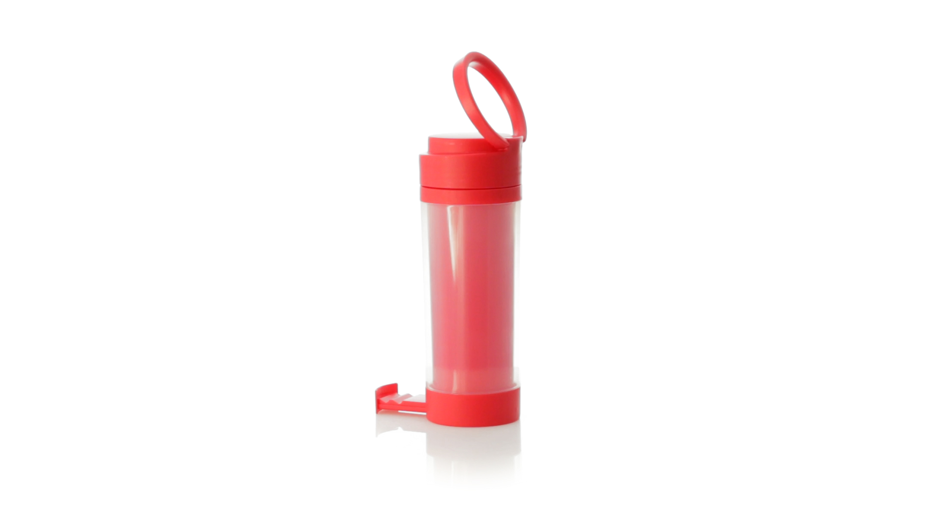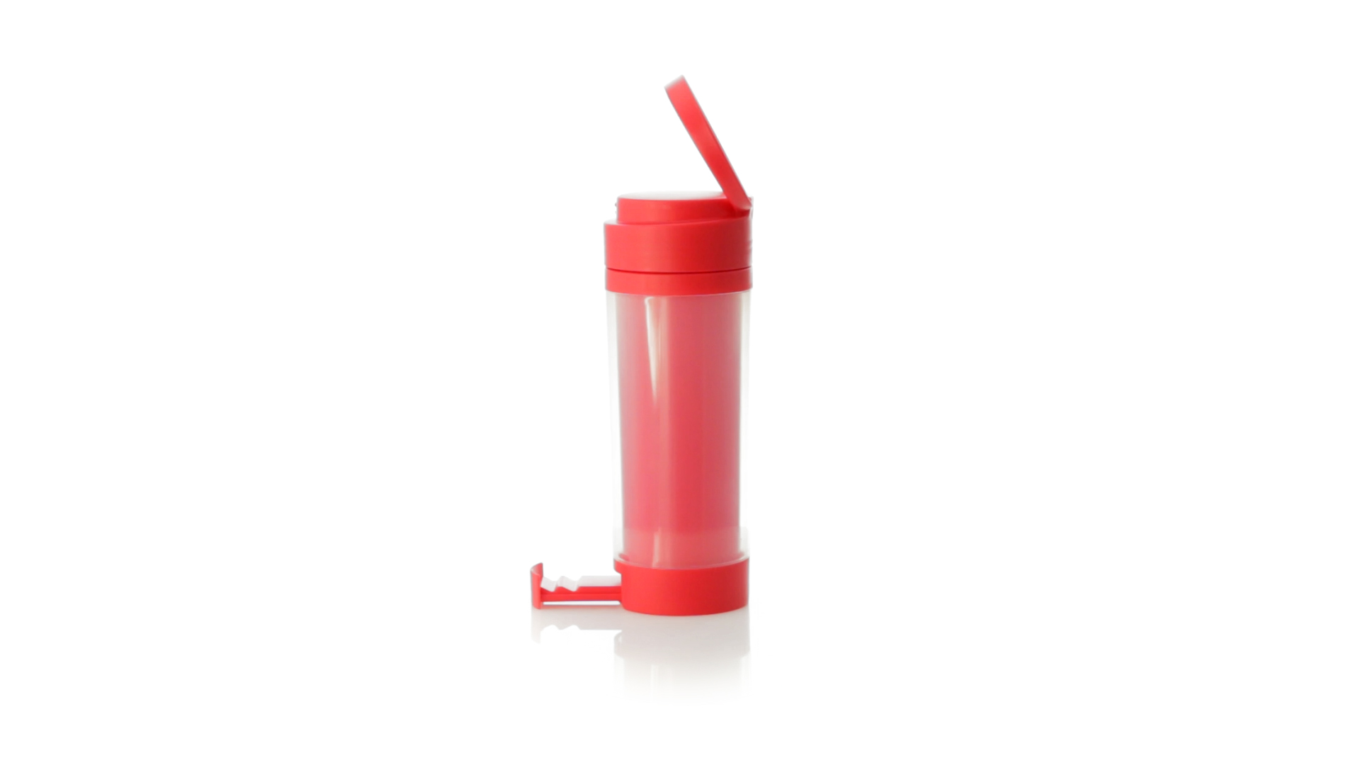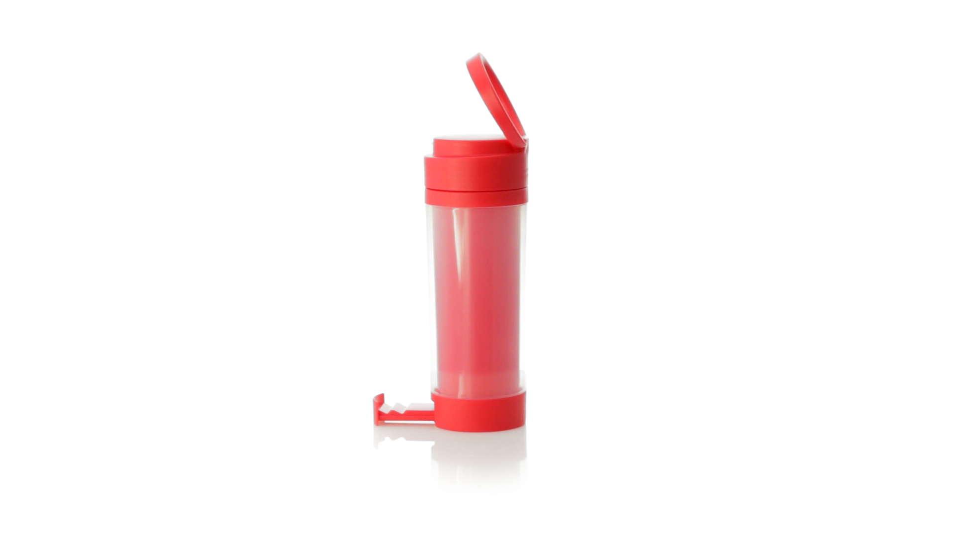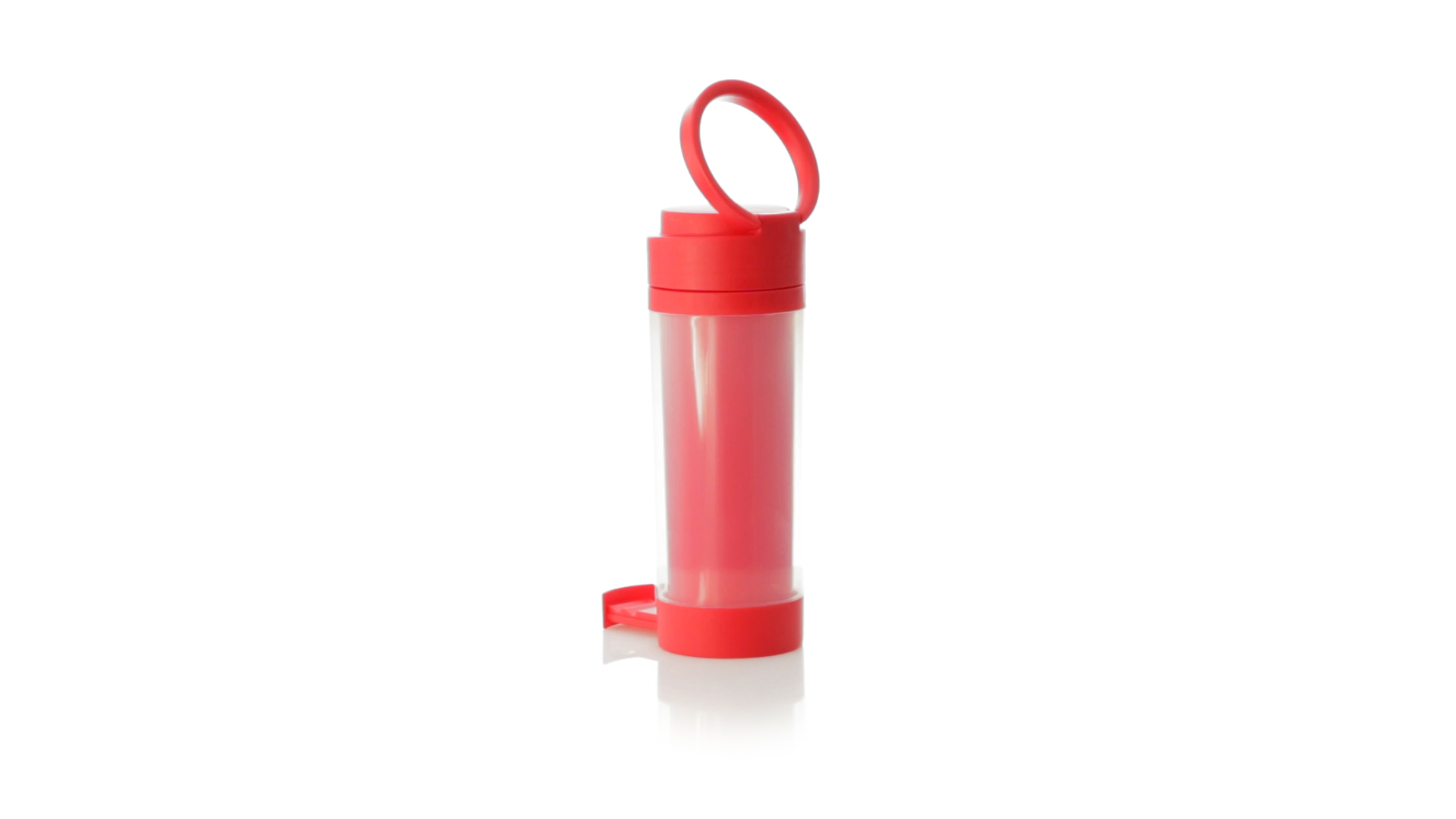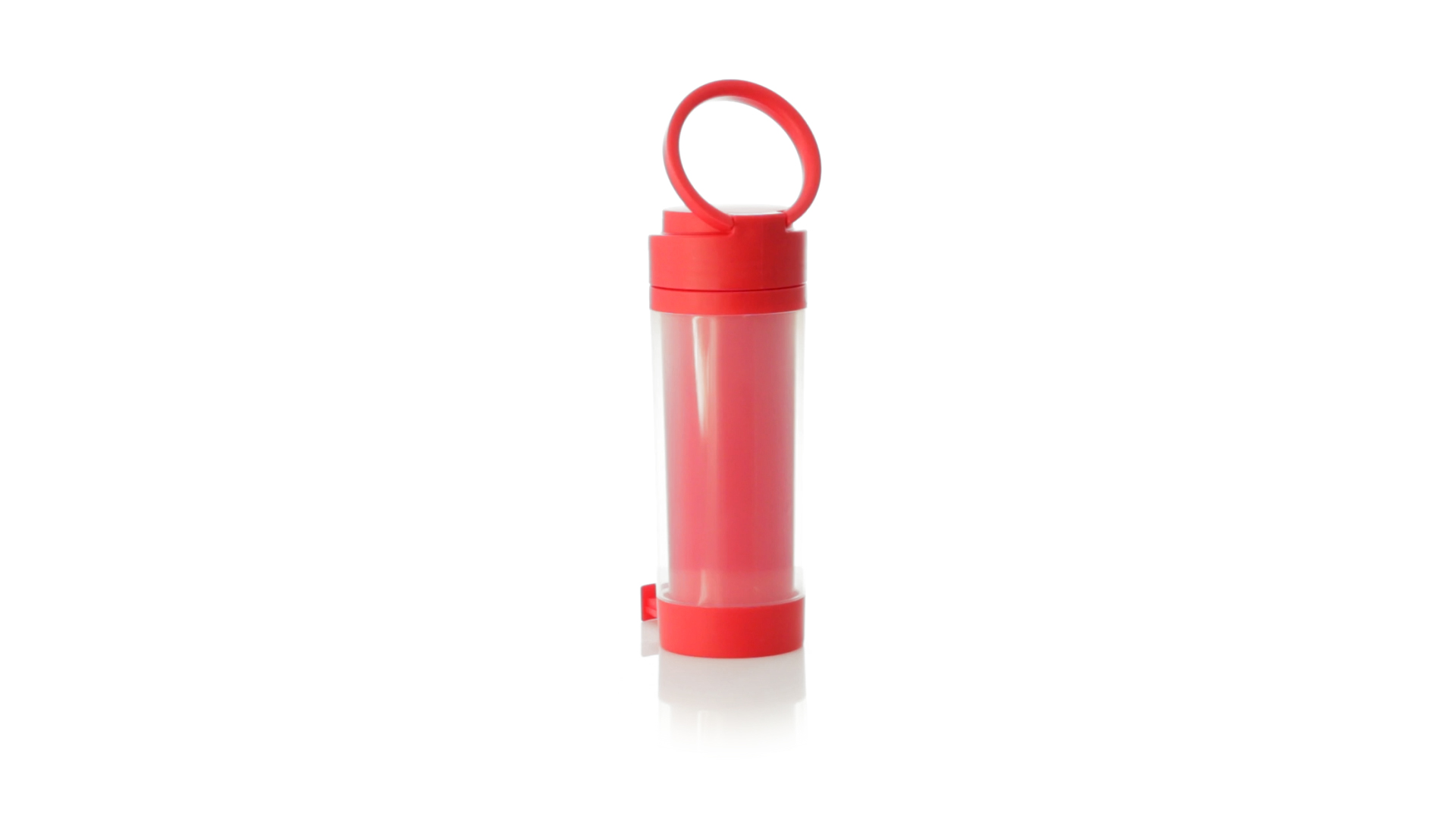 Originelle Trinkflasche mit im Boden integriertem Mobiltelefon-Ständer. Flasche mit 390 ml Fassungsvermögen und transparentem Körper aus Polypropylen (PP) sowie farblich passendem Interieur. Mit Sicherheitsverschluss und Tragegriff. Präsentiert in einer attraktiven Designbox.