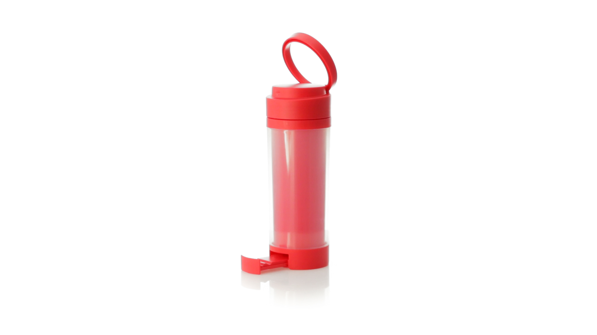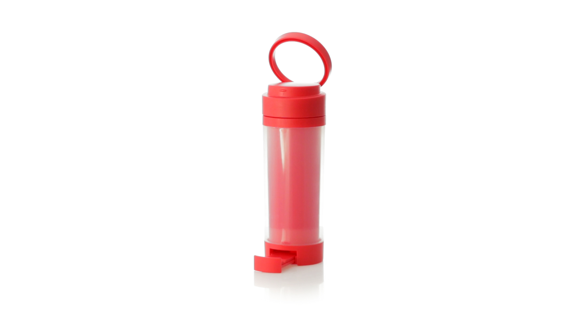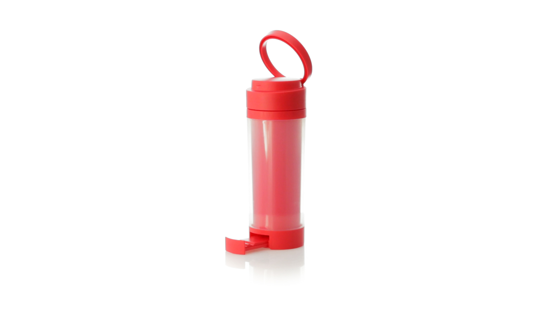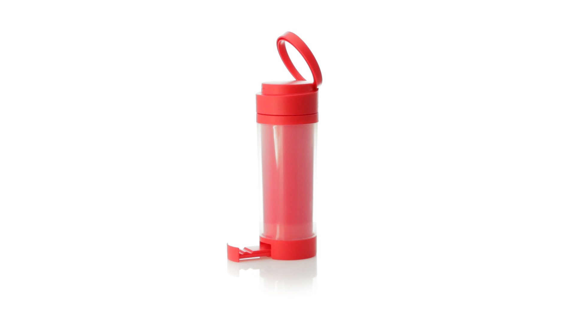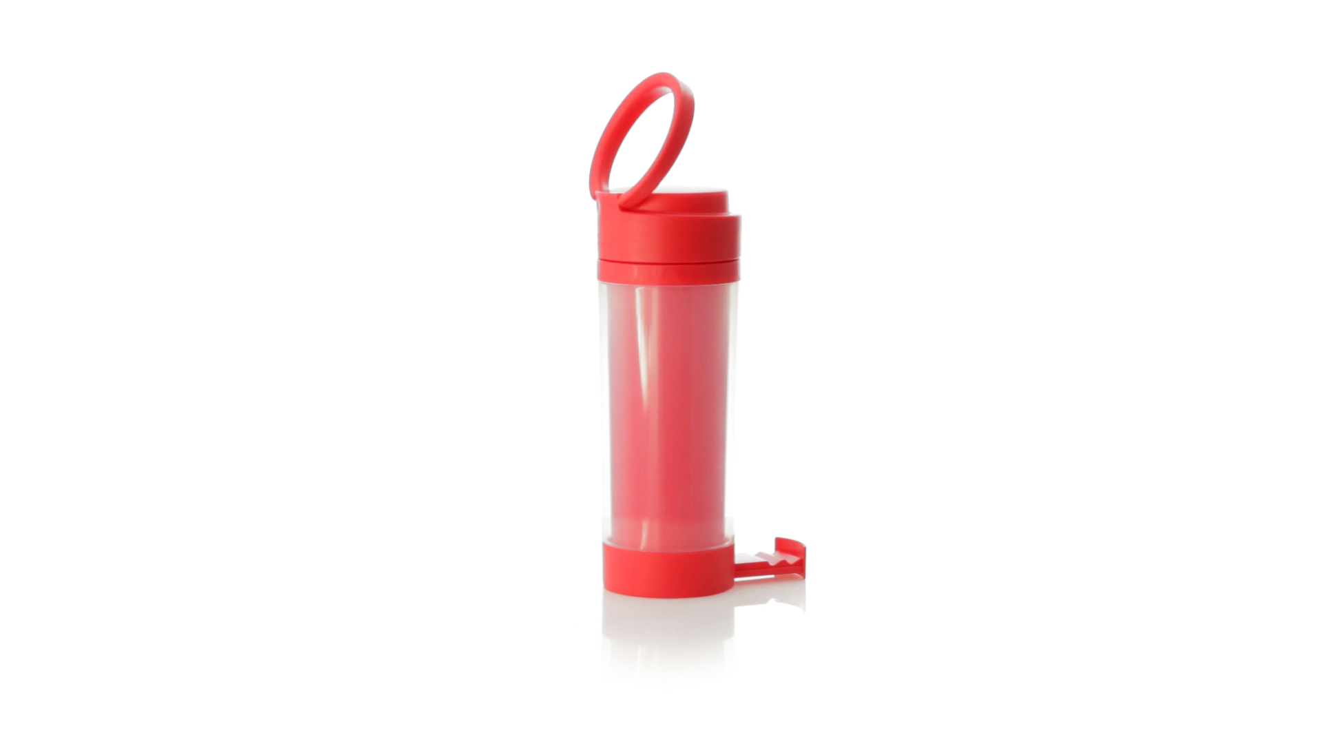 Originelle Trinkflasche mit im Boden integriertem Mobiltelefon-Ständer. Flasche mit 390 ml Fassungsvermögen und transparentem Körper aus Polypropylen (PP) sowie farblich passendem Interieur. Mit Sicherheitsverschluss und Tragegriff. Präsentiert in einer attraktiven Designbox.