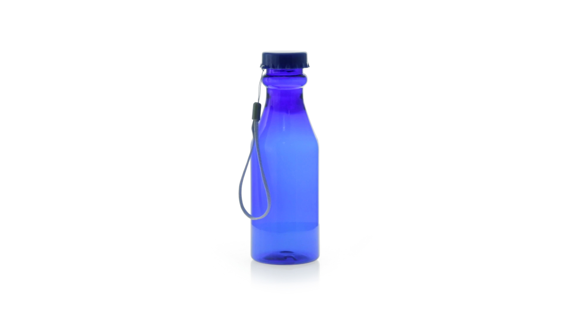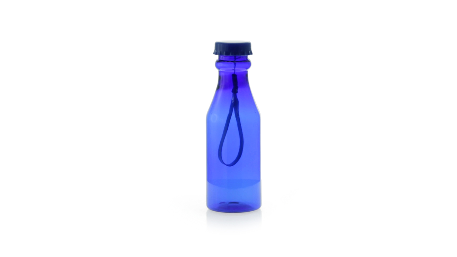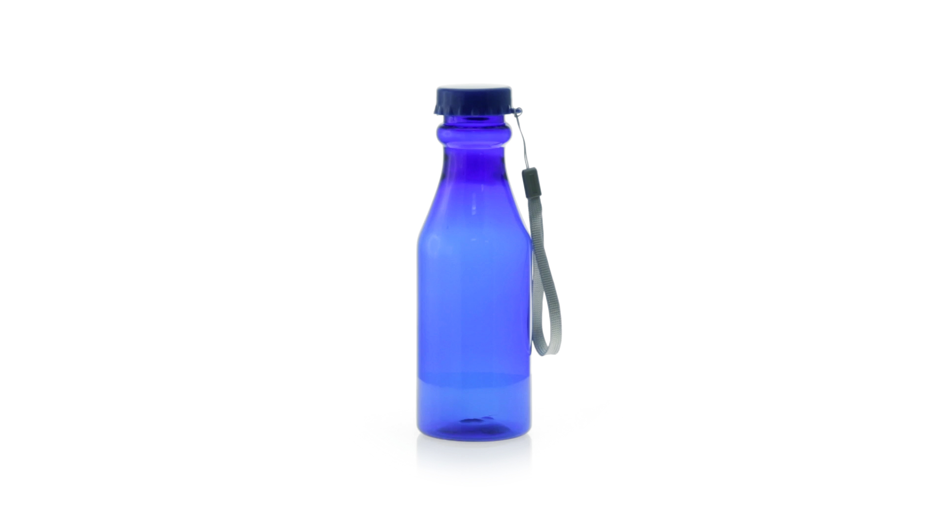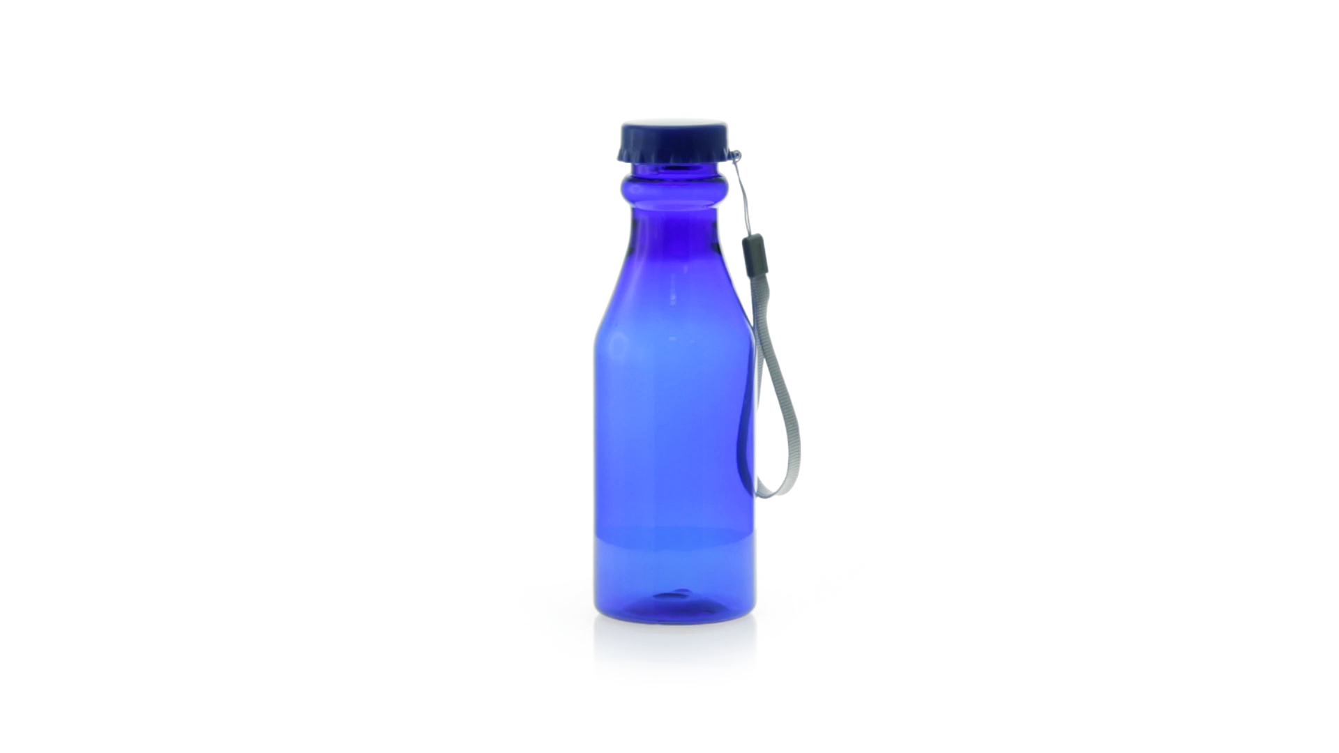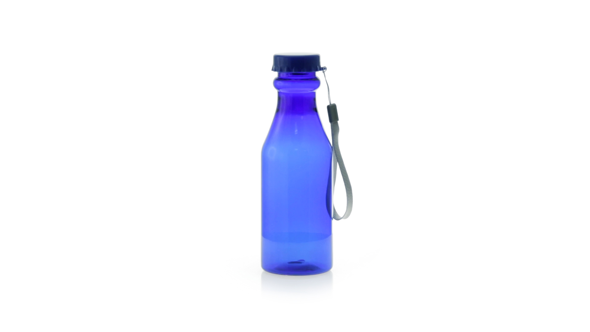 Trinkflasche mit 500 ml Fassungsvermögen und transparentem Körper aus AS-Material mit originellem Deckel in Kronkorken-Form. Mit Schraubverschluss und Trageschlaufe.