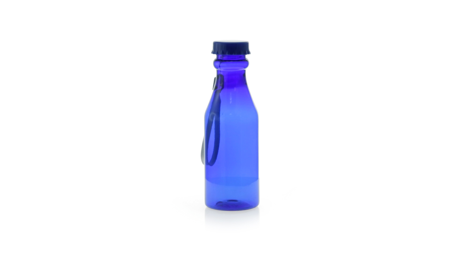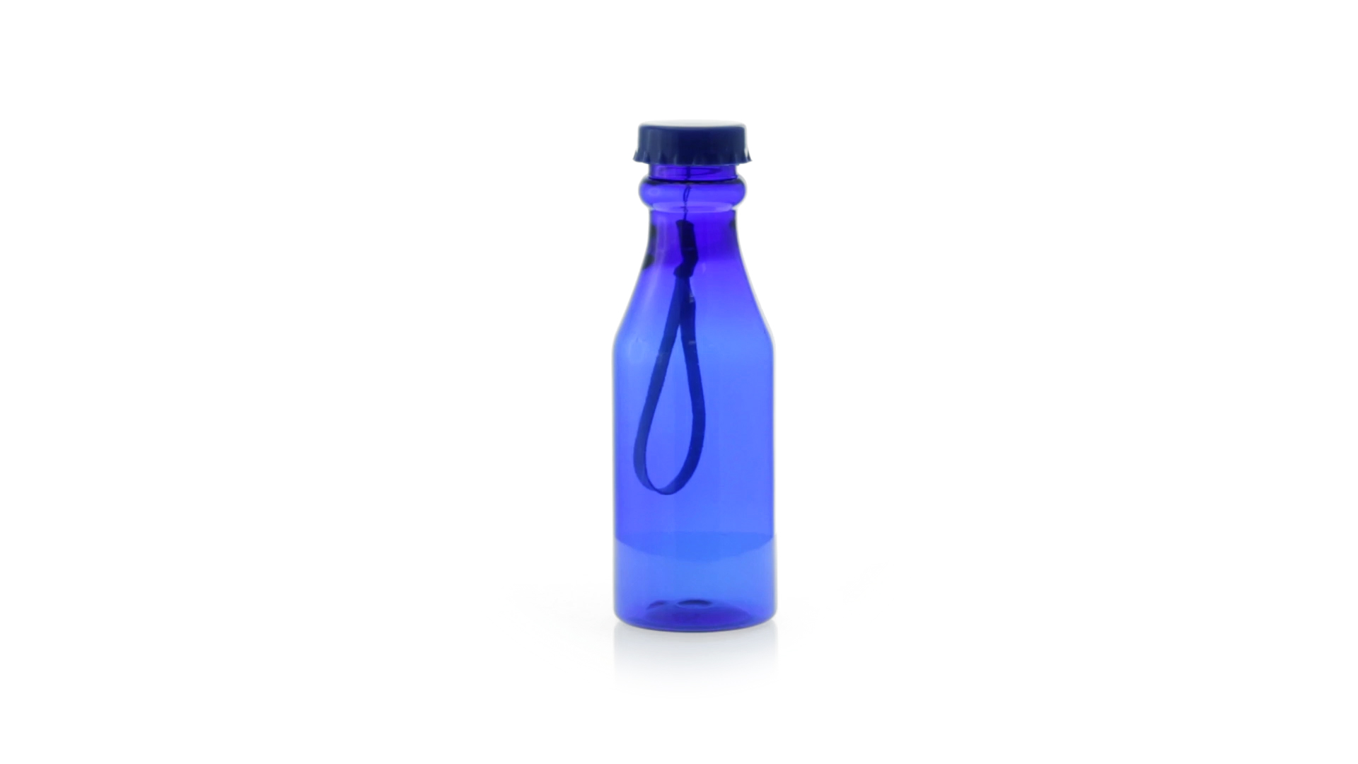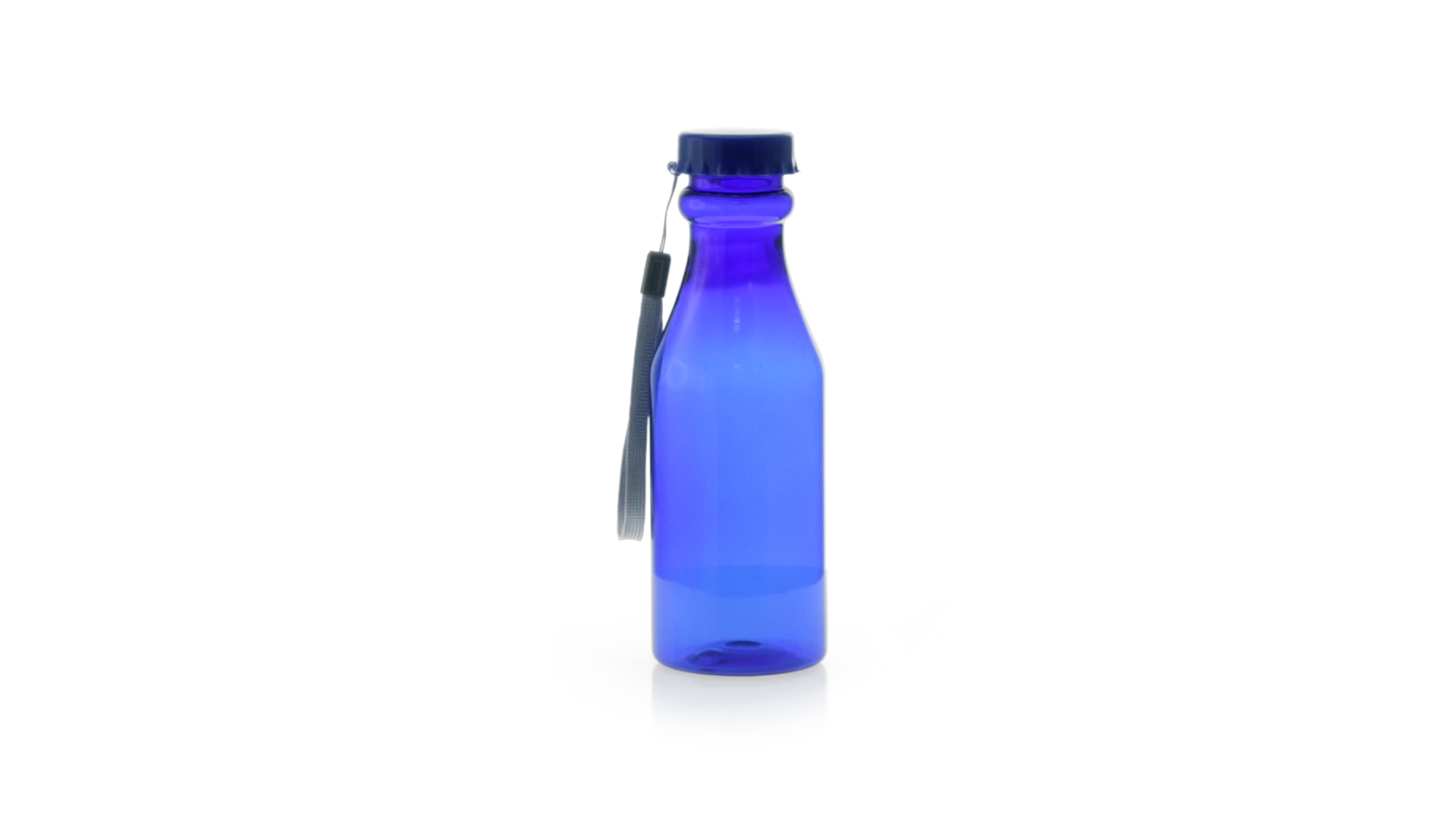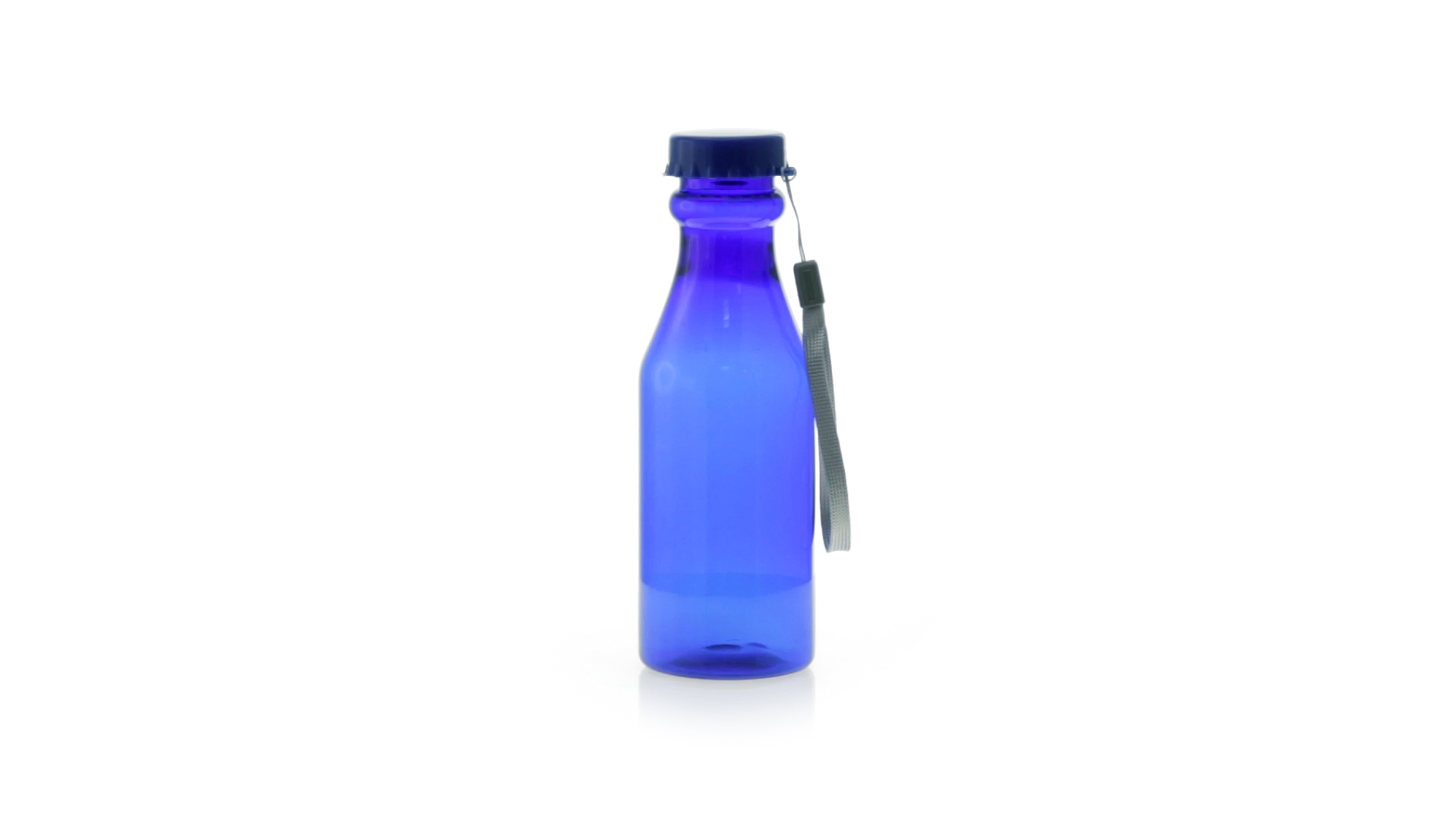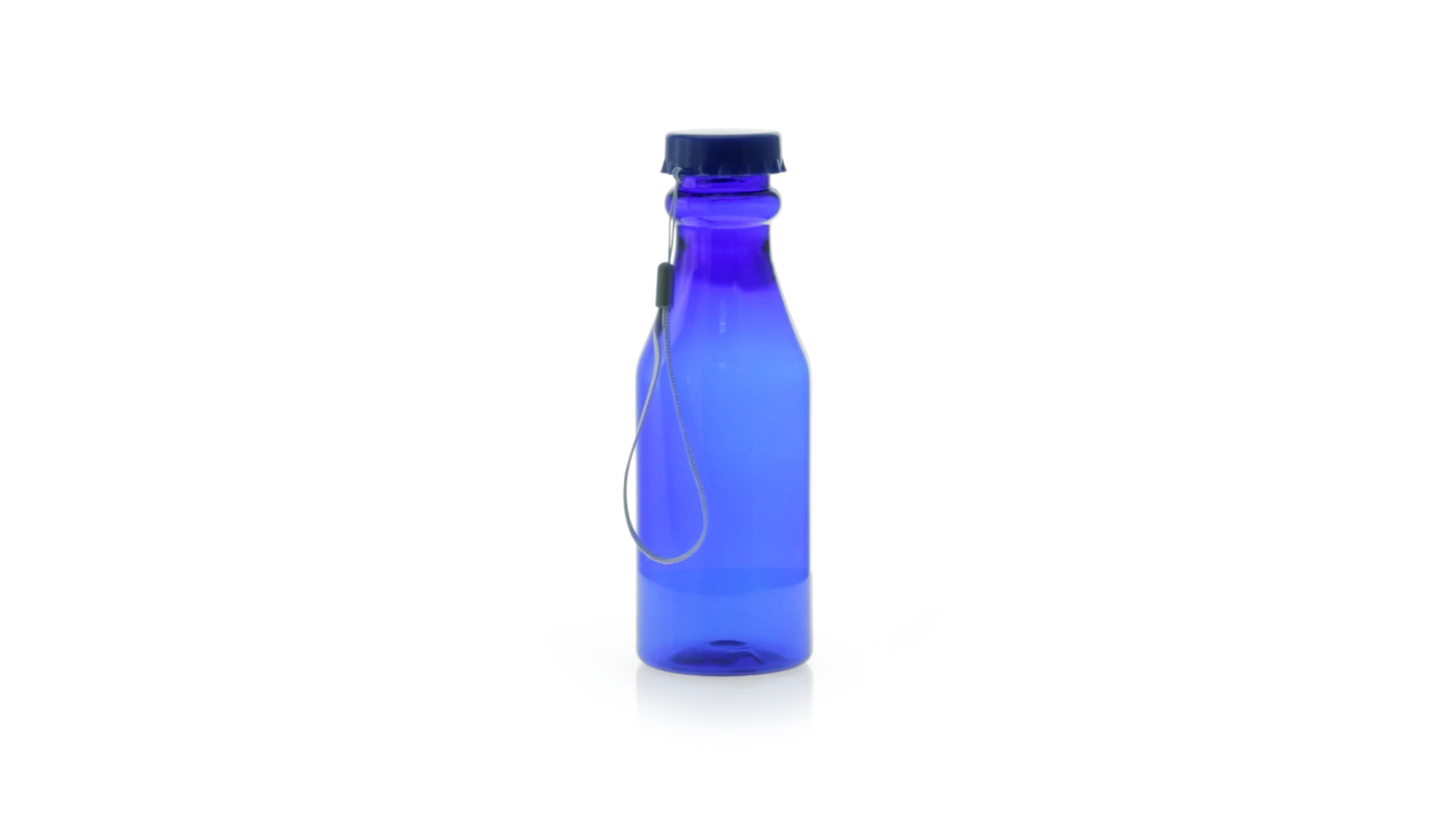 Trinkflasche mit 500 ml Fassungsvermögen und transparentem Körper aus AS-Material mit originellem Deckel in Kronkorken-Form. Mit Schraubverschluss und Trageschlaufe.