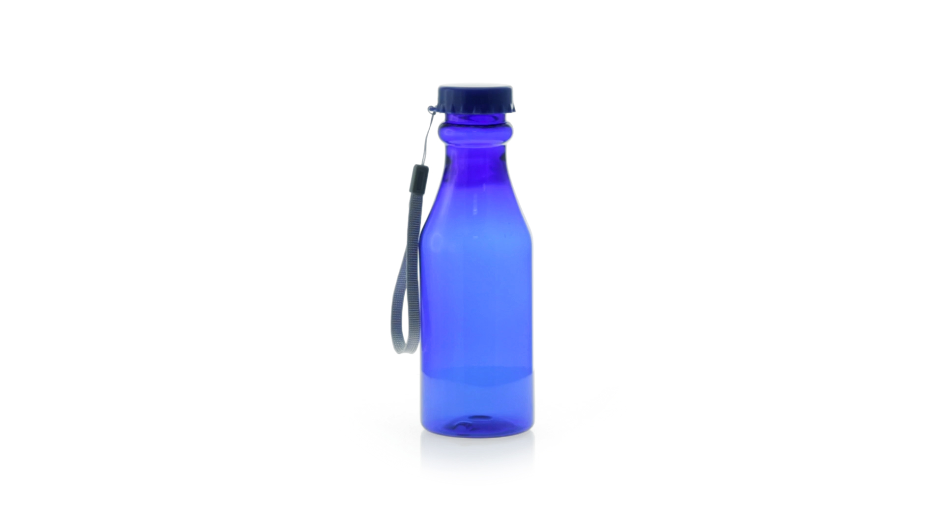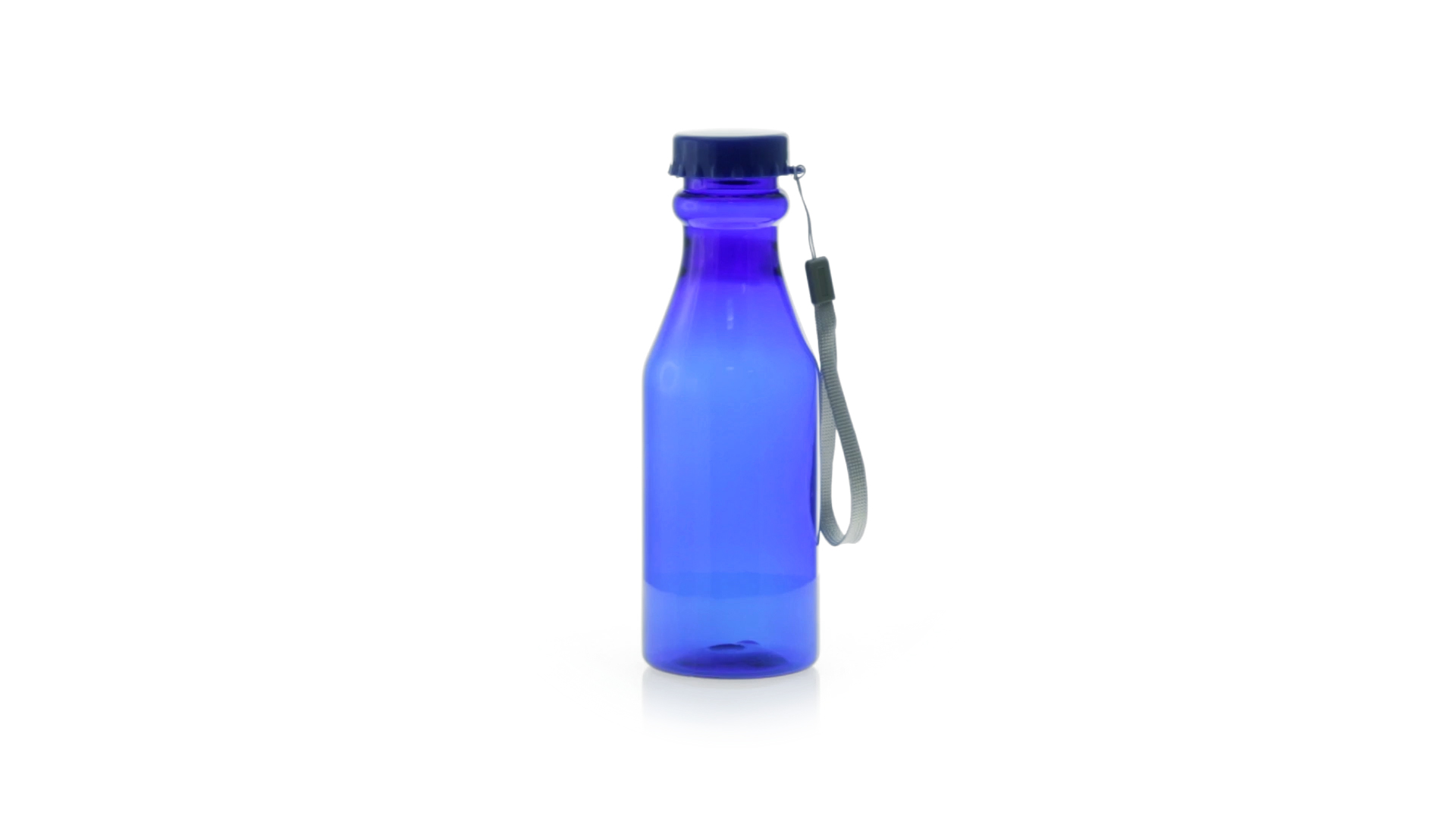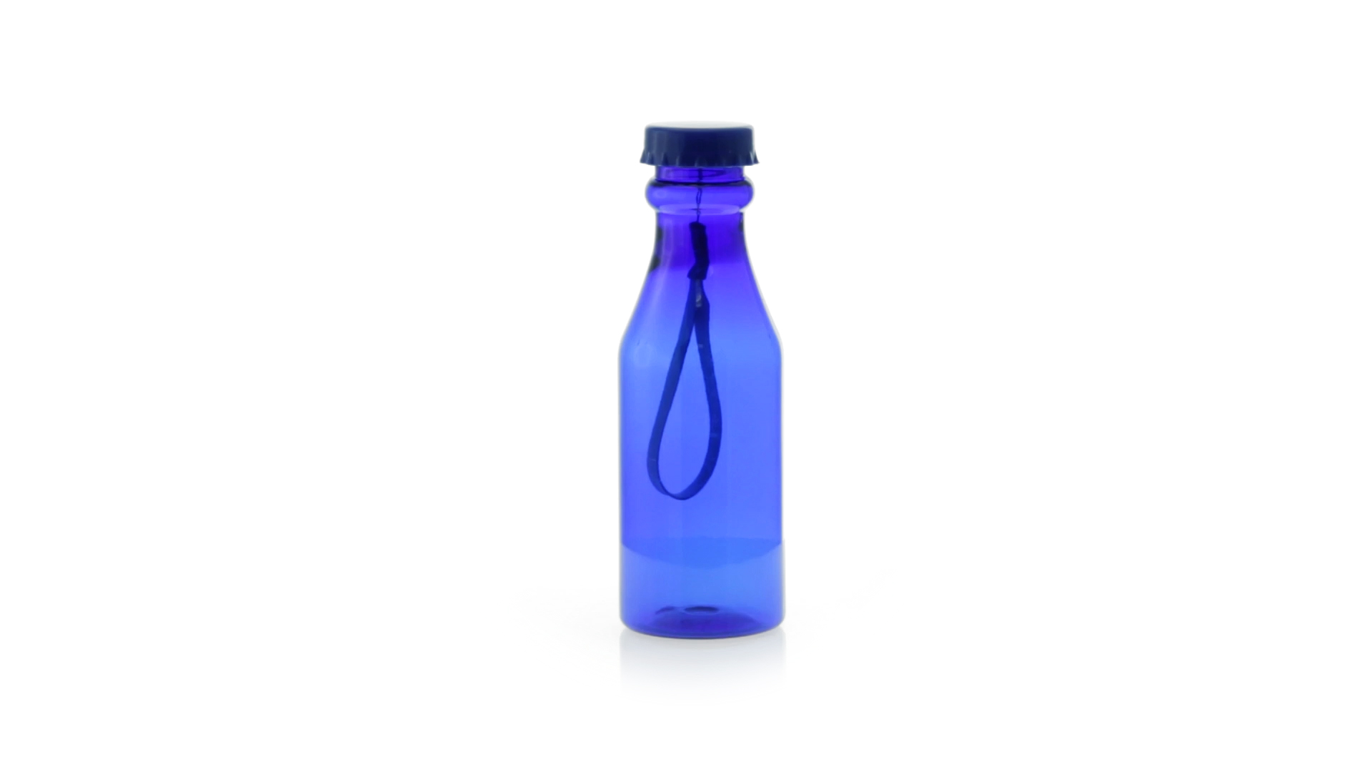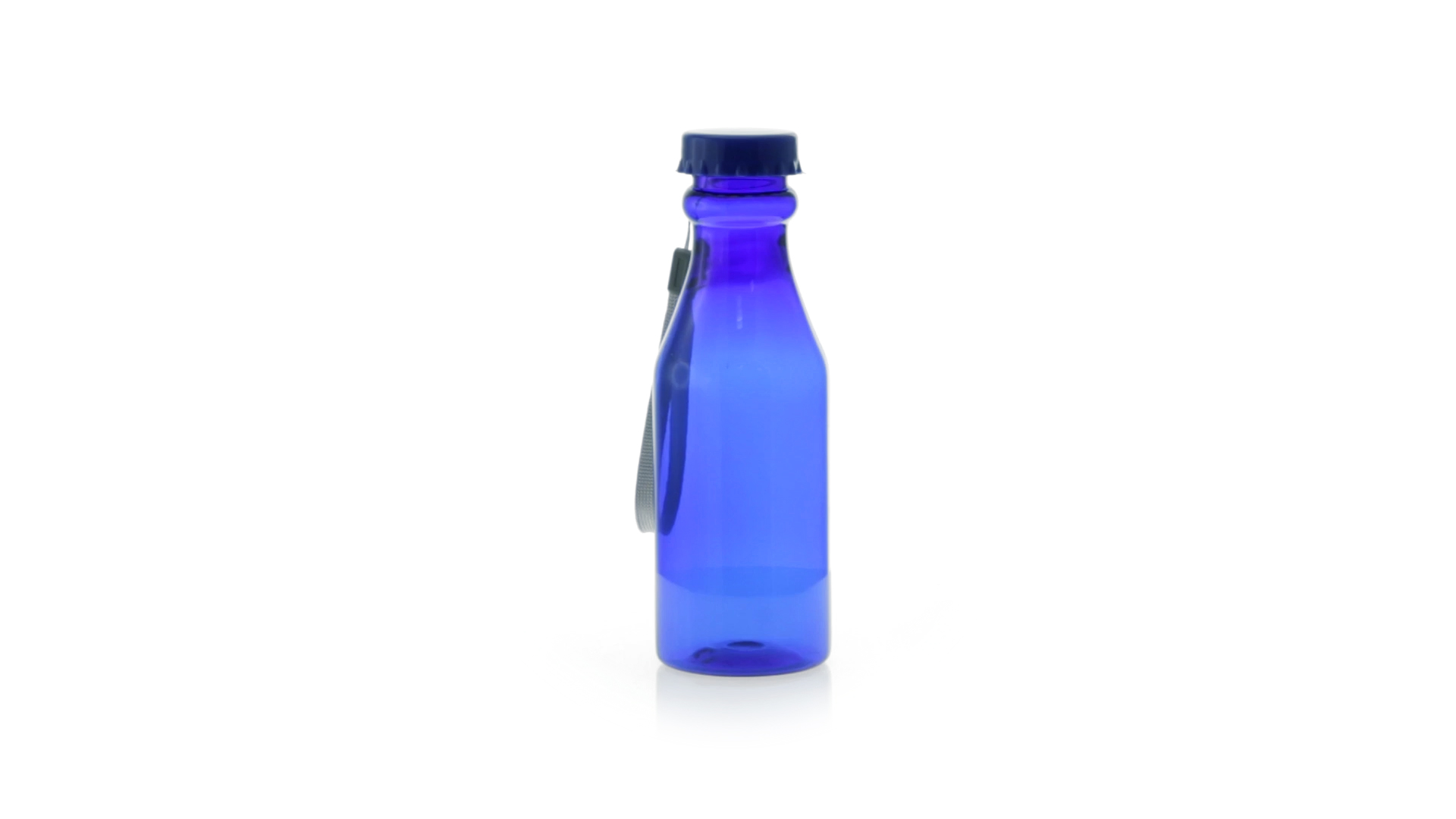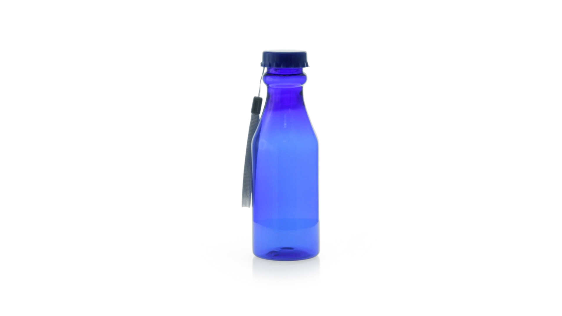 Trinkflasche mit 500 ml Fassungsvermögen und transparentem Körper aus AS-Material mit originellem Deckel in Kronkorken-Form. Mit Schraubverschluss und Trageschlaufe.