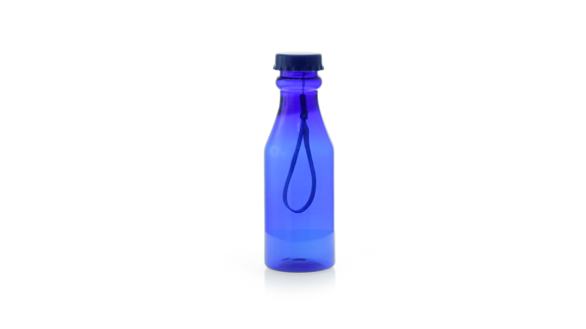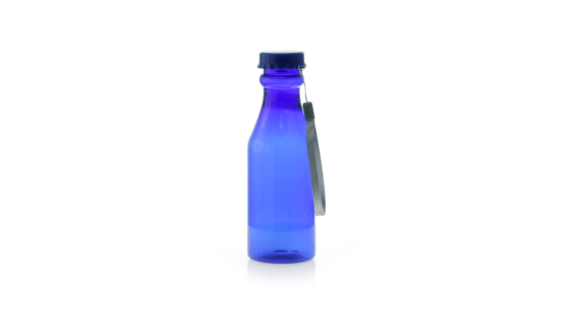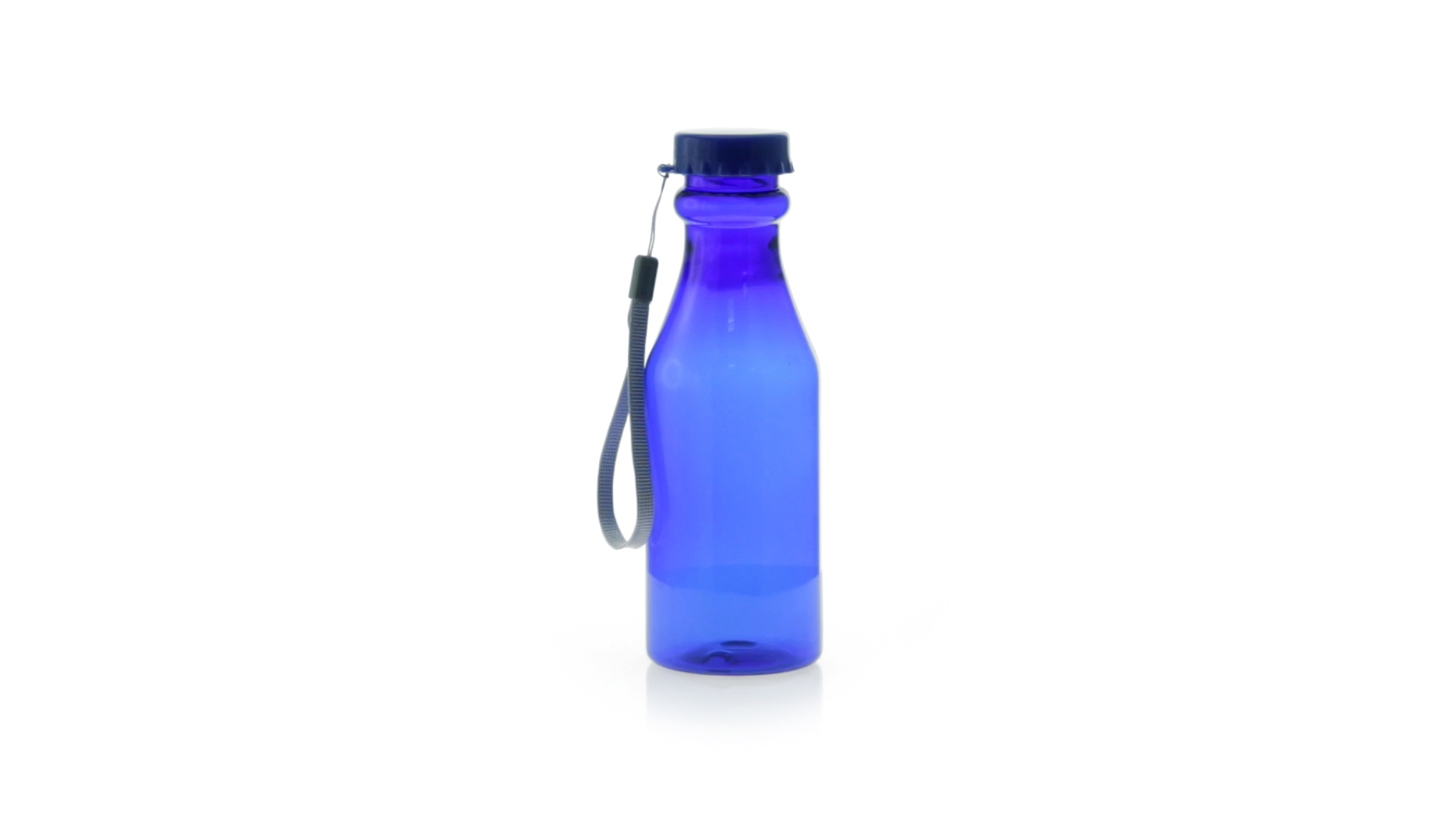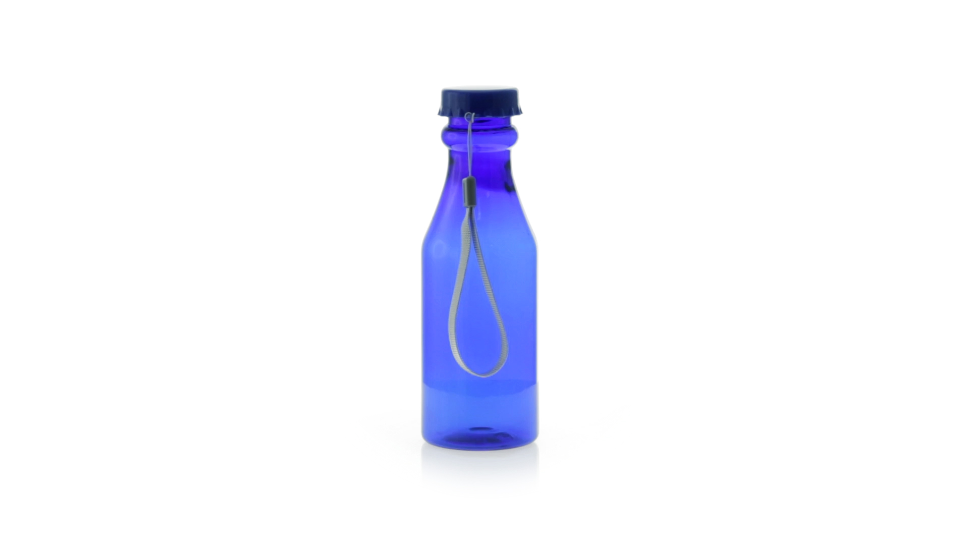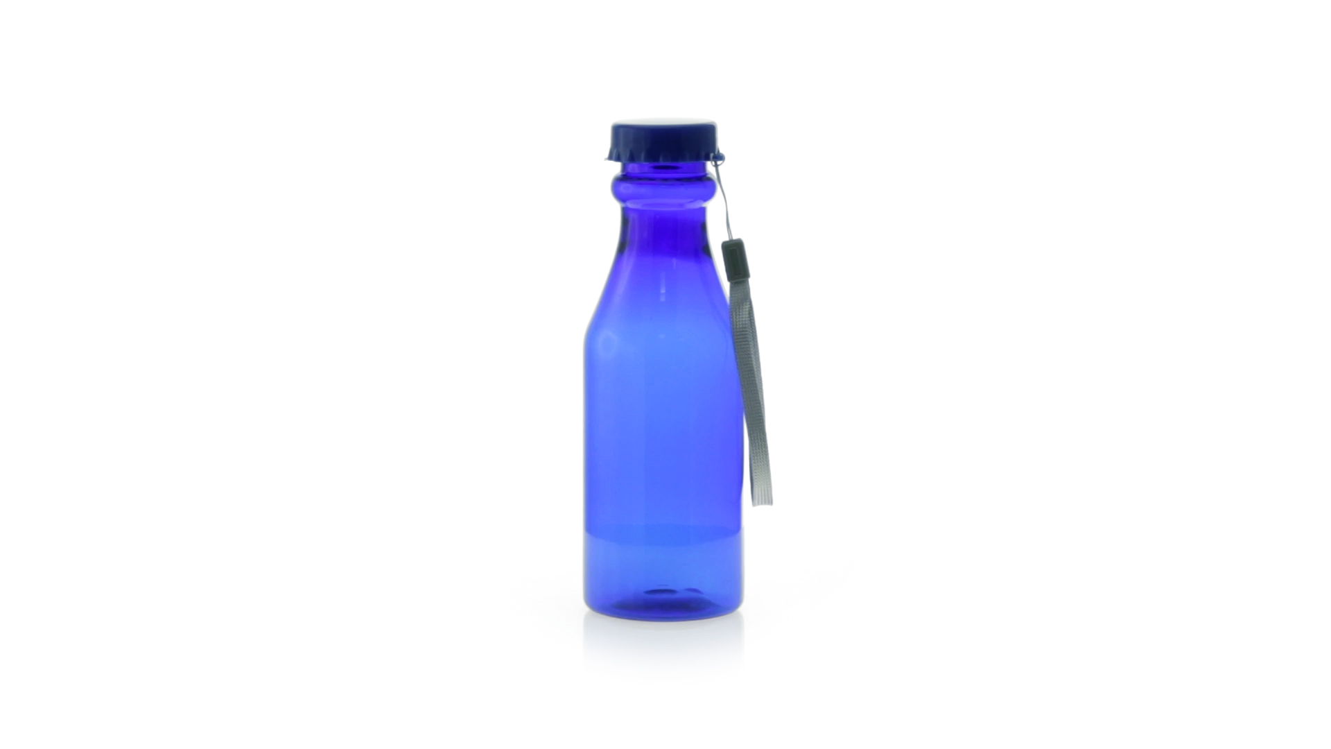 Trinkflasche mit 500 ml Fassungsvermögen und transparentem Körper aus AS-Material mit originellem Deckel in Kronkorken-Form. Mit Schraubverschluss und Trageschlaufe.