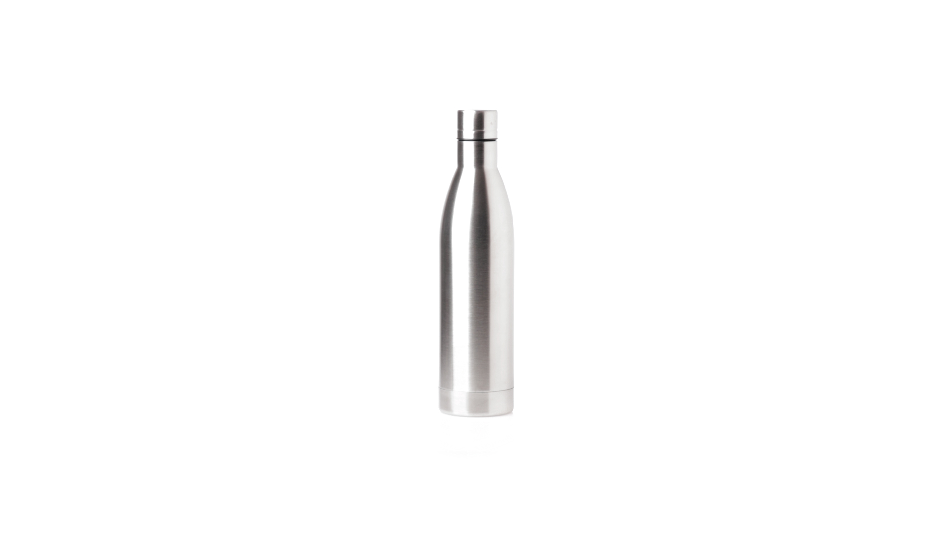 Flasche mit 1 Liter Fassungsvermögen, aus rostfreiem Stahl mit glänzender Oberfläche. Mit passendem Schraubverschluss aus Edelstahl, BPA-frei. Präsentiert in individueller Kraft-Design-Box.Gebrauchsanweisung in Englisch und Spanisch erhältlich.