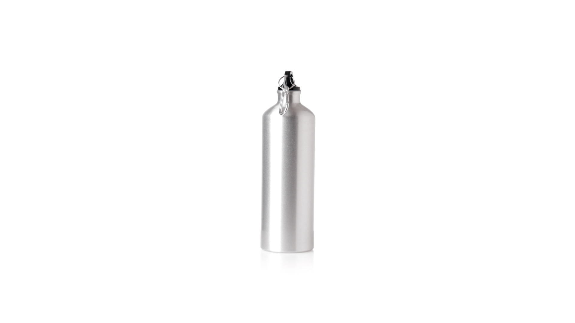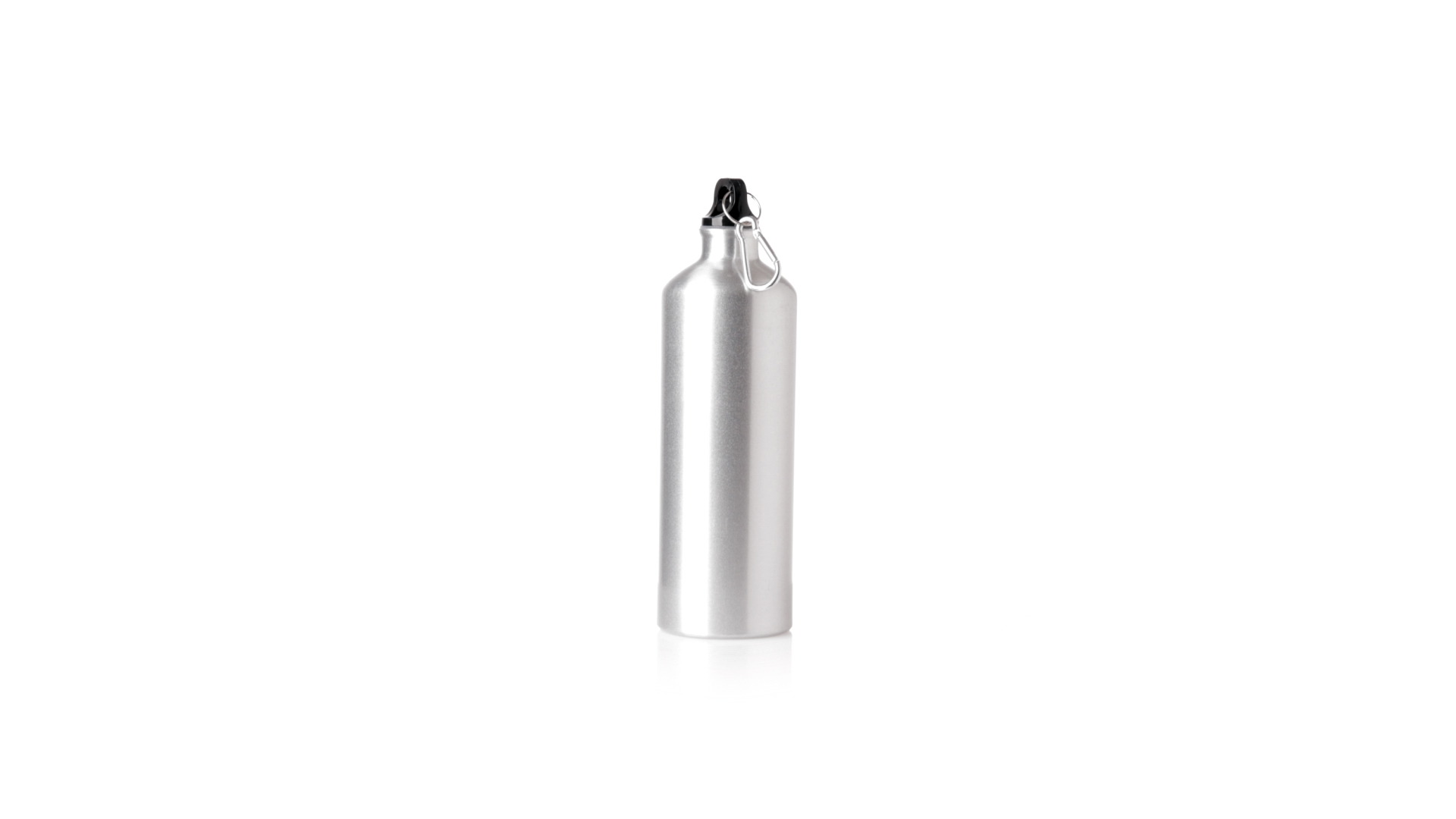 Flasche mit 1 Liter Fassungsvermögen, aus Aluminium mit glänzender Oberfläche. Schraubverschluss in Schwarz, mit Ring und Karabiner für den Transport. BPA-frei und in einer individuellen Kraft-Design-Box.Gebrauchsanweisung in Englisch und Spanisch erhältlich.