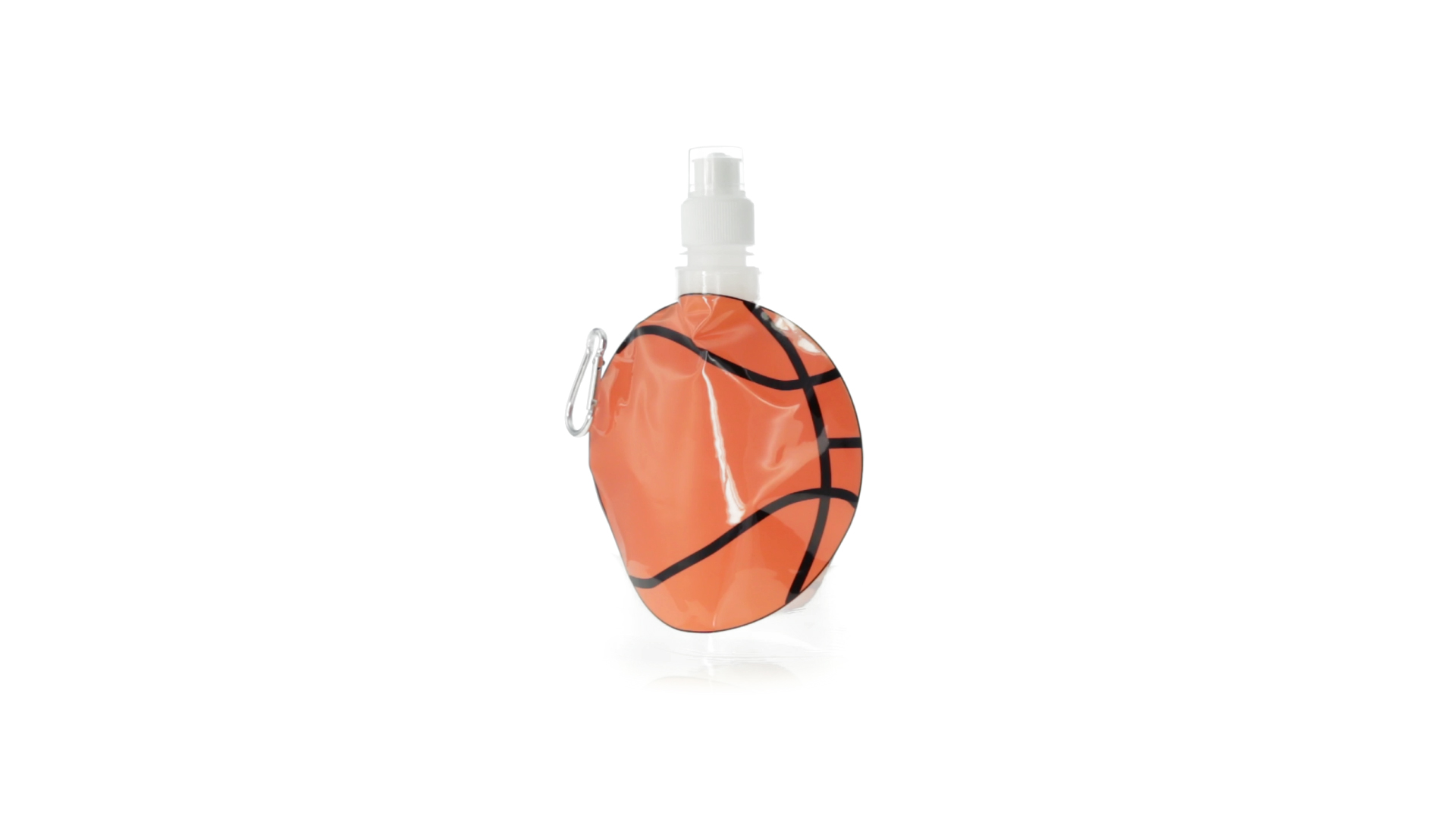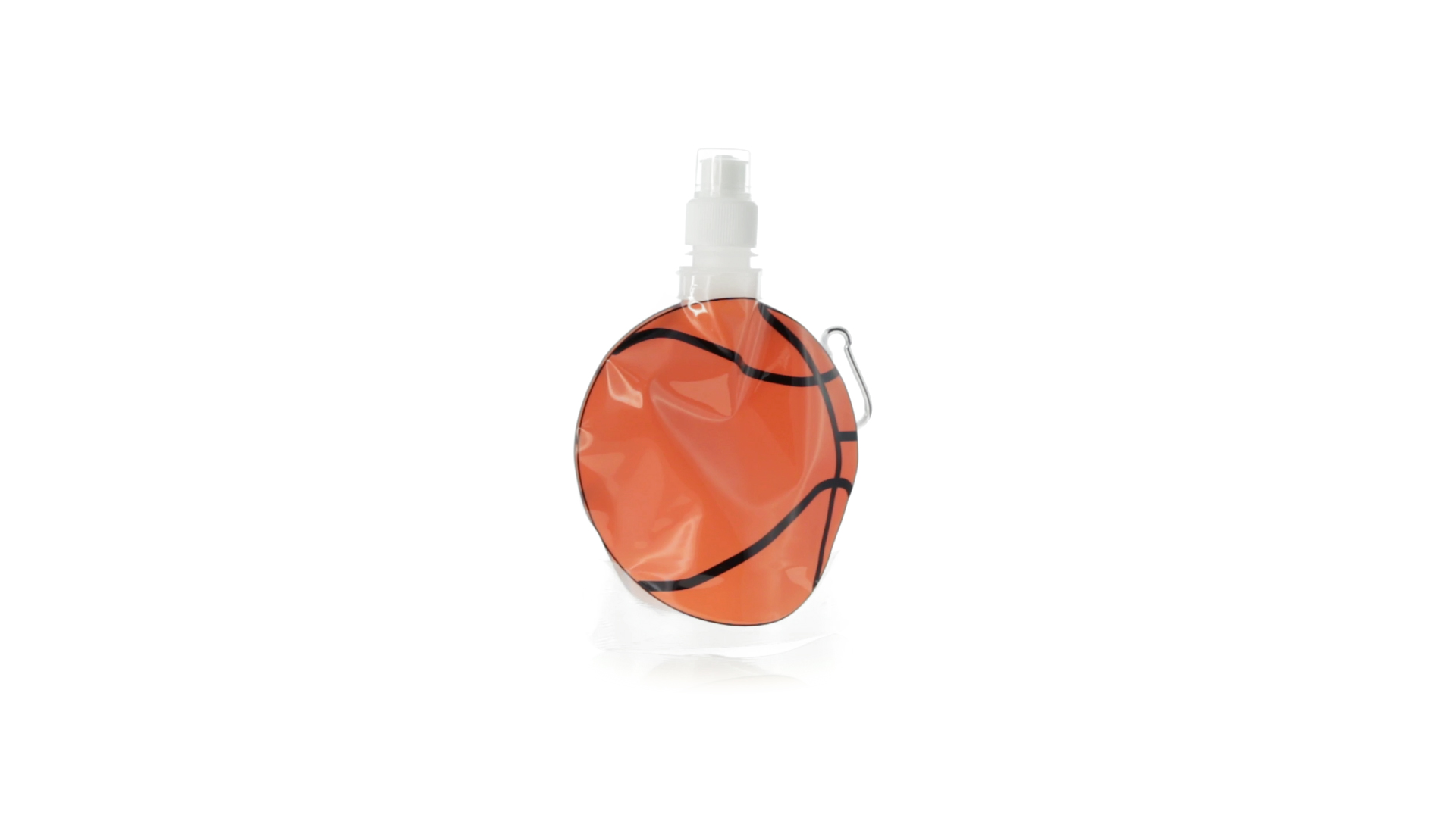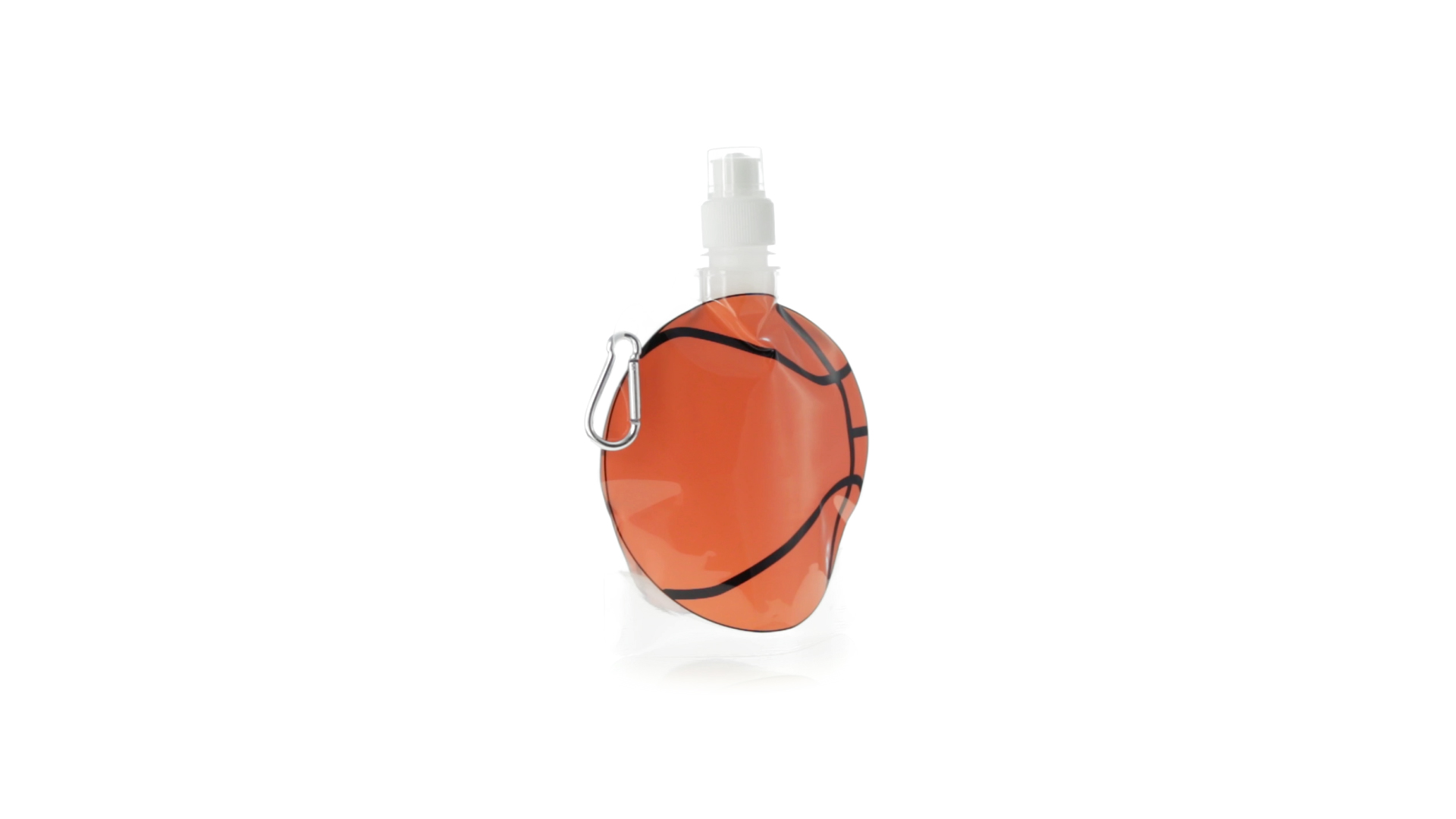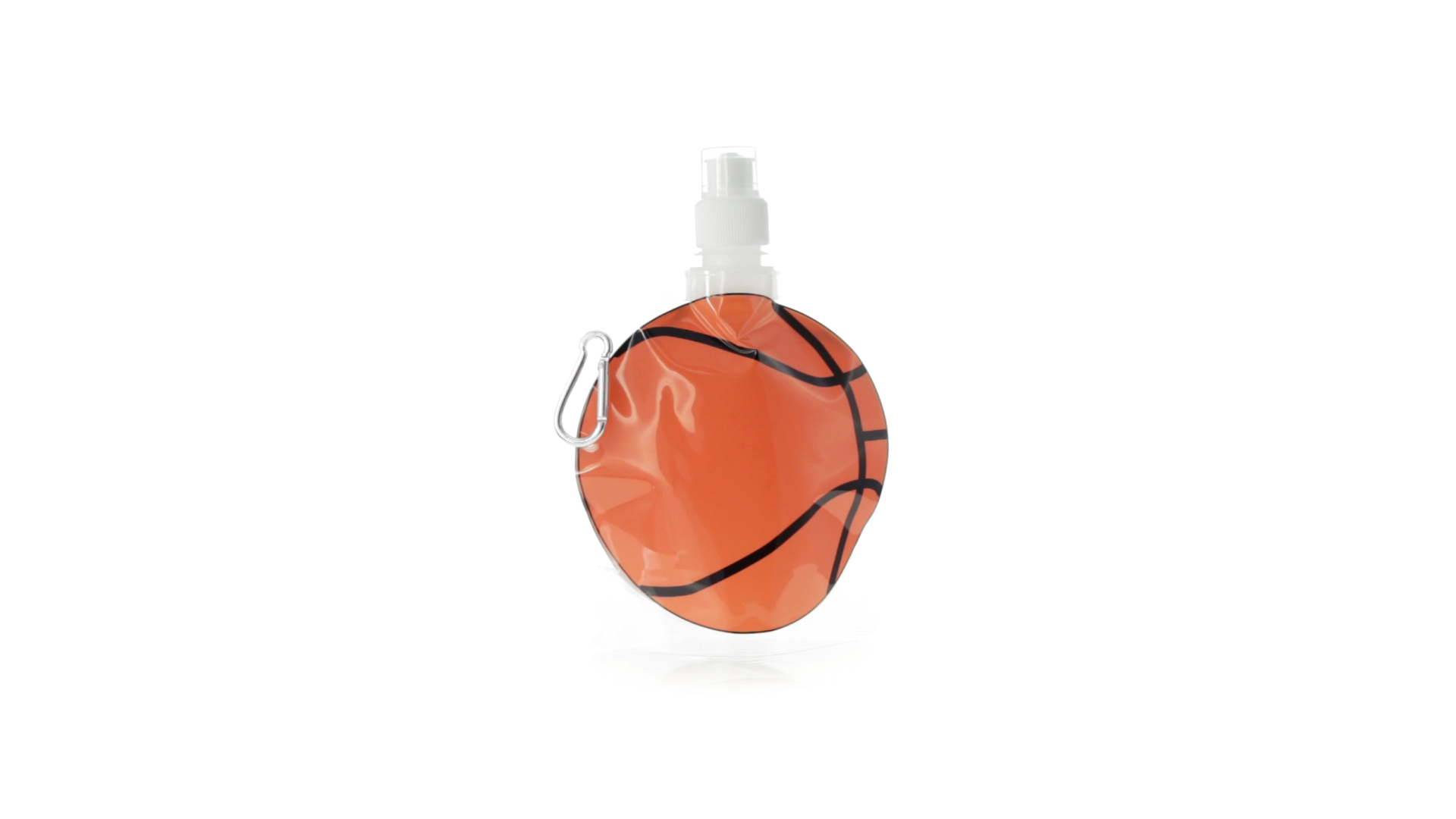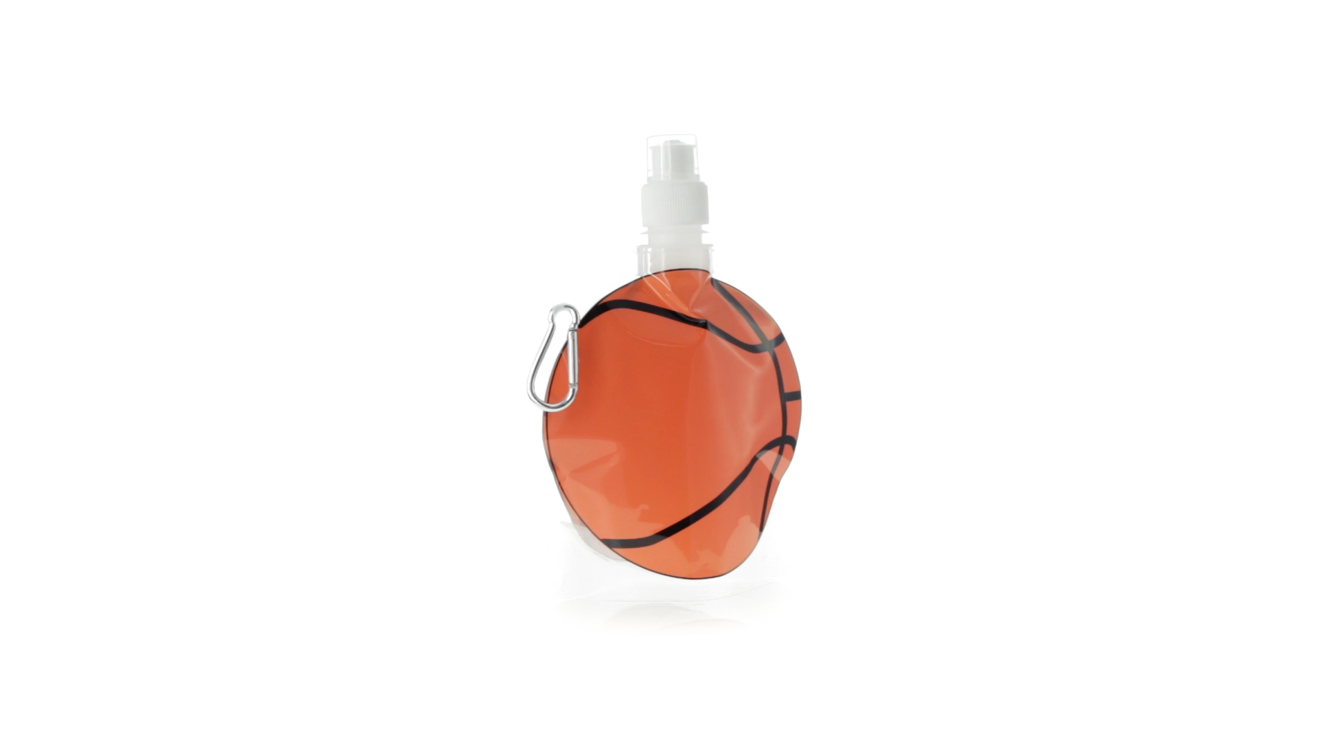 Trinkflasche mit 480 ml Fassungsvermögen und flexiblem PET-Körper. Mit Schraubverschluss mit Deckel und Befestigungskarabiner aus Metall. In den Designs Basketball, Fussball, Golf, Rugby und Tennis.