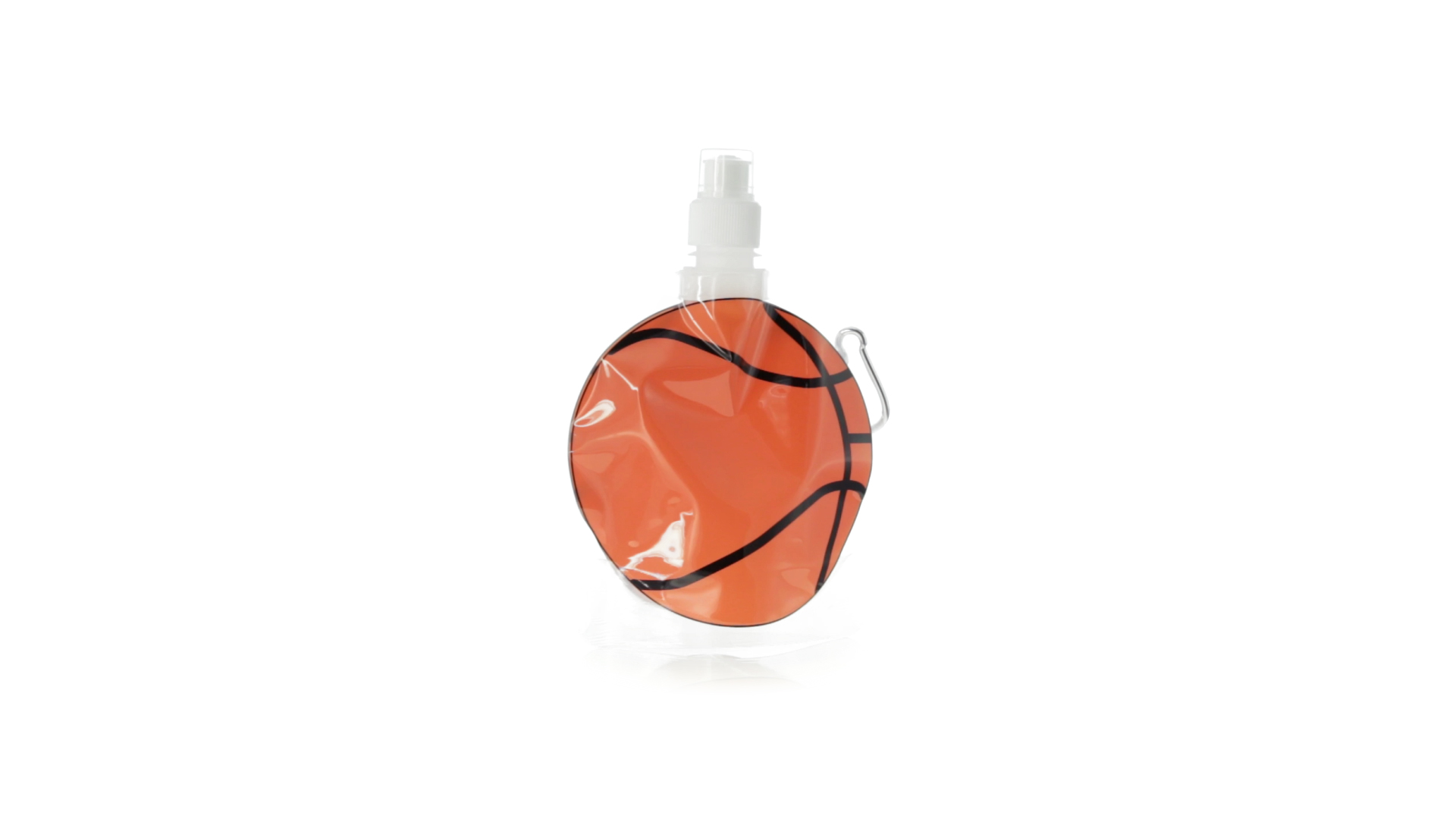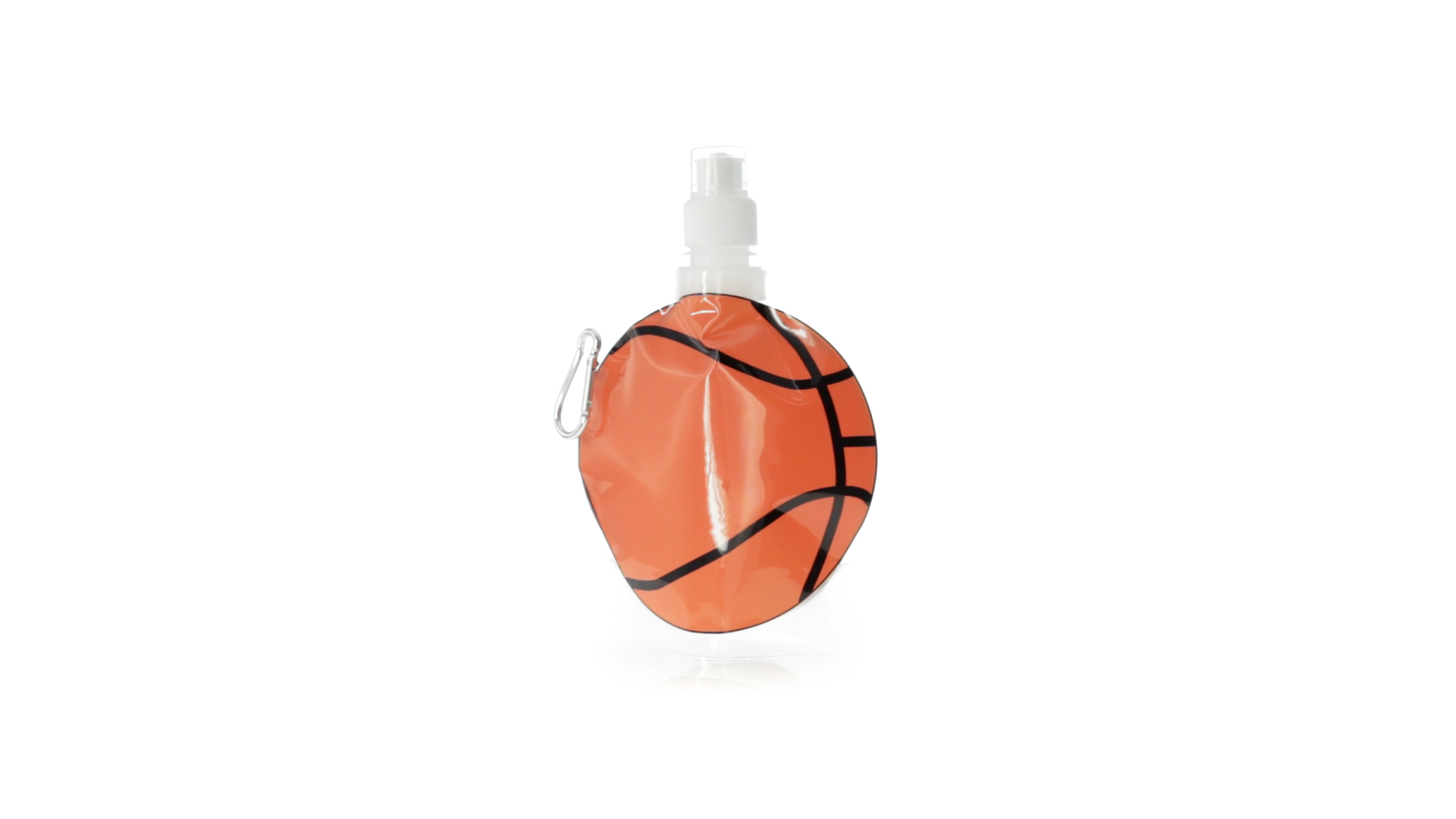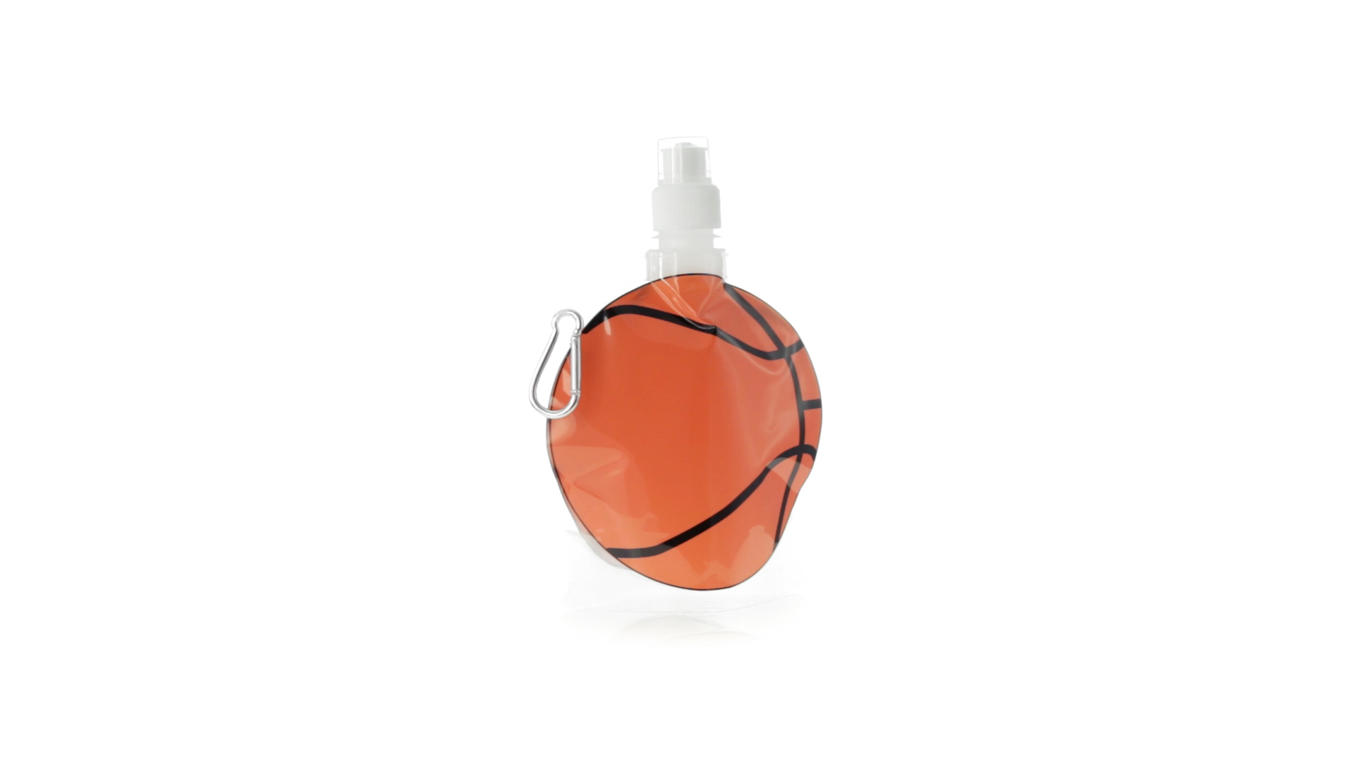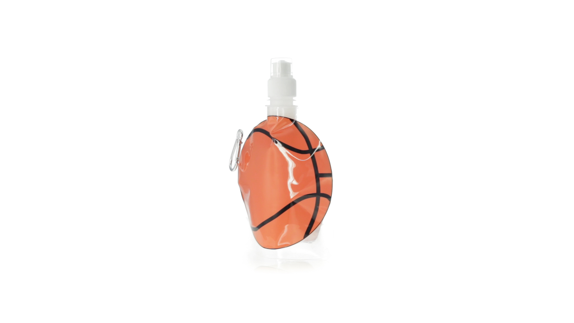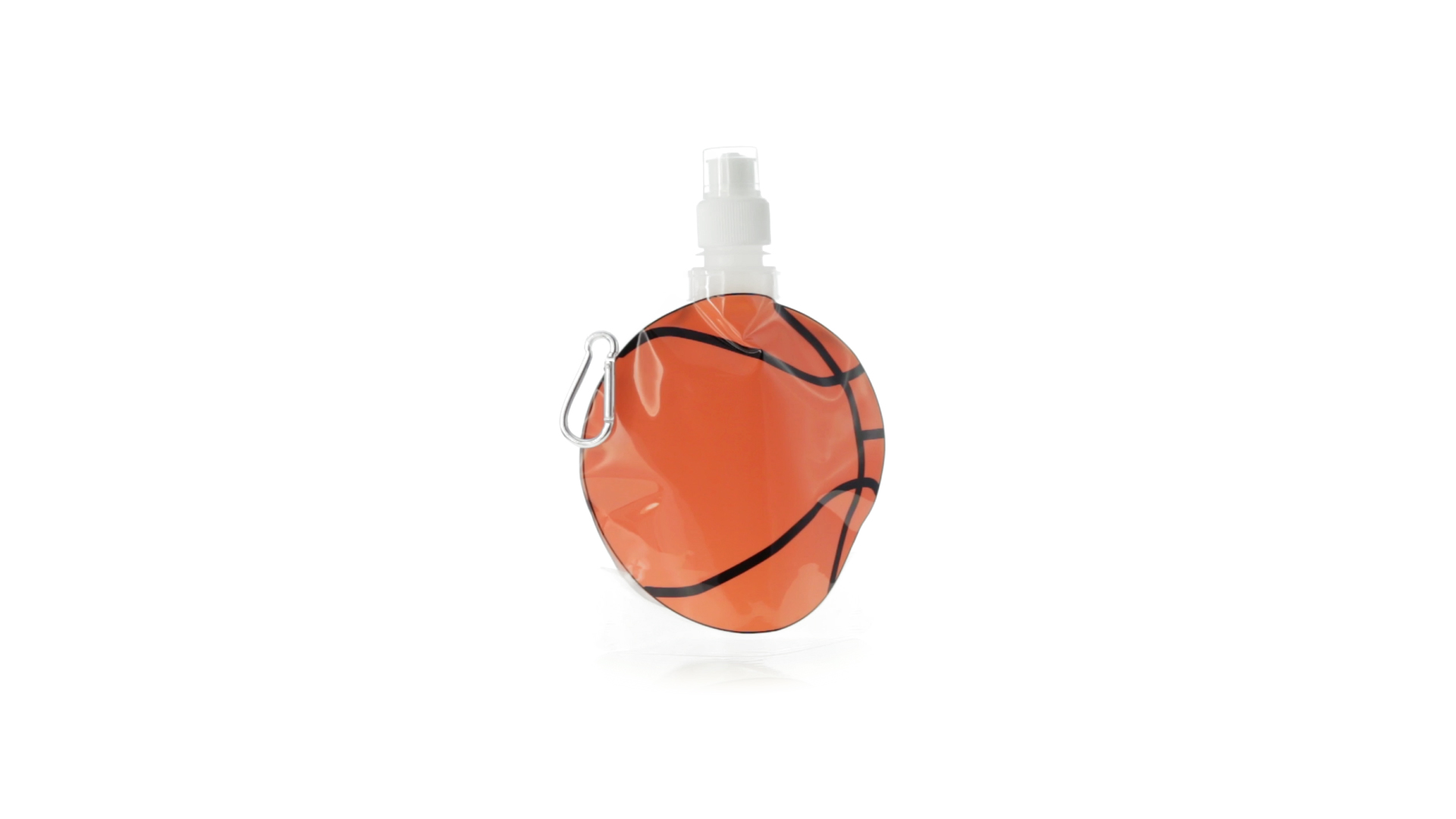 Trinkflasche mit 480 ml Fassungsvermögen und flexiblem PET-Körper. Mit Schraubverschluss mit Deckel und Befestigungskarabiner aus Metall. In den Designs Basketball, Fussball, Golf, Rugby und Tennis.