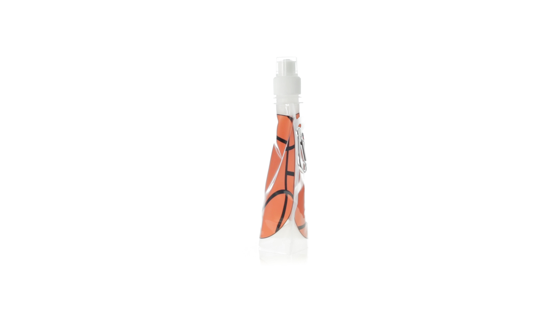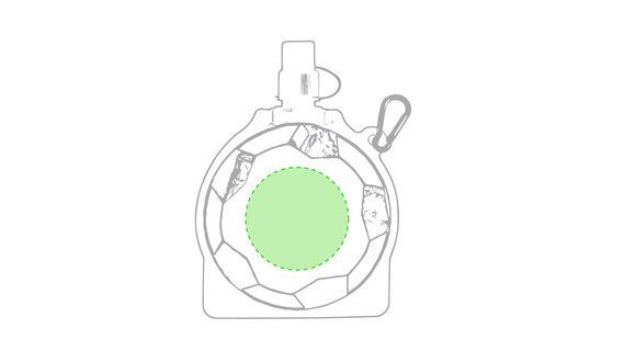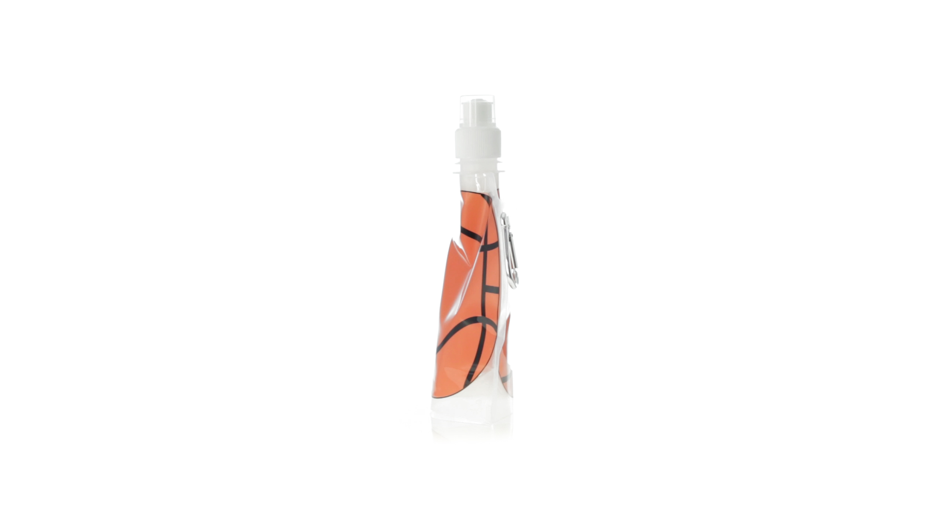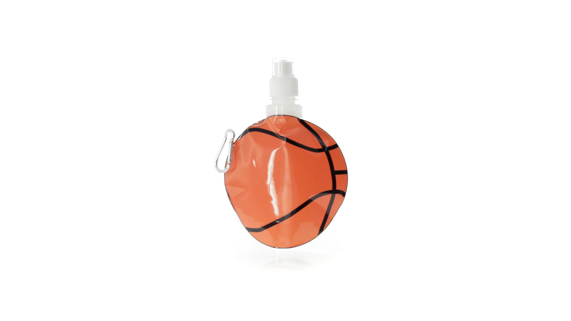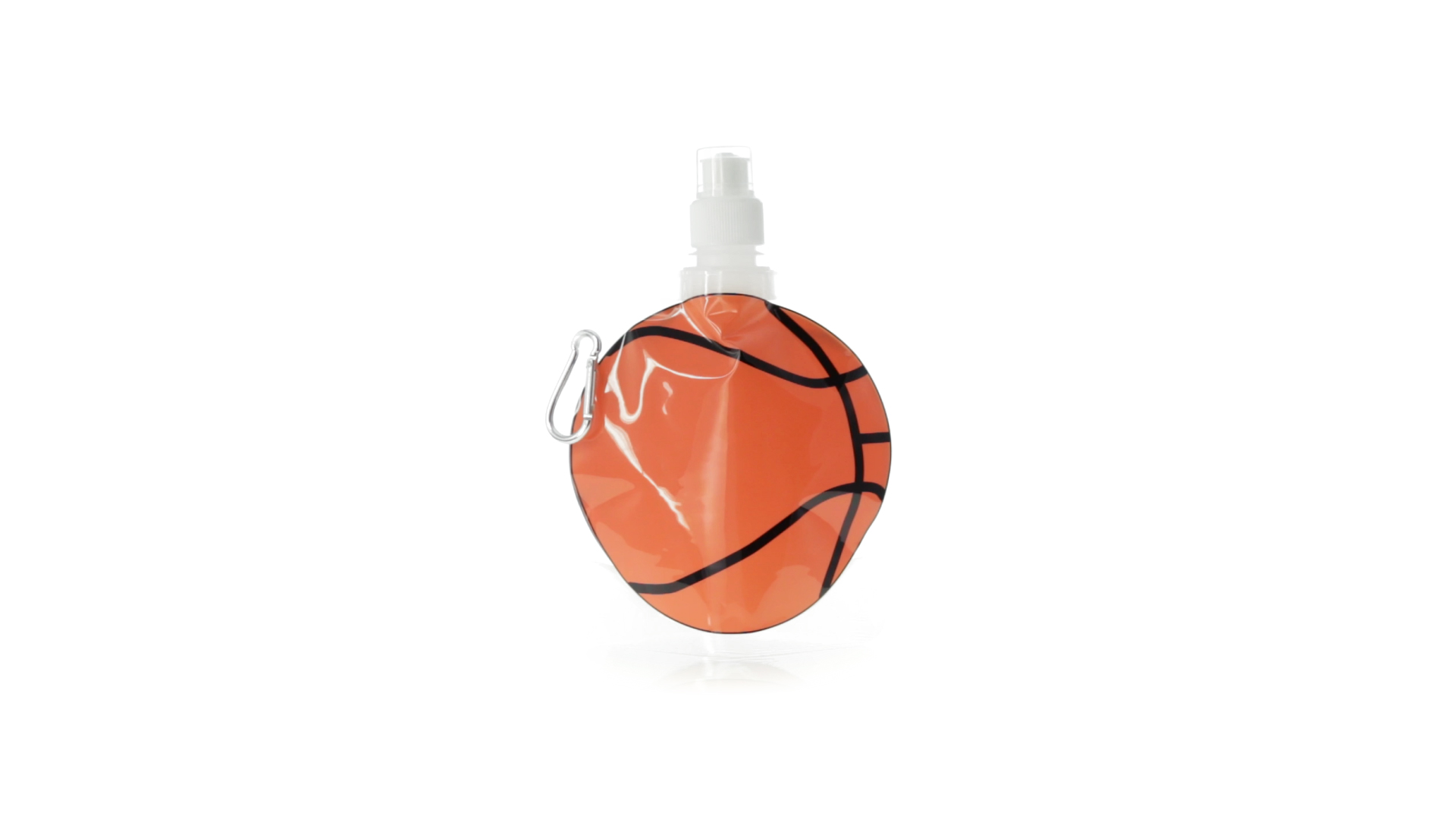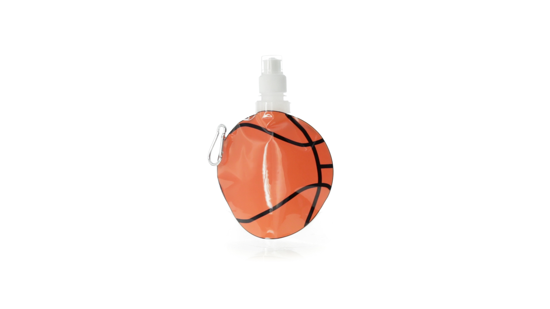Trinkflasche mit 480 ml Fassungsvermögen und flexiblem PET-Körper. Mit Schraubverschluss mit Deckel und Befestigungskarabiner aus Metall. In den Designs Basketball, Fussball, Golf, Rugby und Tennis.