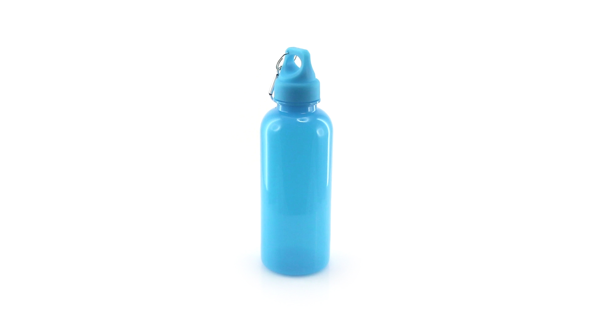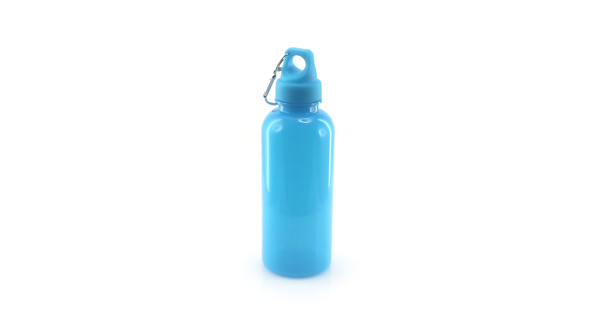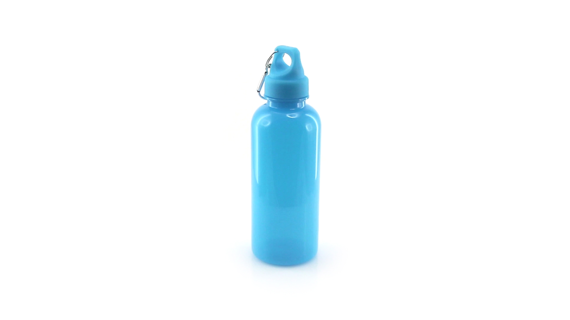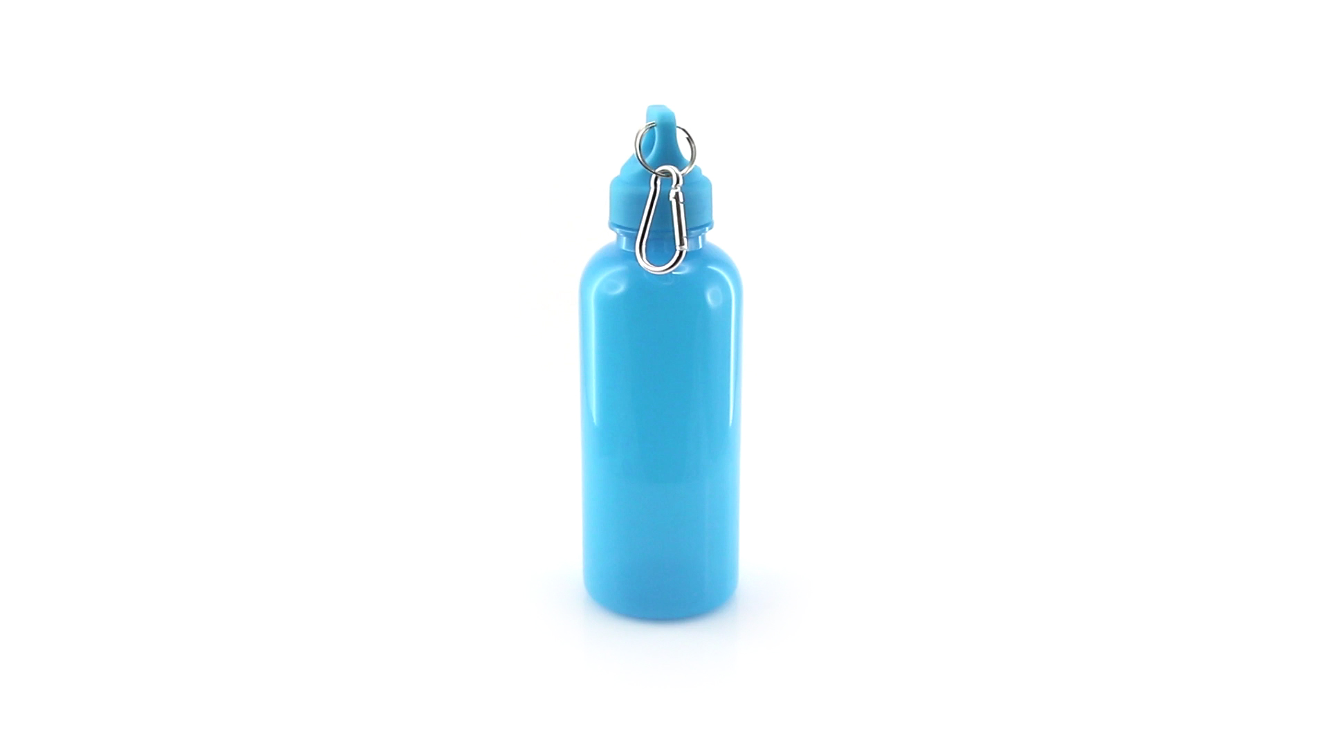 Trinkflasche mit 600 ml Fassungsvermögen, hergestellt aus halbtransparentem PS-Kunststoff in verschiedenen kräftigen Farben. Mit Sicherheitsschraubdeckel und Metallkarabiner.Bedienungsanleitung in Spanisch und Englisch verfügbar.