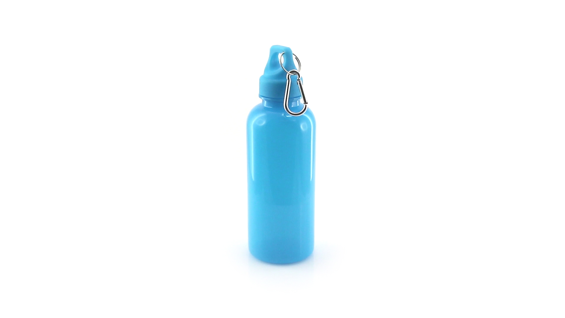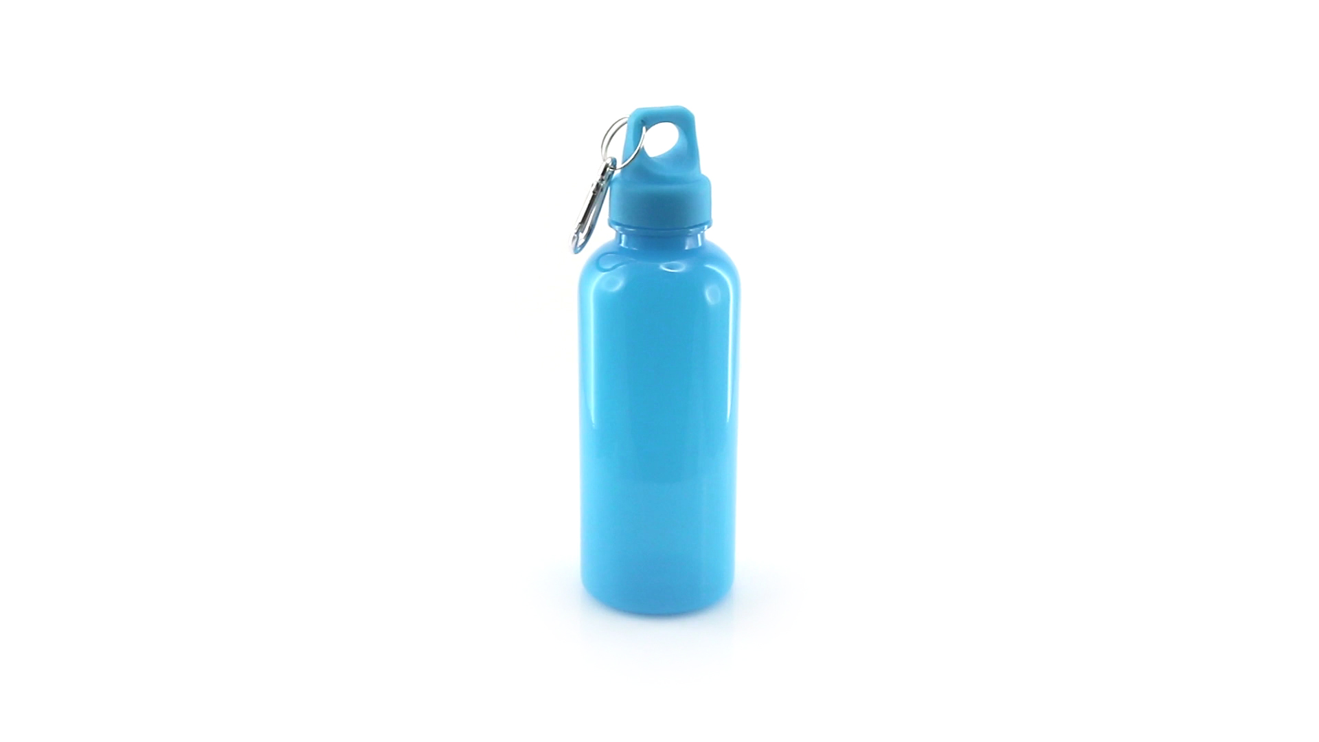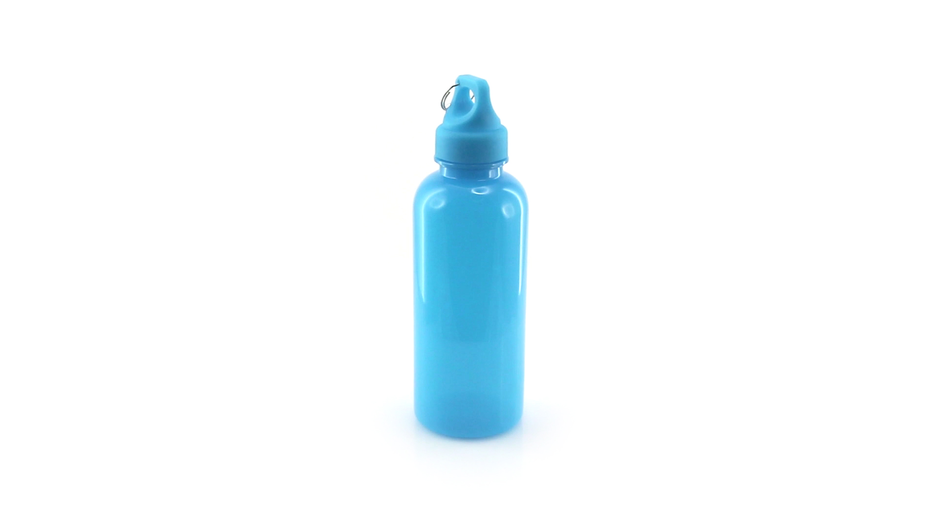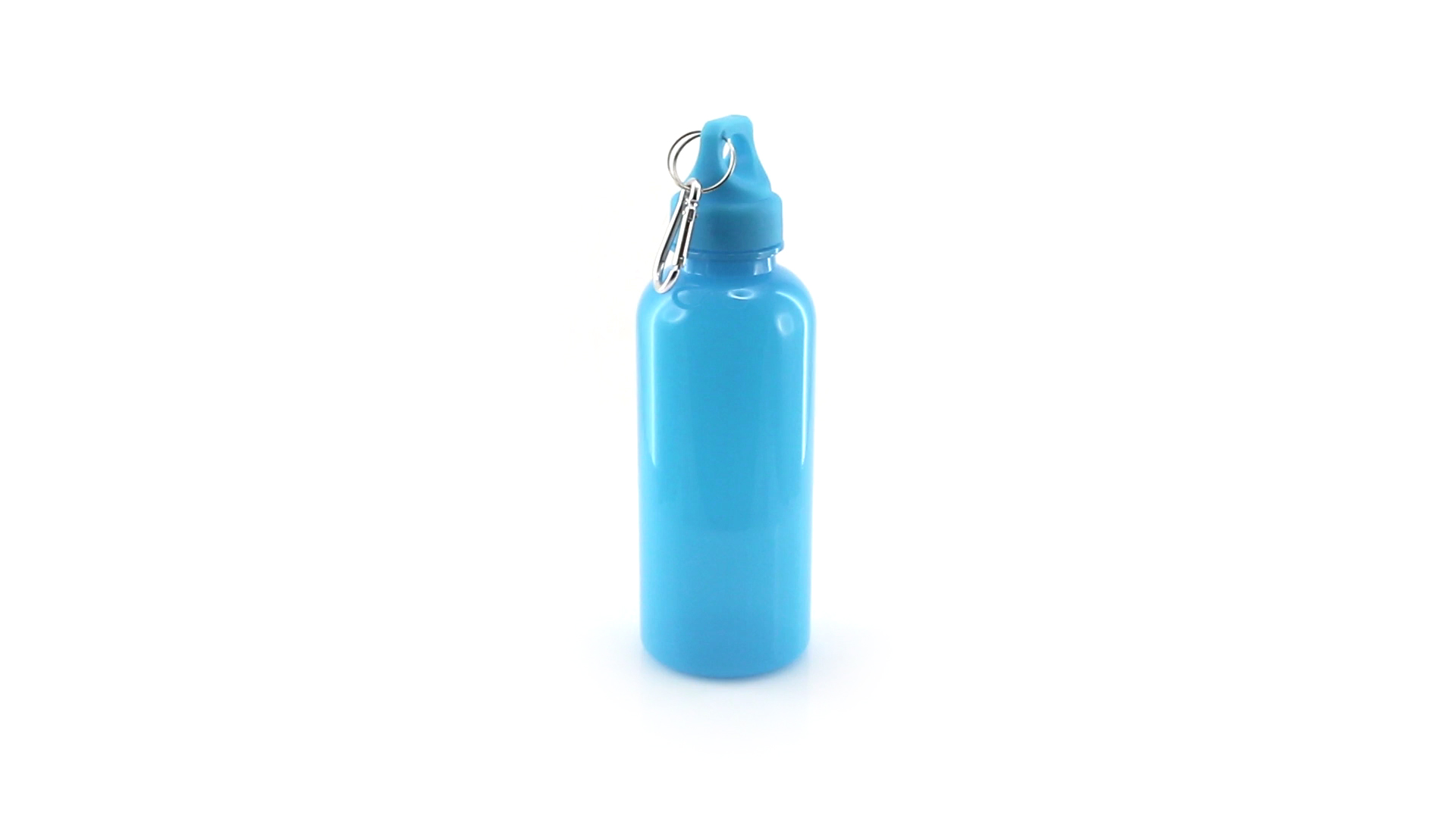 Trinkflasche mit 600 ml Fassungsvermögen, hergestellt aus halbtransparentem PS-Kunststoff in verschiedenen kräftigen Farben. Mit Sicherheitsschraubdeckel und Metallkarabiner.Bedienungsanleitung in Spanisch und Englisch verfügbar.