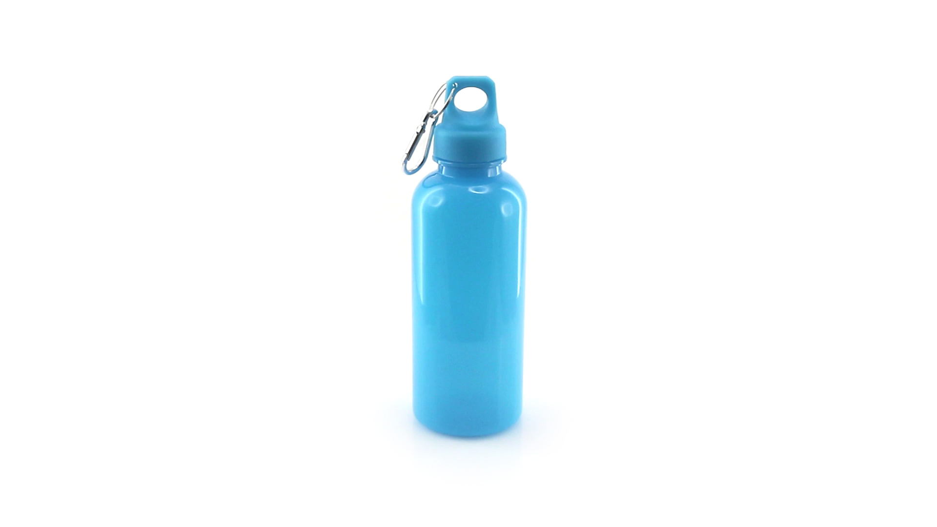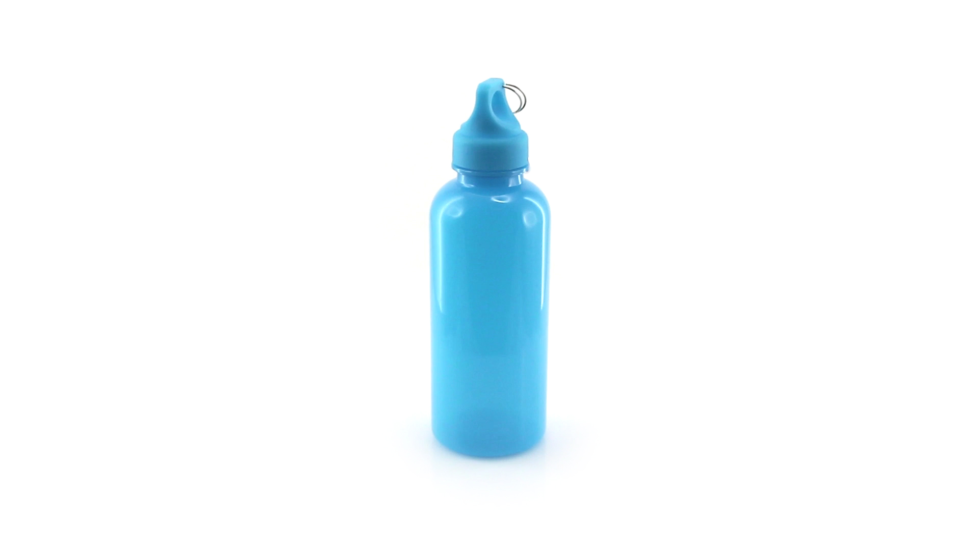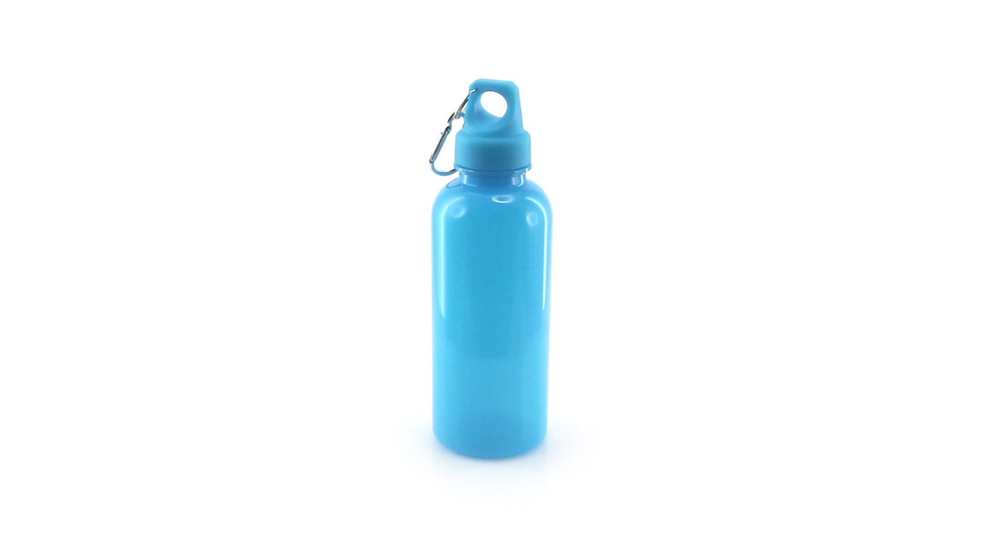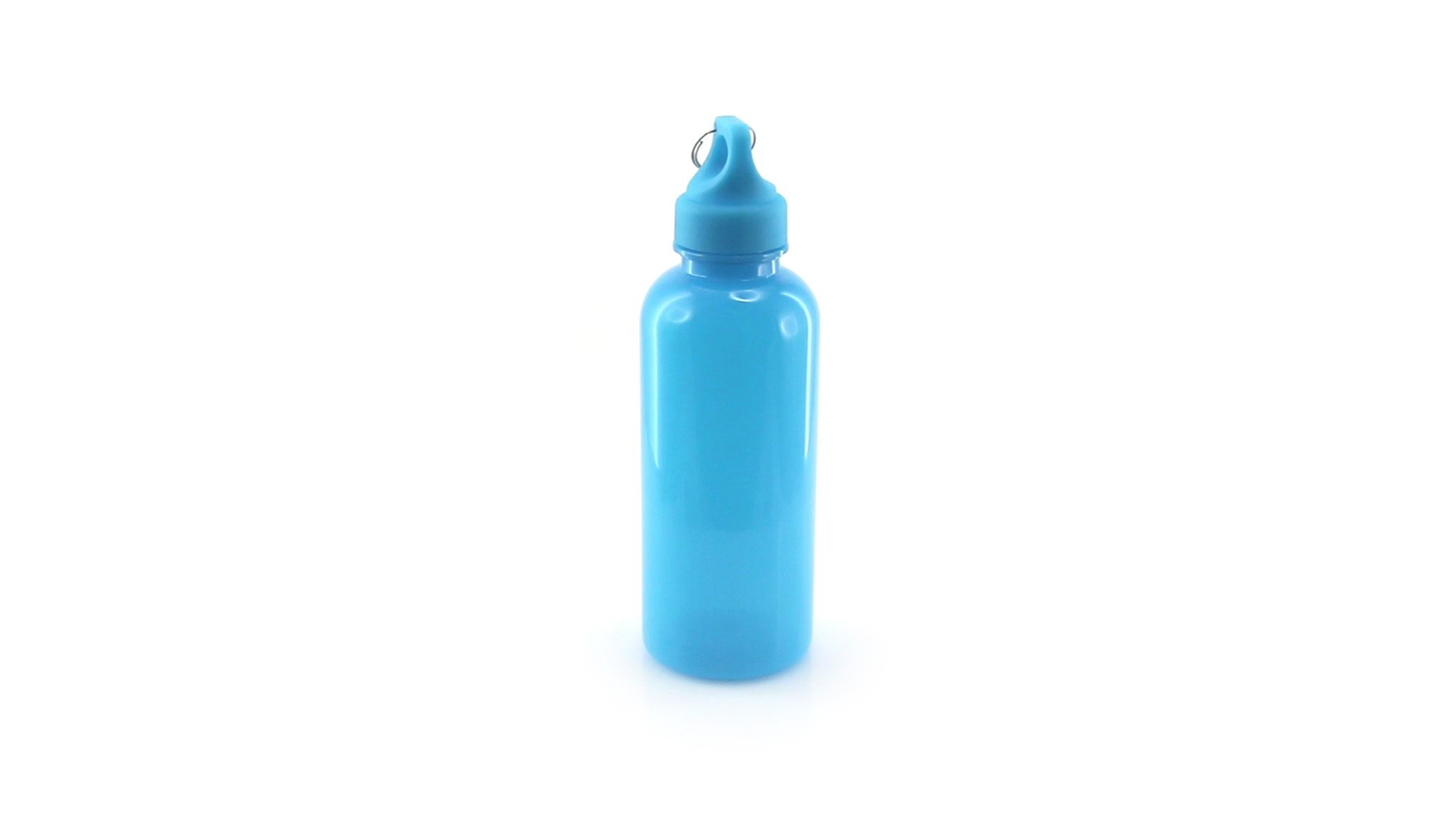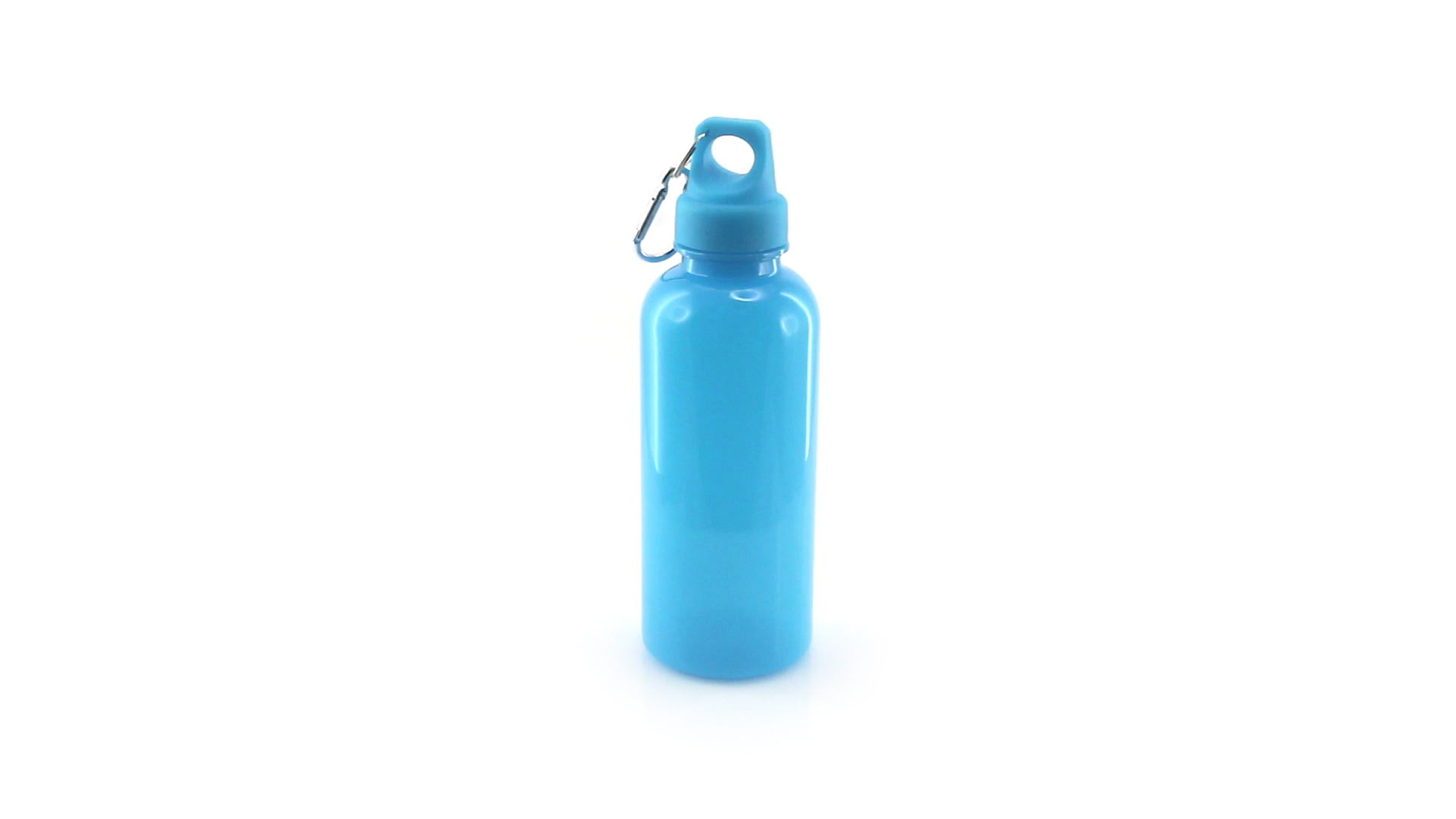 Trinkflasche mit 600 ml Fassungsvermögen, hergestellt aus halbtransparentem PS-Kunststoff in verschiedenen kräftigen Farben. Mit Sicherheitsschraubdeckel und Metallkarabiner.Bedienungsanleitung in Spanisch und Englisch verfügbar.