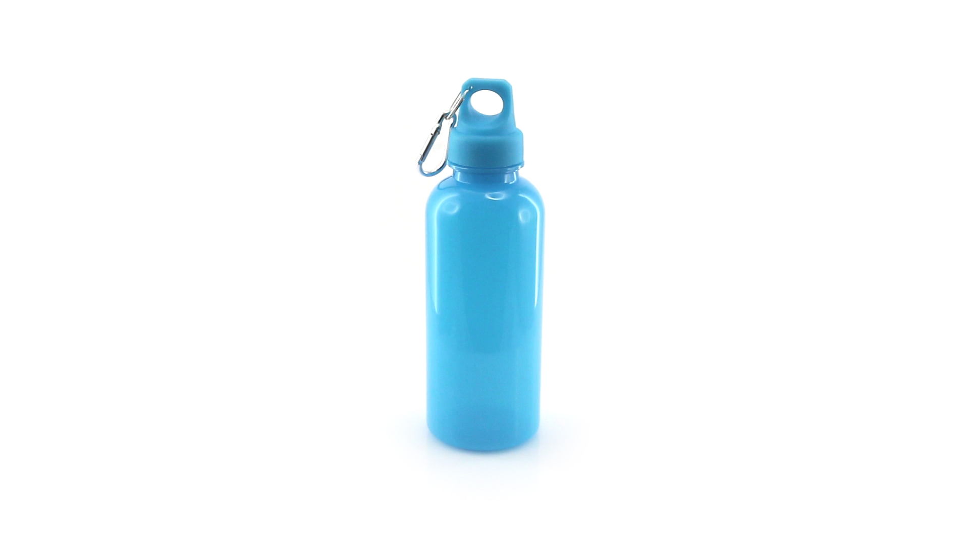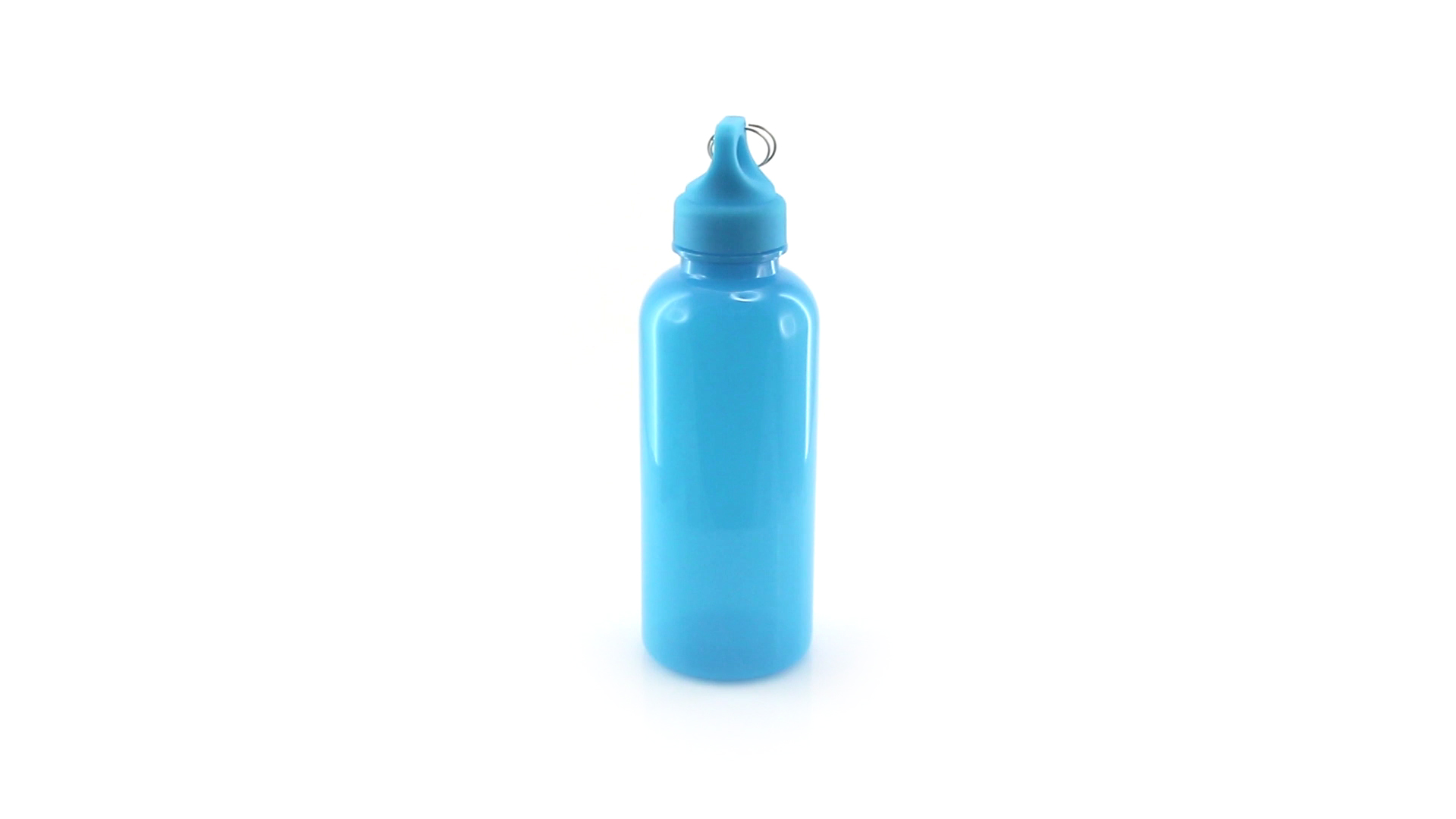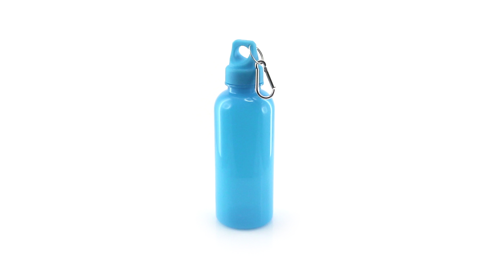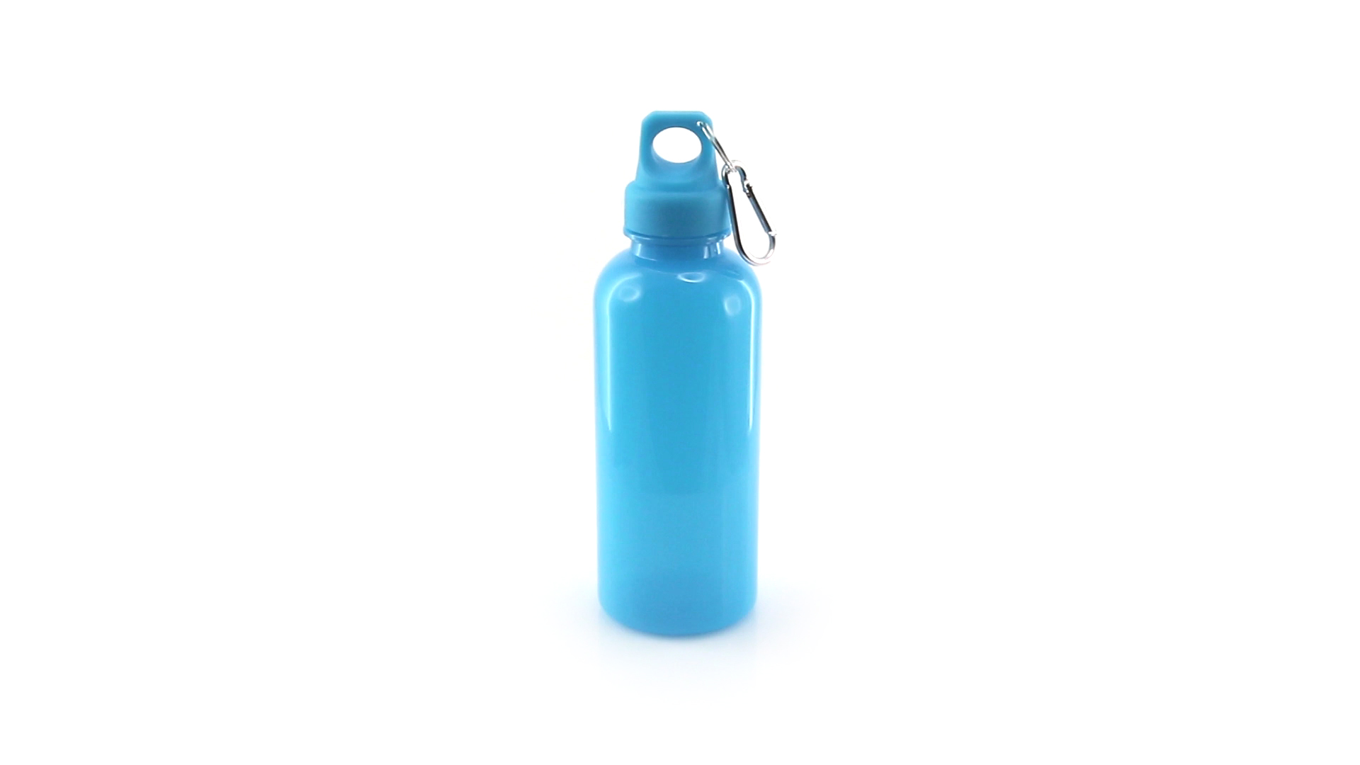 Trinkflasche mit 600 ml Fassungsvermögen, hergestellt aus halbtransparentem PS-Kunststoff in verschiedenen kräftigen Farben. Mit Sicherheitsschraubdeckel und Metallkarabiner.Bedienungsanleitung in Spanisch und Englisch verfügbar.