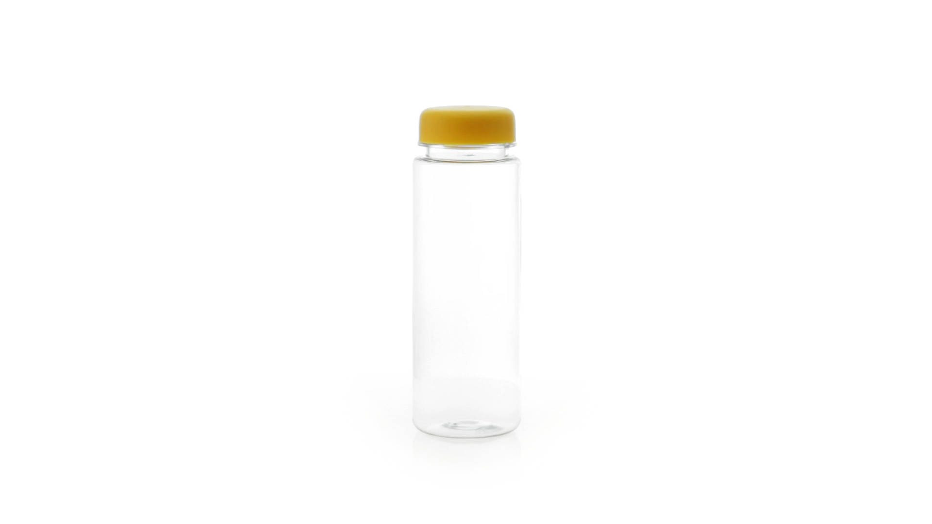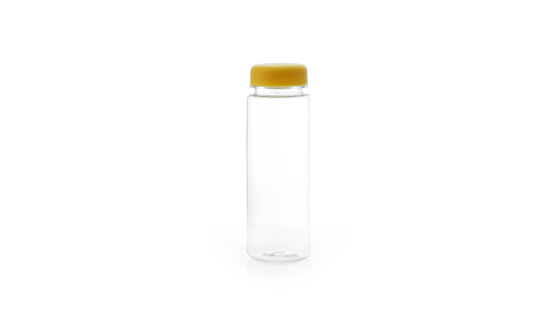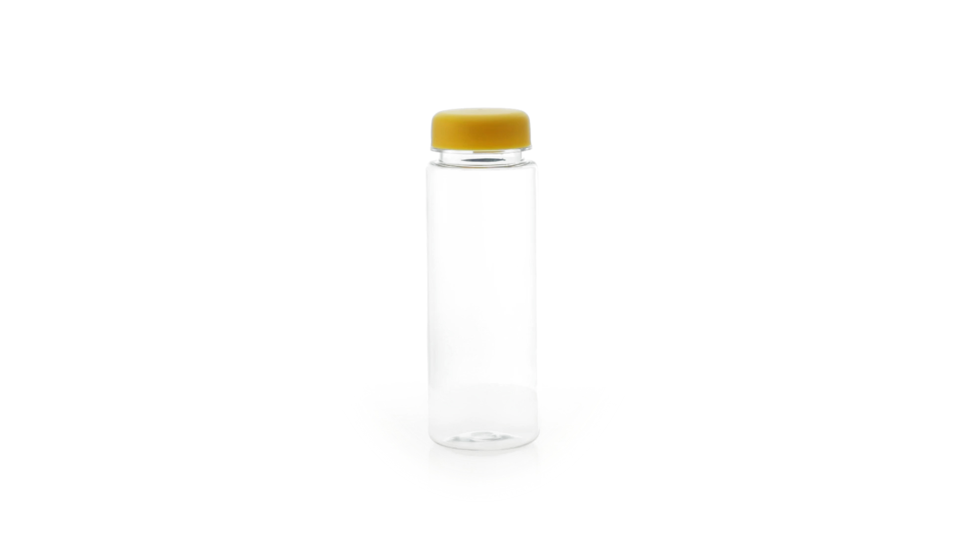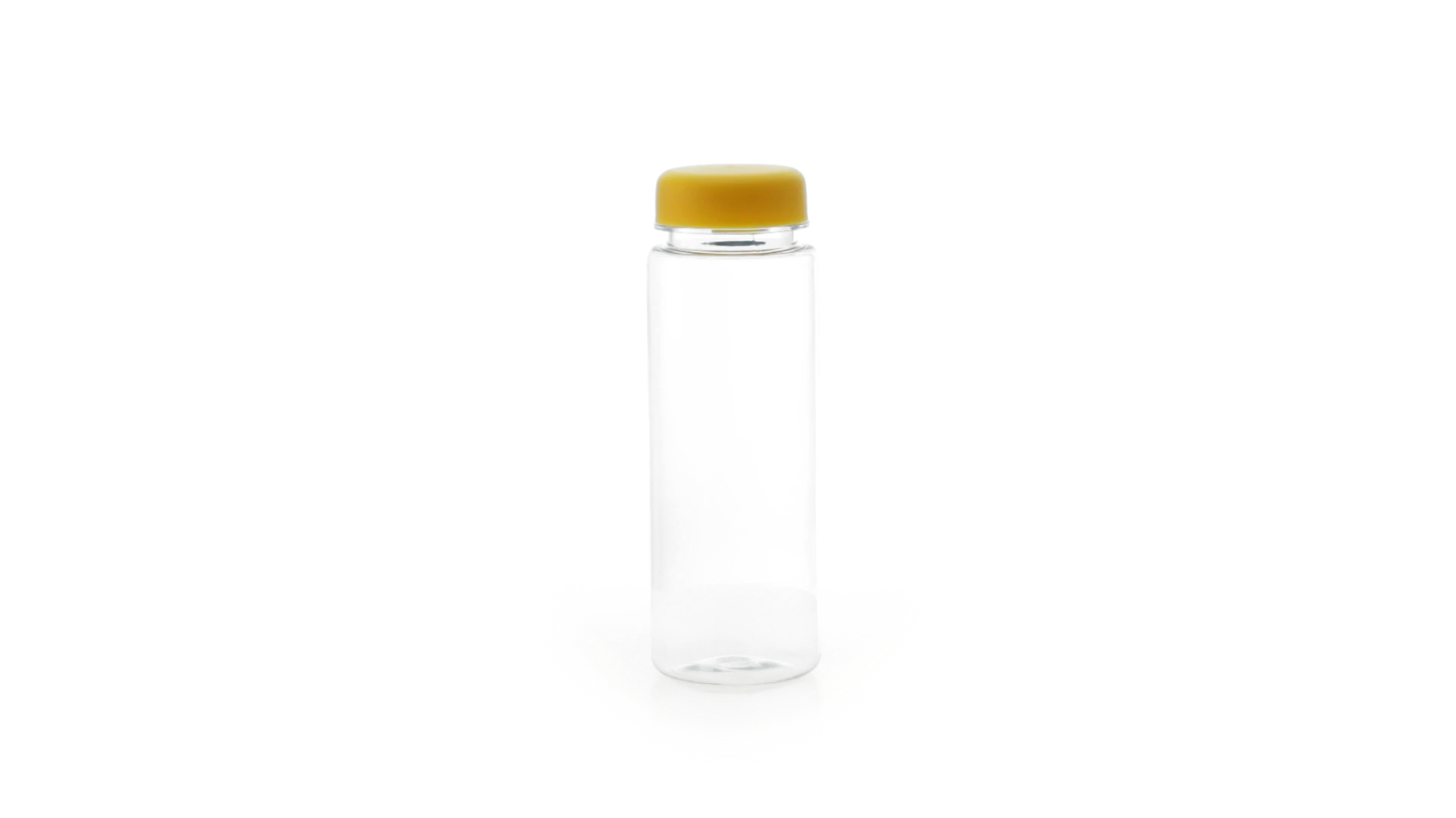 Trinkflasche mit 500 ml Fassungsvermögen und transparentem Körper mit Deckel in verschiedenen lebendigen Farben.