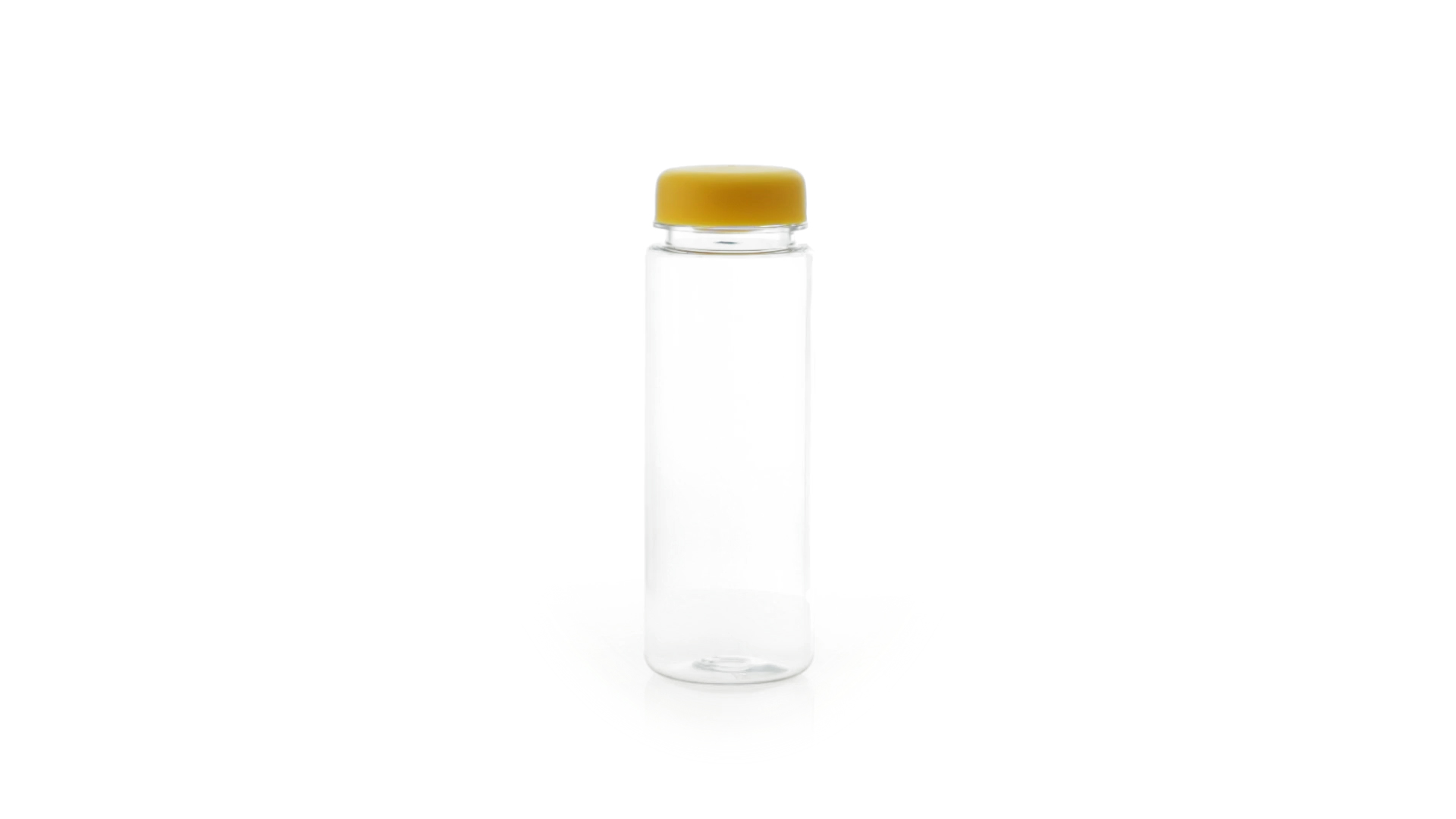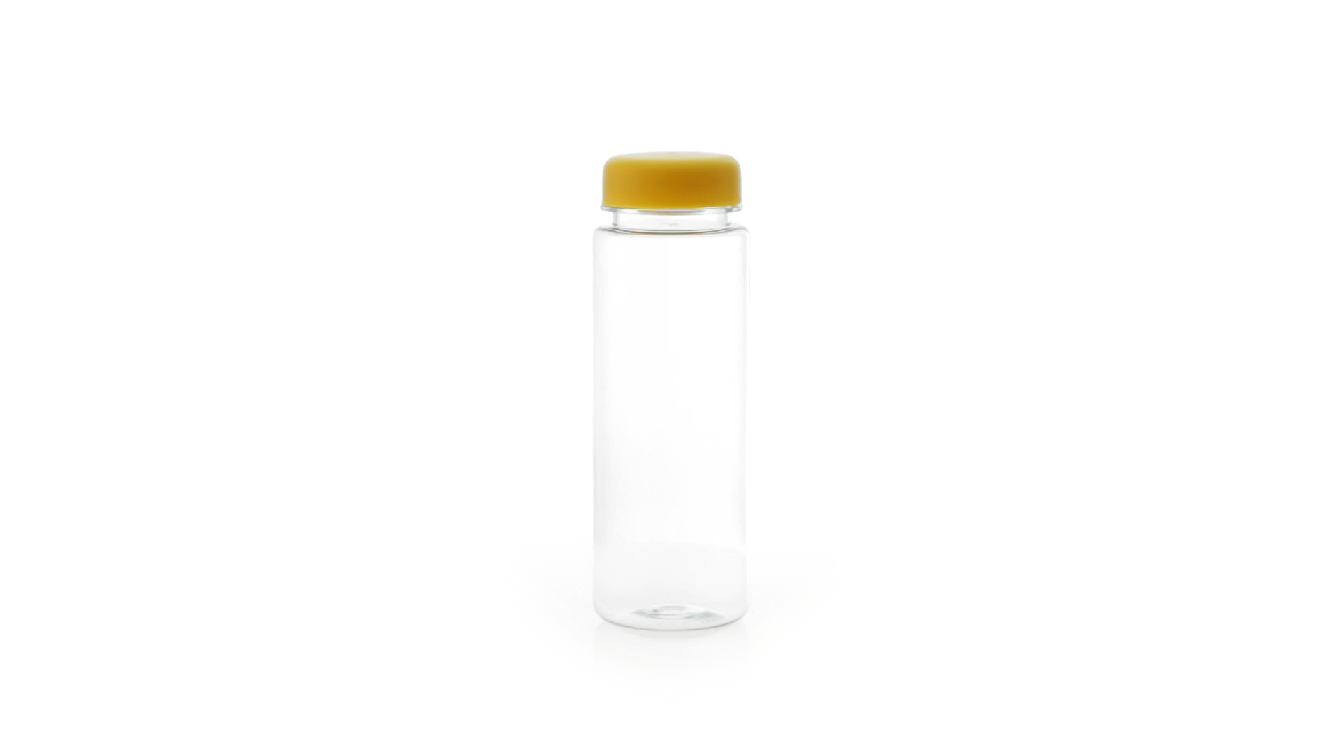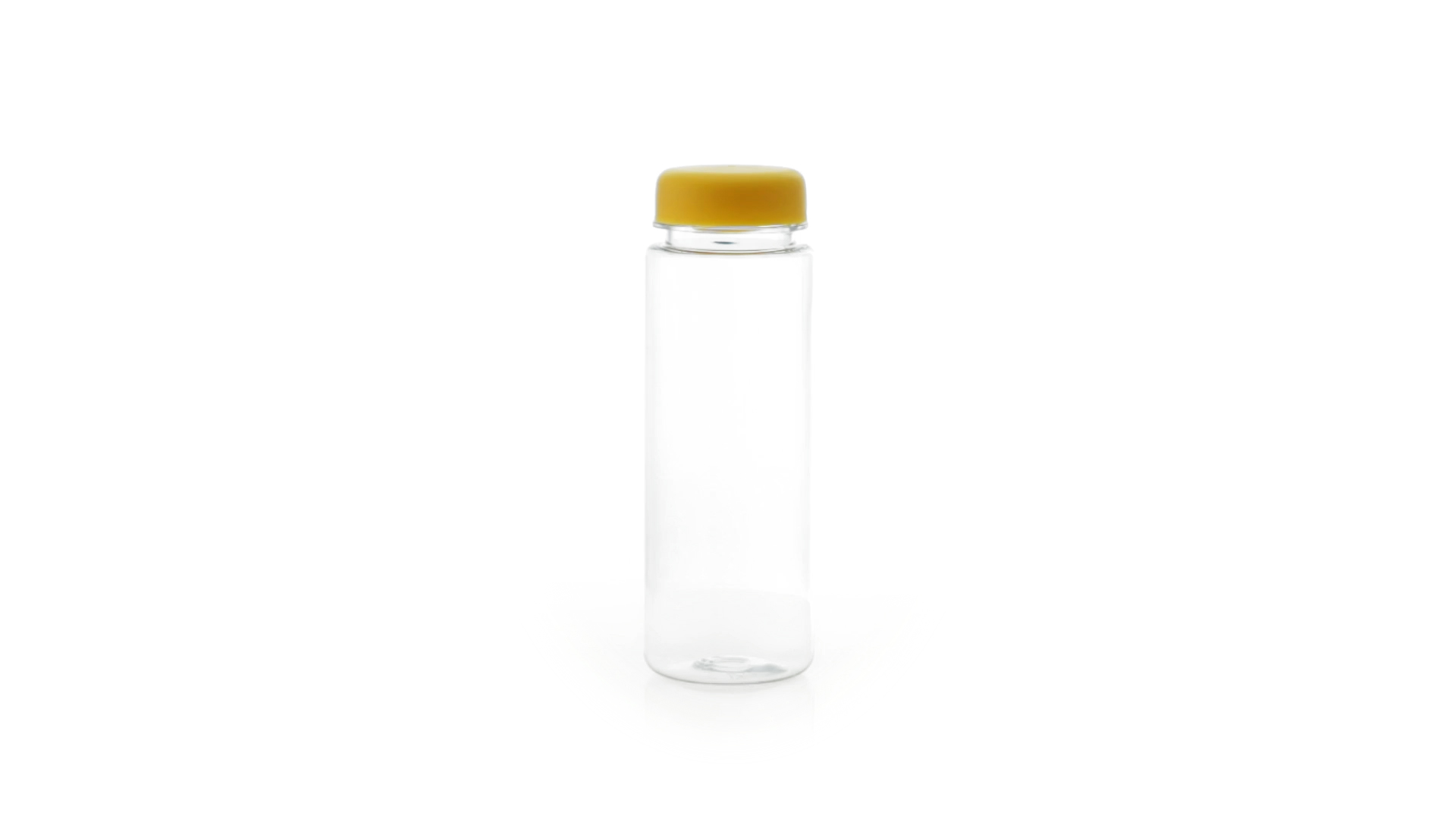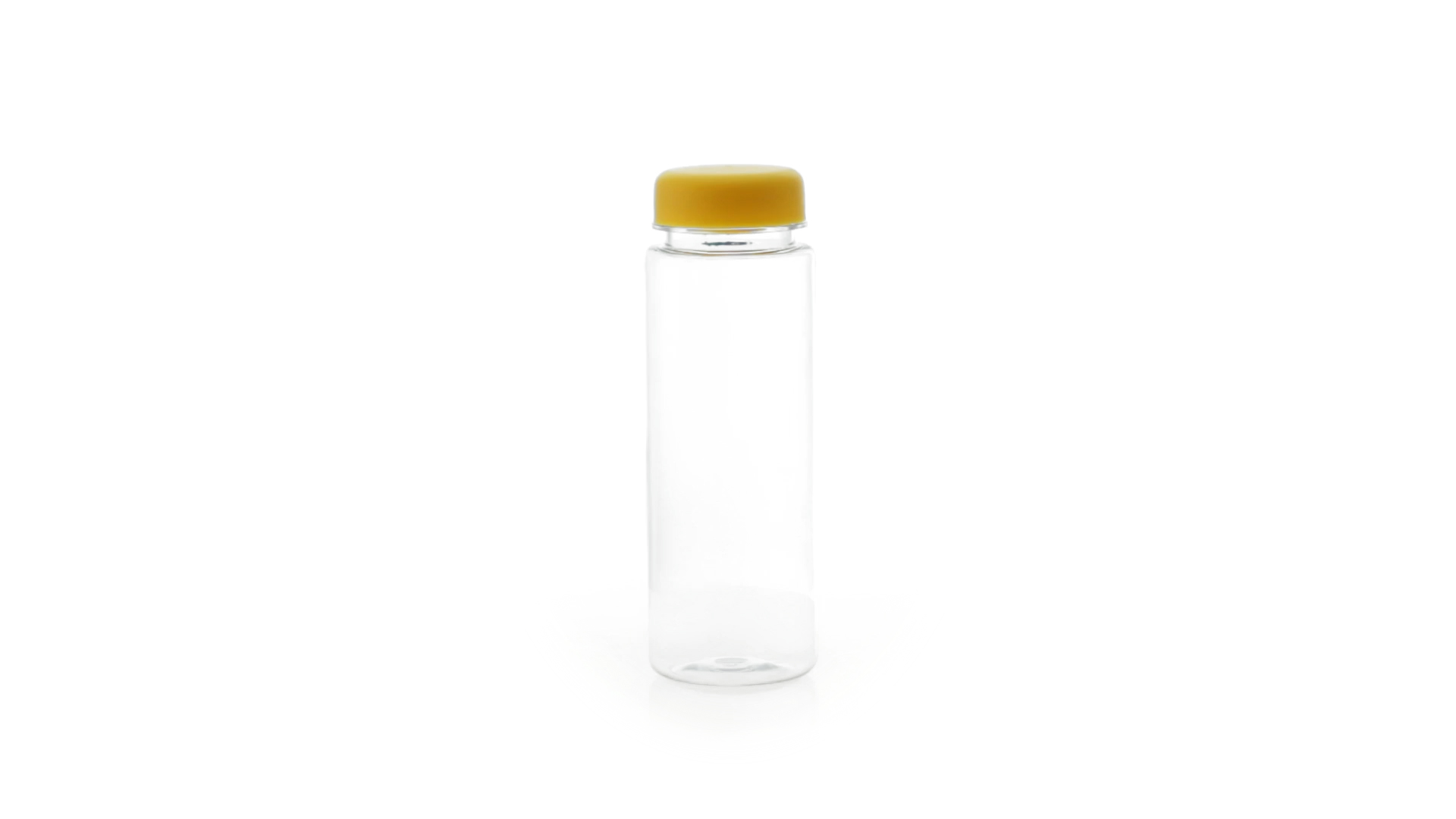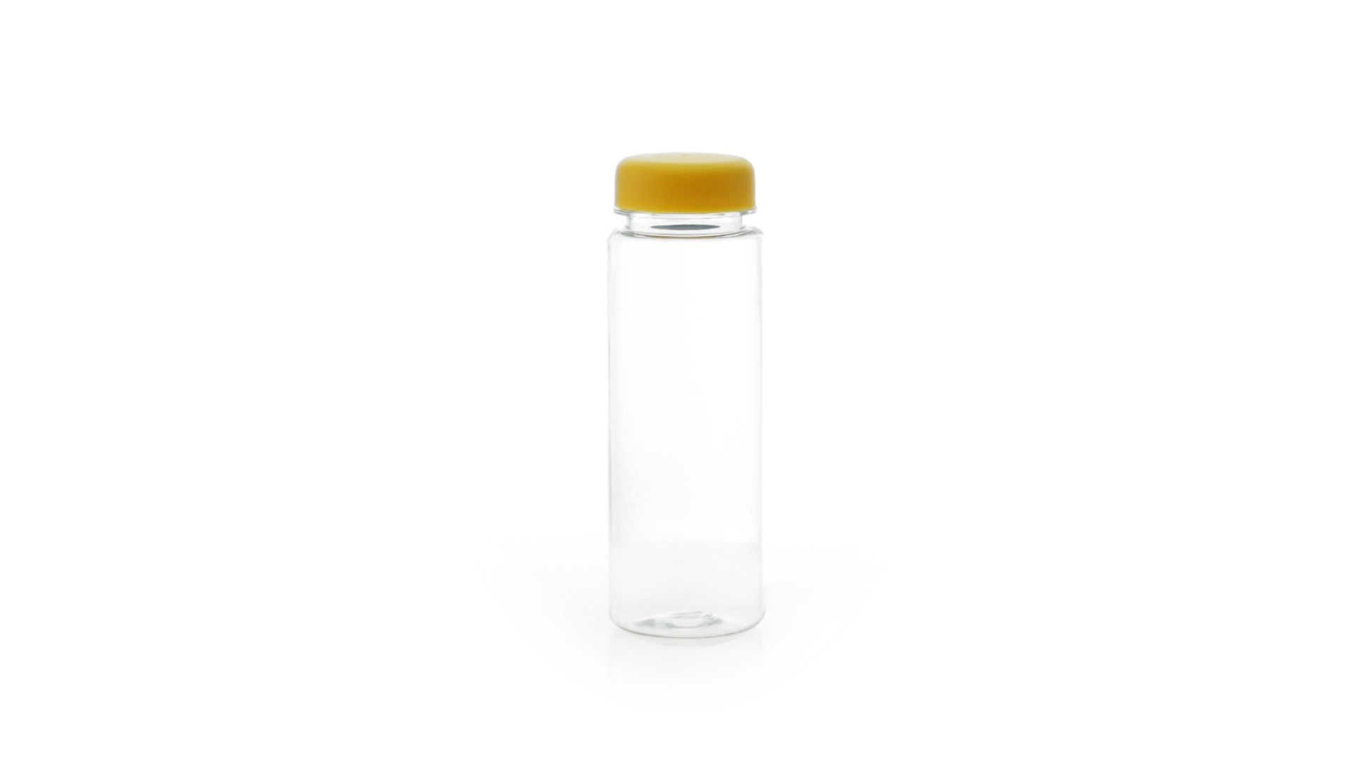 Trinkflasche mit 500 ml Fassungsvermögen und transparentem Körper mit Deckel in verschiedenen lebendigen Farben.