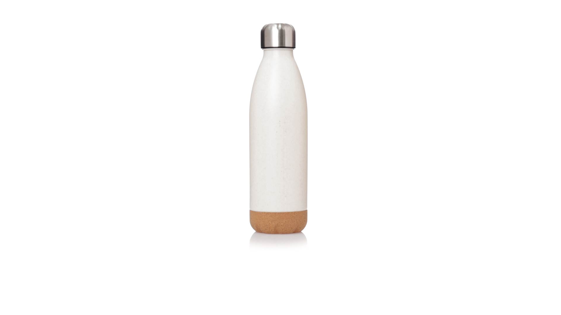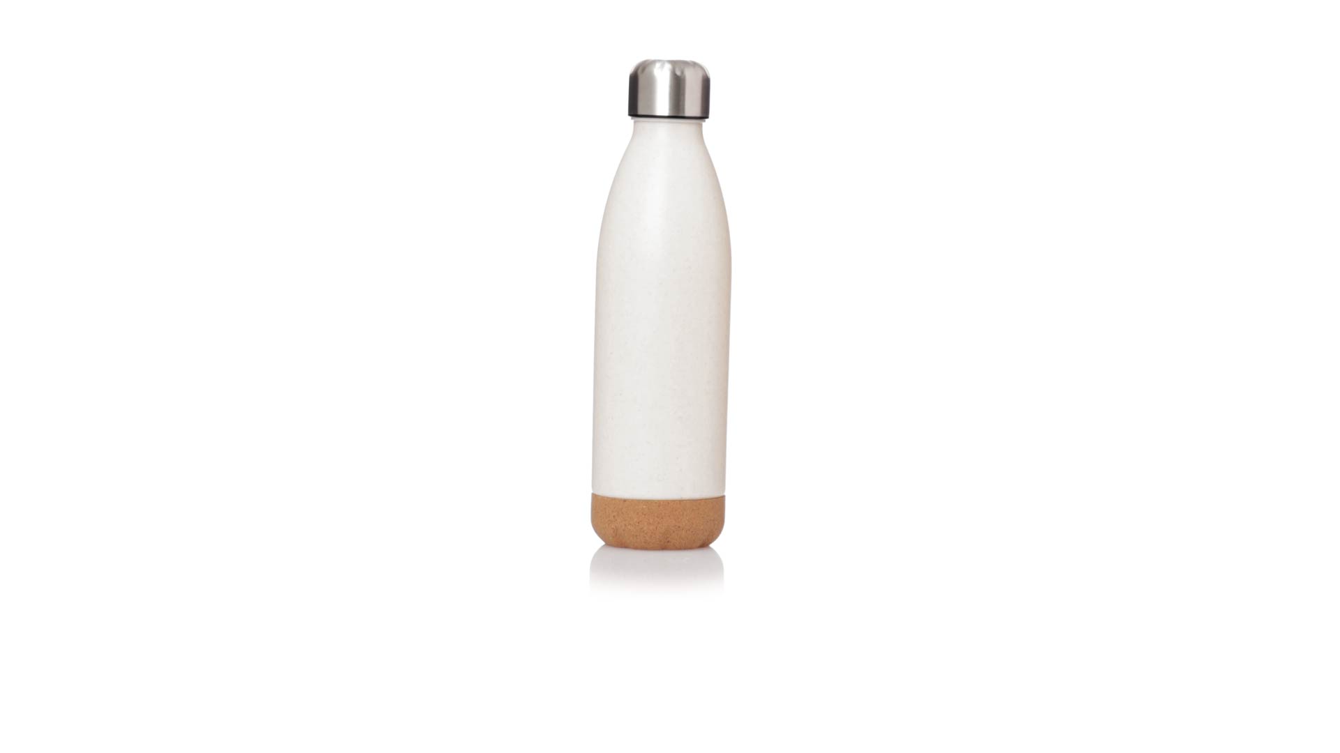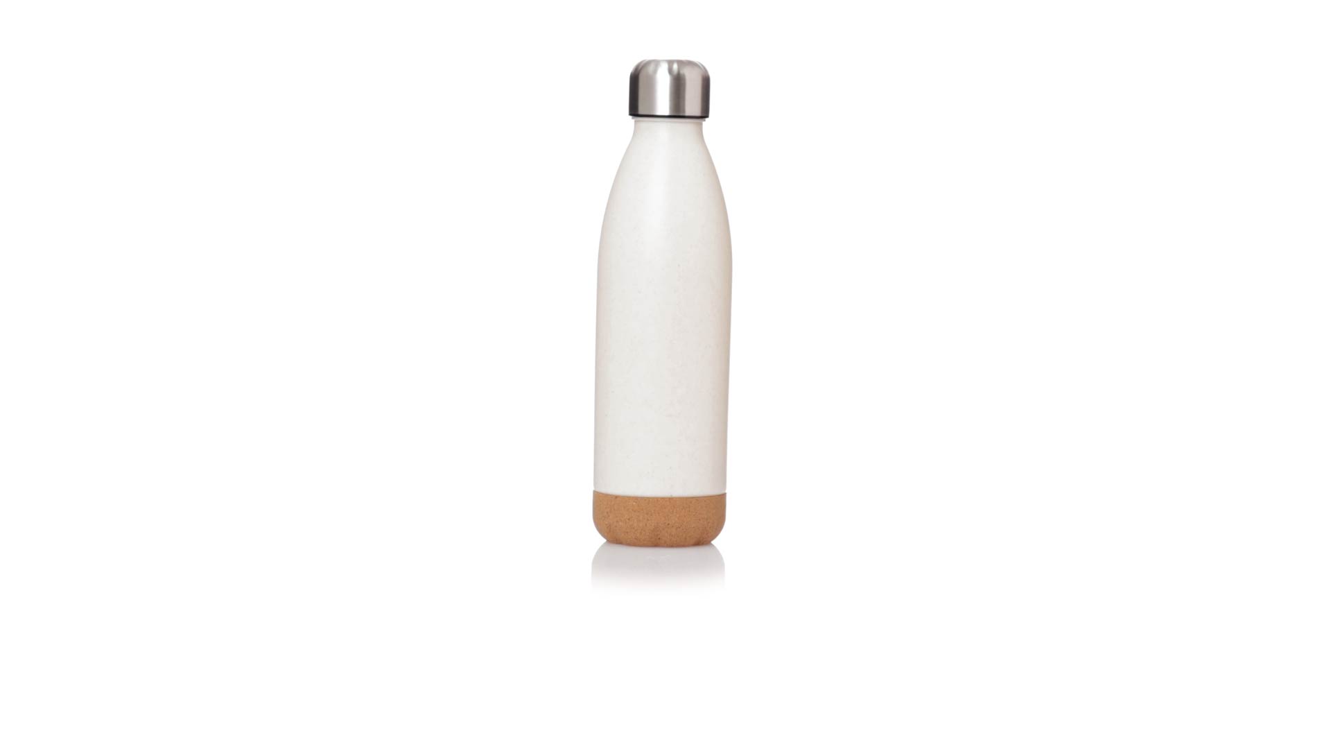 Flasche mit 650 ml Fassungsvermögen aus einer Kombination aus geädertem PE und einem Boden aus Naturkork. Schraubdeckel aus Edelstahl, BPA-frei. Erhältlich in einer grossen Auswahl an matten Pastellfarben und präsentiert in einer individuellen Kraft-Designbox. Zertifiziert in Lebensmittelqualität, was Sicherheit garantiert, wenn Lebensmittel mit dem zur Herstellung des Produkts verwendeten Material in Kontakt kommen.