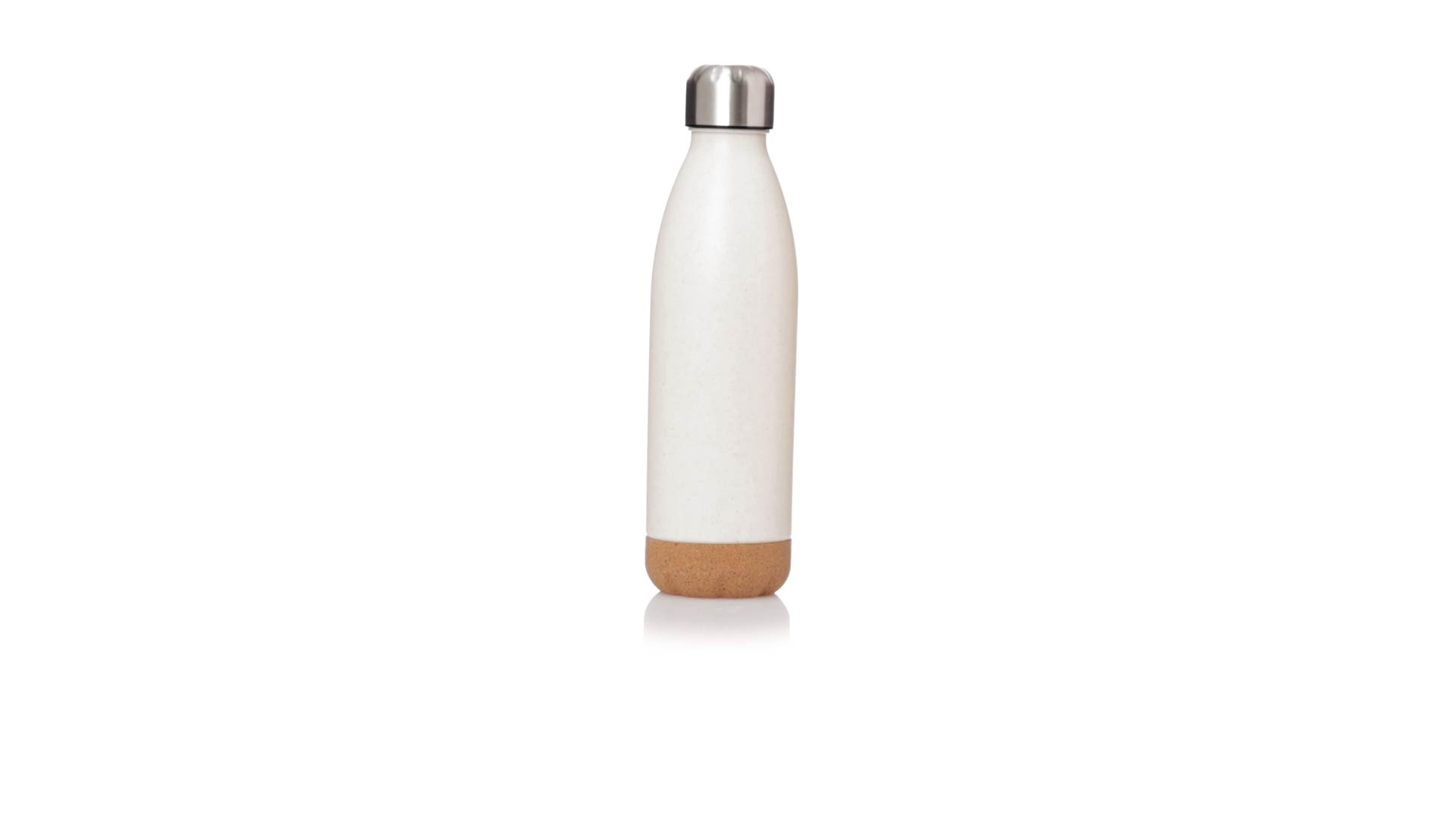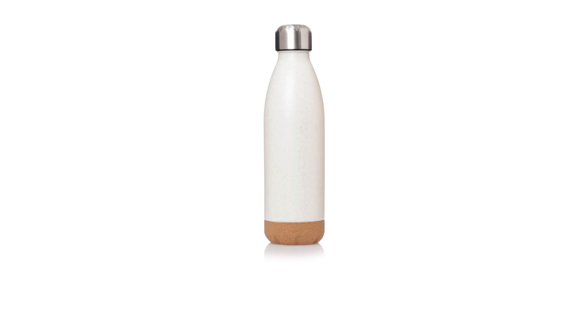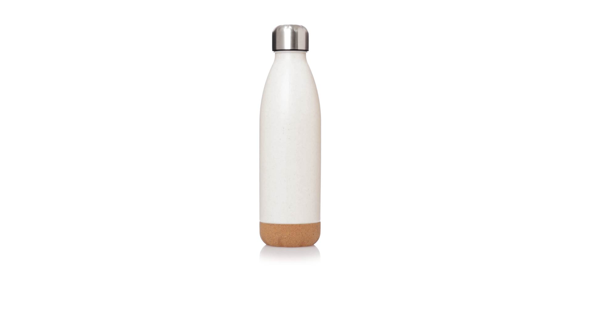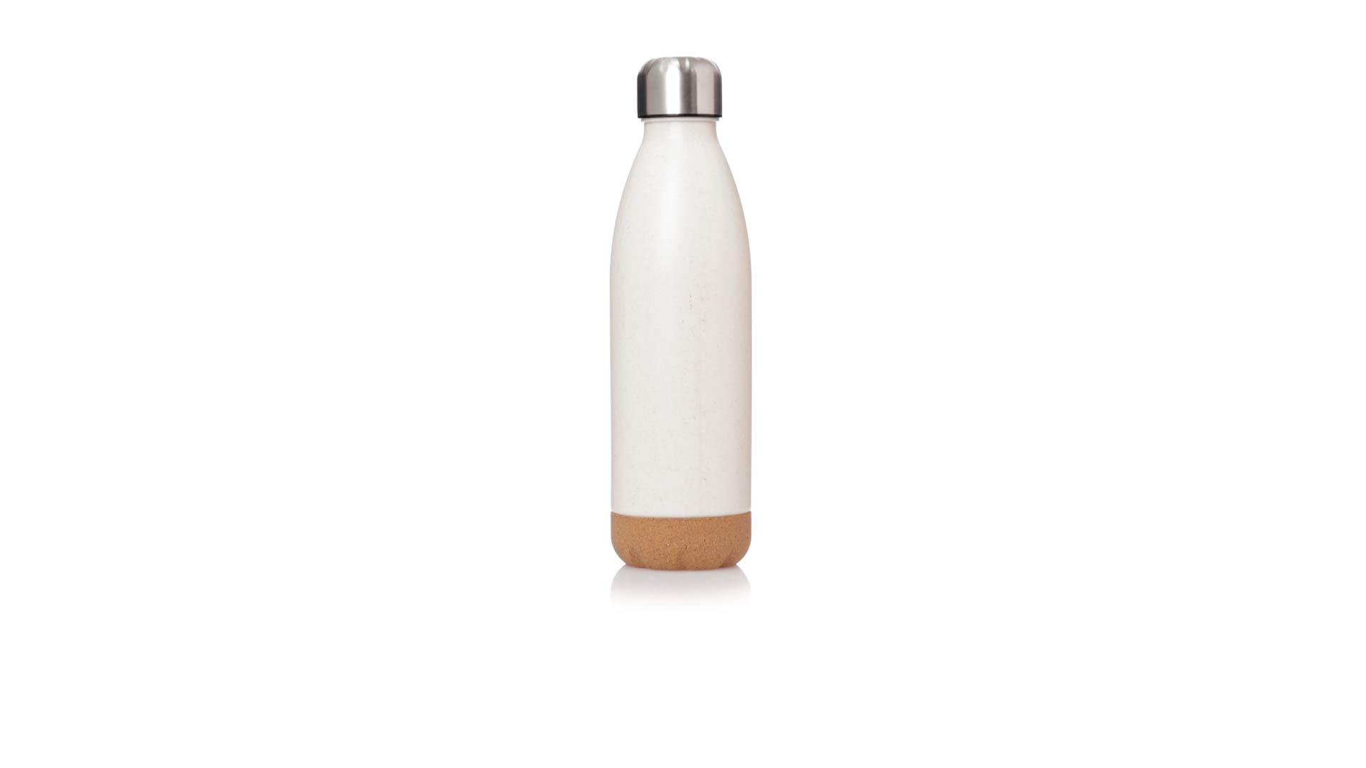 Flasche mit 650 ml Fassungsvermögen aus einer Kombination aus geädertem PE und einem Boden aus Naturkork. Schraubdeckel aus Edelstahl, BPA-frei. Erhältlich in einer grossen Auswahl an matten Pastellfarben und präsentiert in einer individuellen Kraft-Designbox. Zertifiziert in Lebensmittelqualität, was Sicherheit garantiert, wenn Lebensmittel mit dem zur Herstellung des Produkts verwendeten Material in Kontakt kommen.