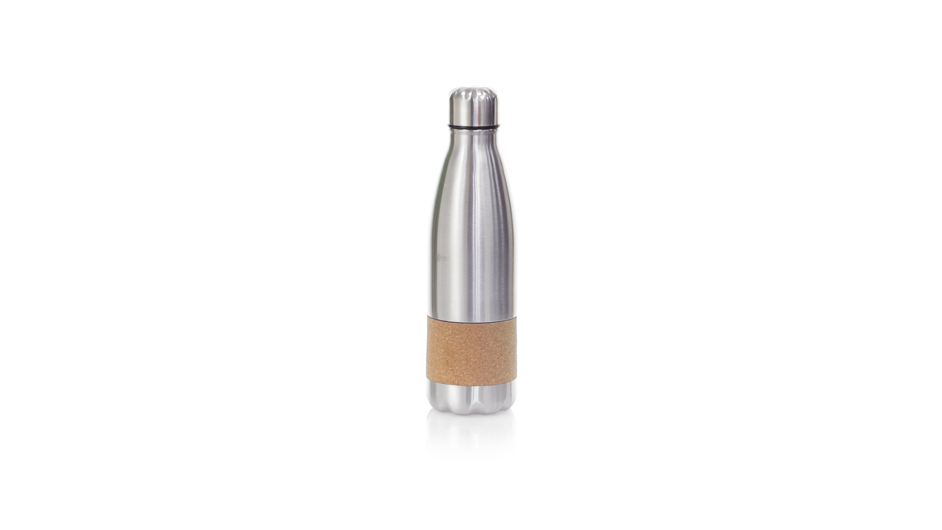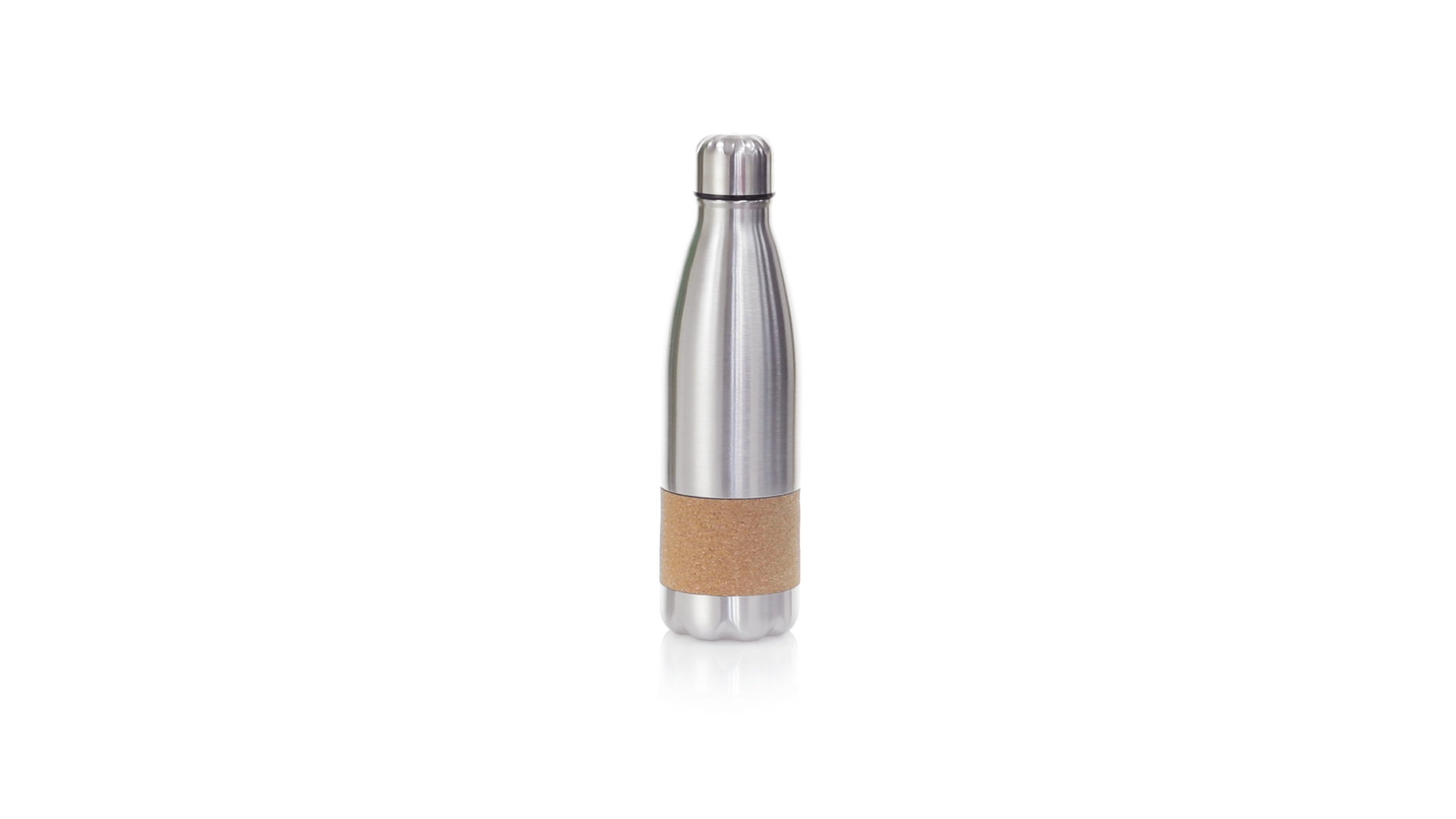 Flasche der Liene "Natur" aus einer Kombination aus Edelstahl mit mattem Finish und Kork. 750 ml Fassungsvermögen, mit Sicherheitsverschluss und präsentiert in einer attraktiven Öko-Design-Box.